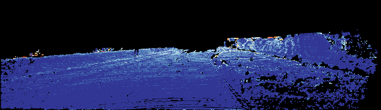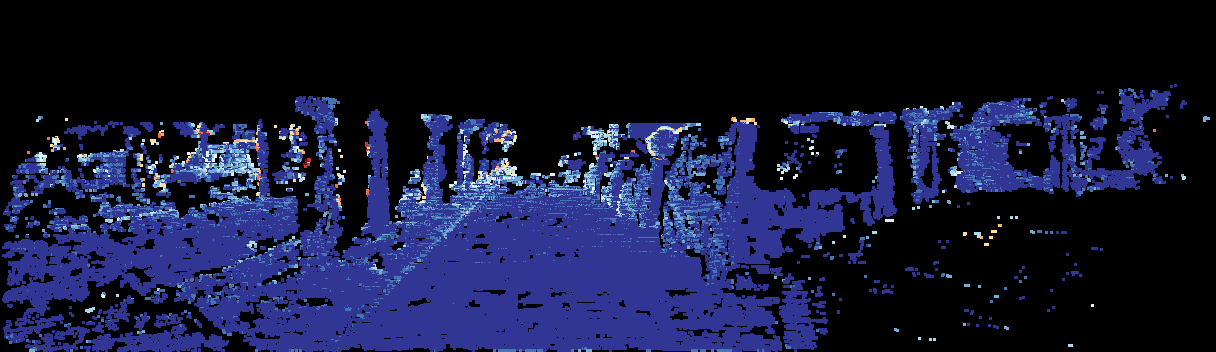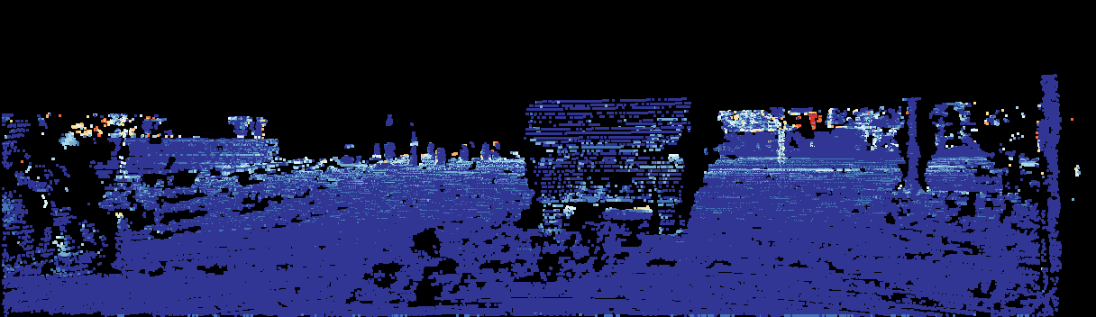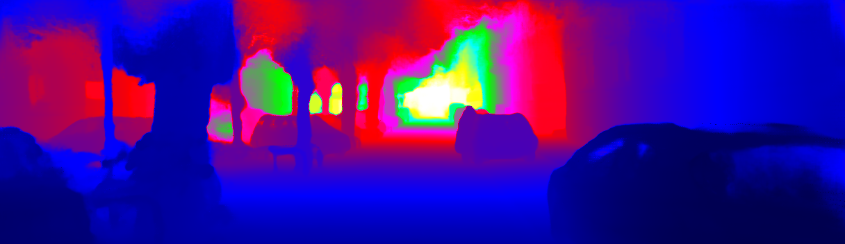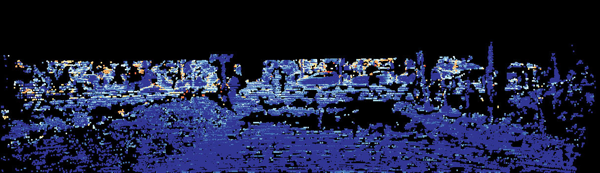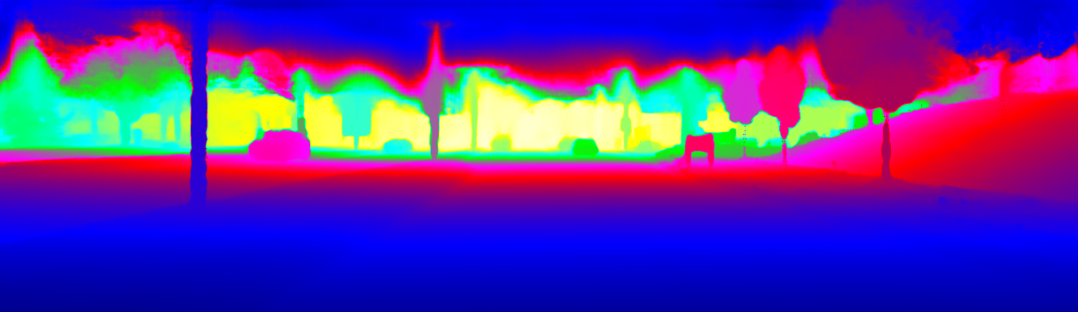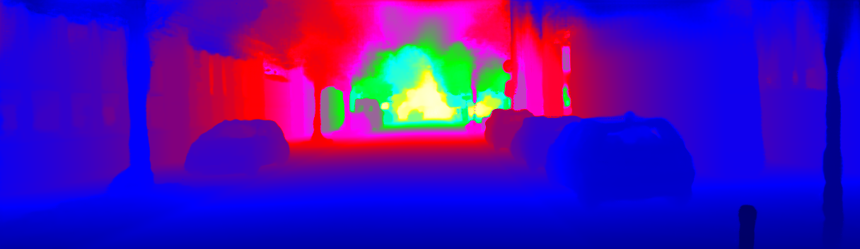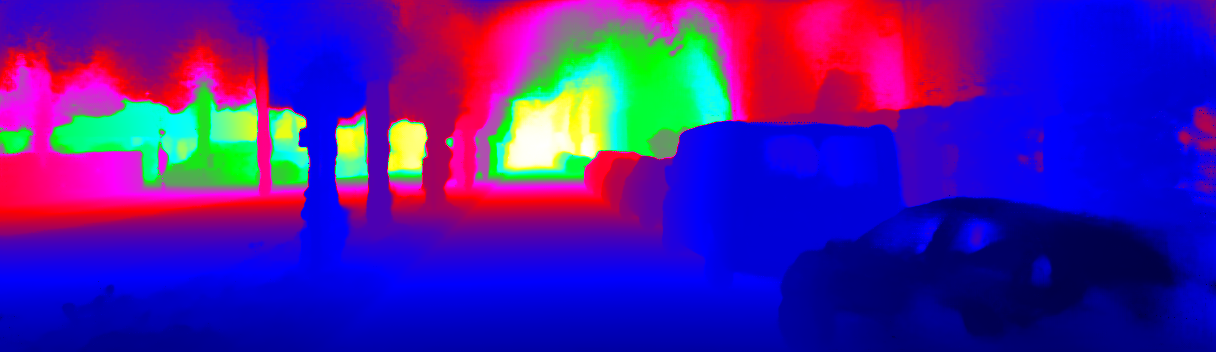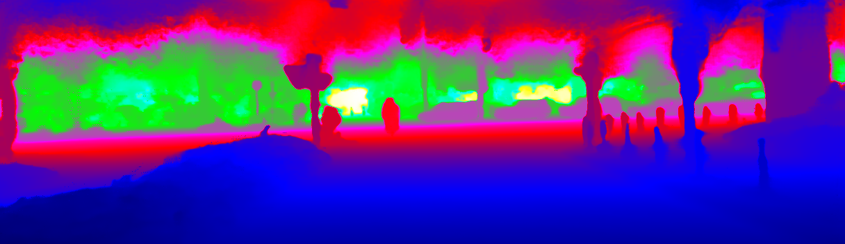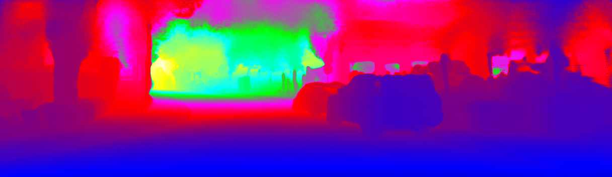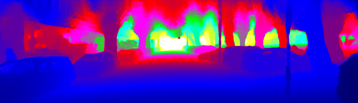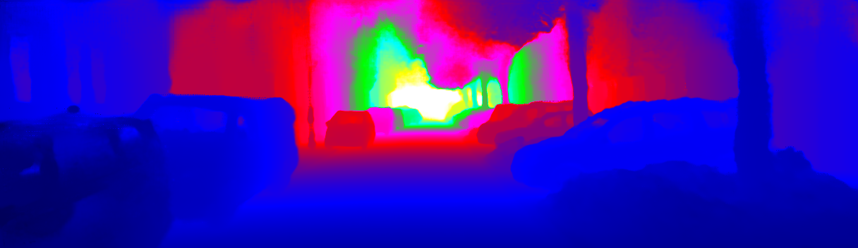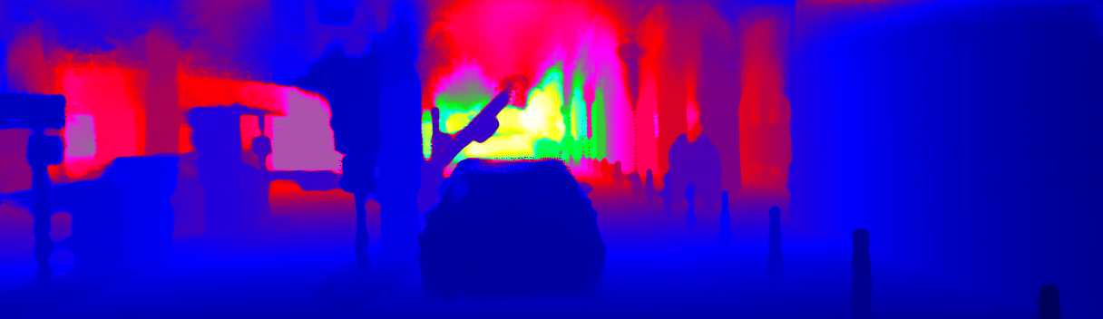 This page provides detailed results for the method(s) selected. For the first 20 test images, the percentage of erroneous pixels is depicted in the table. We use the error metric described in Sparsity Invariant CNNs (THREEDV 2017), which considers a pixel to be correctly estimated if the disparity or flow end-point error is <3px or <5% (for scene flow this criterion needs to be fulfilled for both disparity maps and the flow map). Underneath, the left input image, the estimated results and the error maps are shown (for disp_0/disp_1/flow/scene_flow, respectively). The error map uses the log-color scale described in Sparsity Invariant CNNs (THREEDV 2017), depicting correct estimates (<3px or <5% error) in blue and wrong estimates in red color tones. Dark regions in the error images denote the occluded pixels which fall outside the image boundaries. The false color maps of the results are scaled to the largest ground truth disparity values / flow magnitudes.