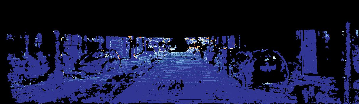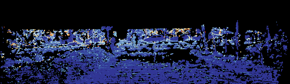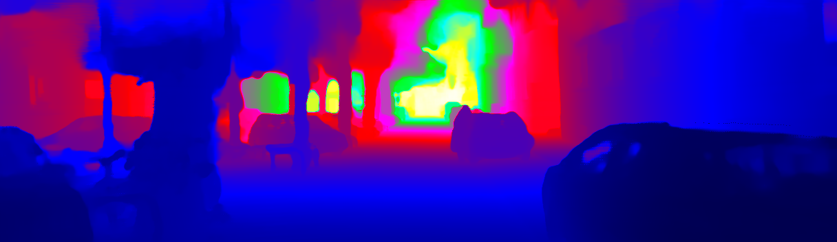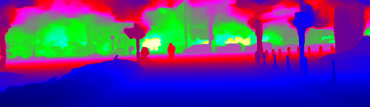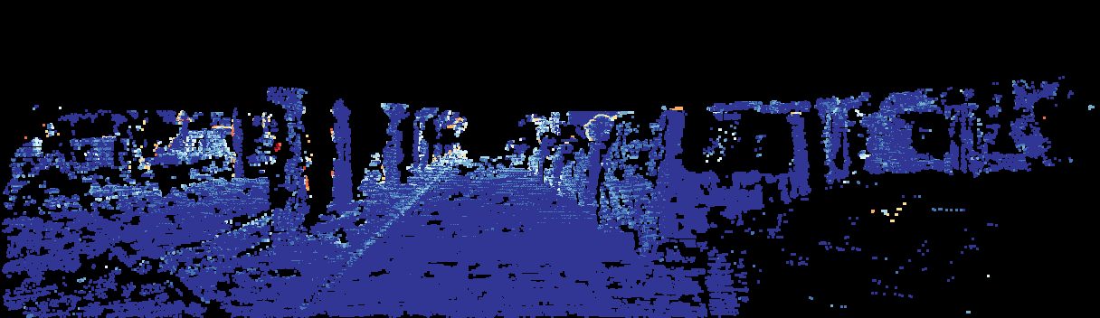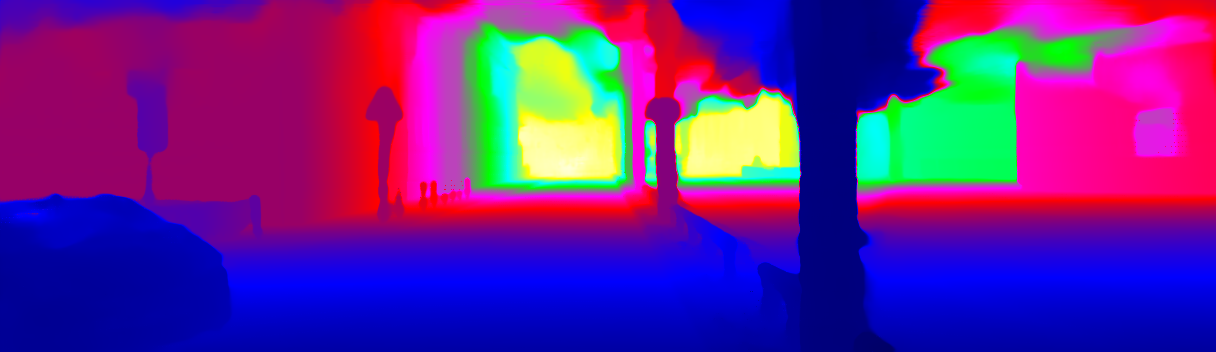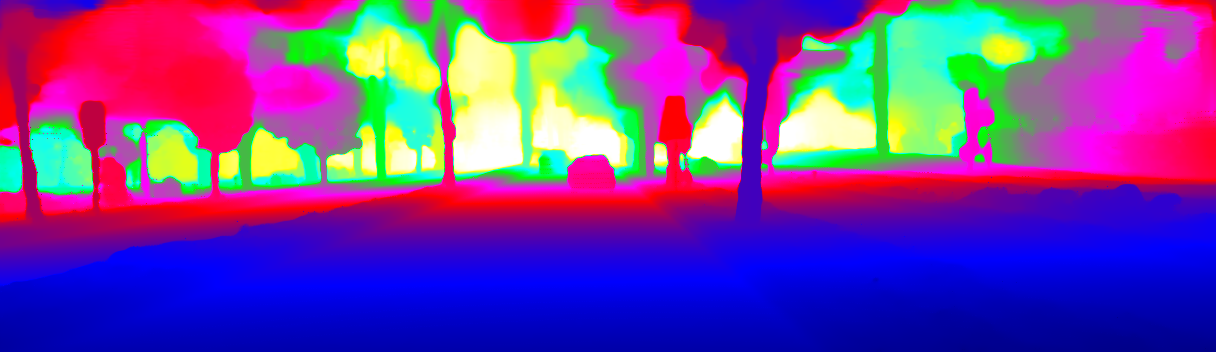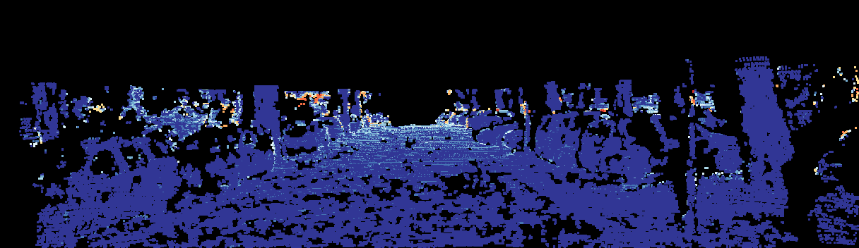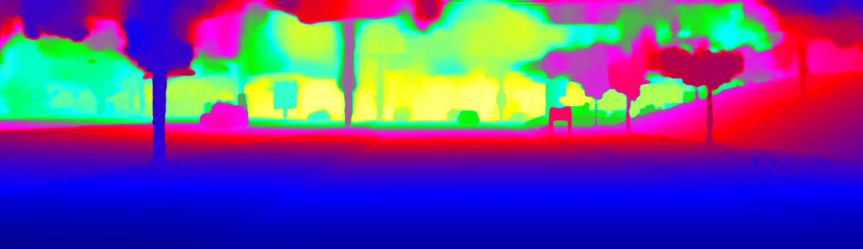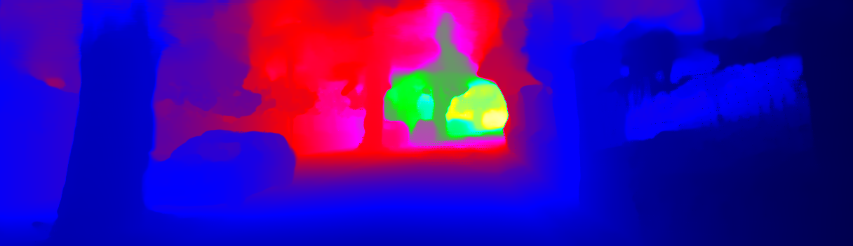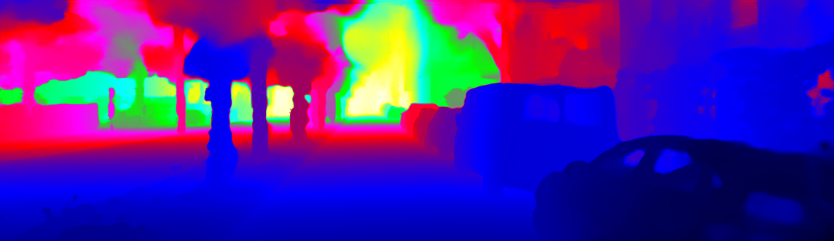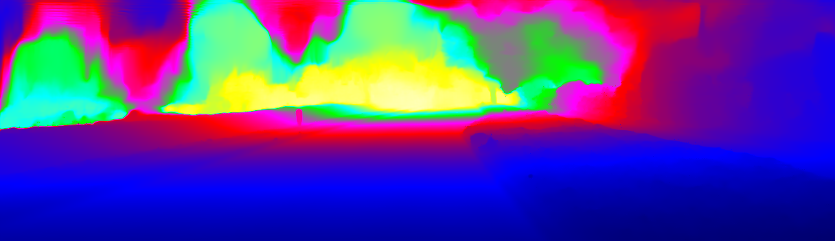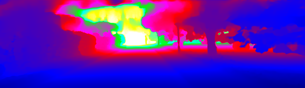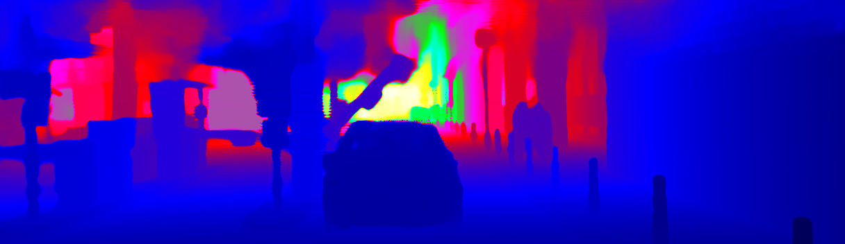This page provides detailed results for the method(s) selected. For the first 20 test images, the percentage of erroneous pixels is depicted in the table. We use the error metric described in Sparsity Invariant CNNs (THREEDV 2017), which considers a pixel to be correctly estimated if the disparity or flow end-point error is <3px or <5% (for scene flow this criterion needs to be fulfilled for both disparity maps and the flow map). Underneath, the left input image, the estimated results and the error maps are shown (for disp_0/disp_1/flow/scene_flow, respectively). The error map uses the log-color scale described in Sparsity Invariant CNNs (THREEDV 2017), depicting correct estimates (<3px or <5% error) in blue and wrong estimates in red color tones. Dark regions in the error images denote the occluded pixels which fall outside the image boundaries. The false color maps of the results are scaled to the largest ground truth disparity values / flow magnitudes.
