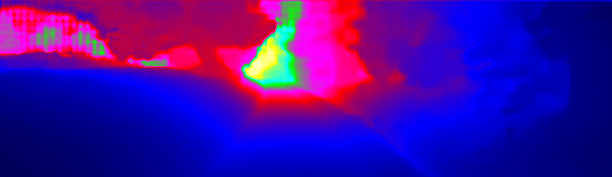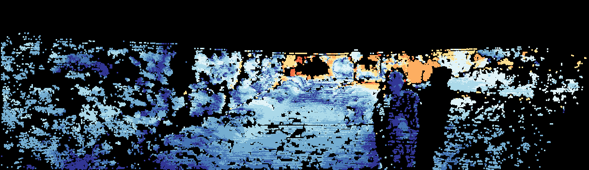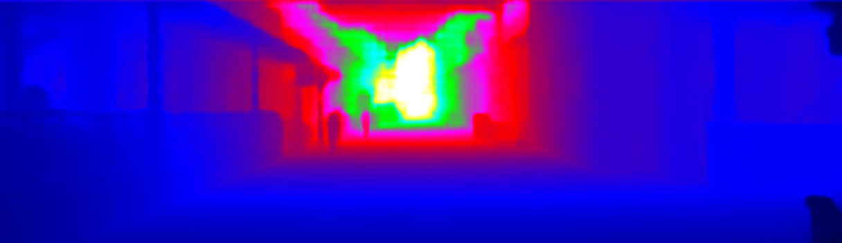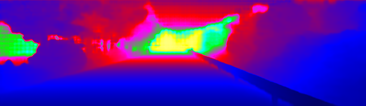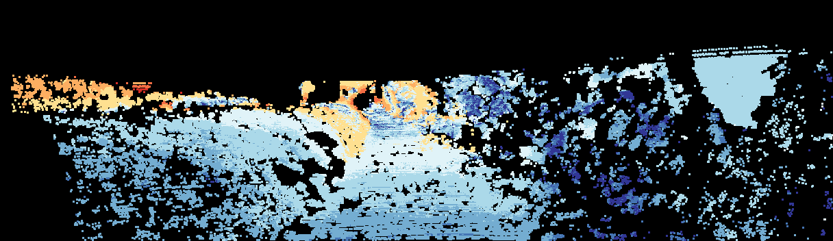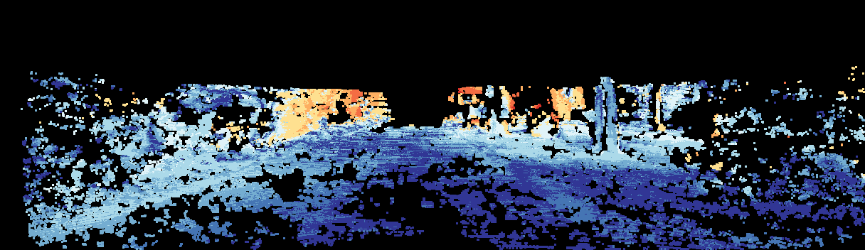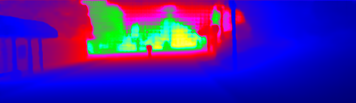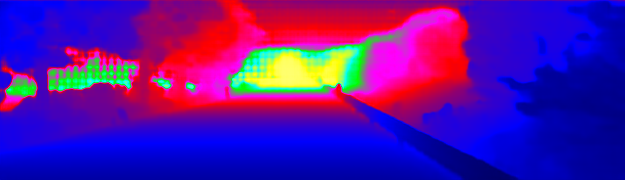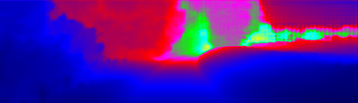 This page provides detailed results for the method(s) selected. For the first 20 test images, the percentage of erroneous pixels is depicted in the table. We use the error metric described in Sparsity Invariant CNNs (THREEDV 2017), which considers a pixel to be correctly estimated if the disparity or flow end-point error is <3px or <5% (for scene flow this criterion needs to be fulfilled for both disparity maps and the flow map). Underneath, the left input image, the estimated results and the error maps are shown (for disp_0/disp_1/flow/scene_flow, respectively). The error map uses the log-color scale described in Sparsity Invariant CNNs (THREEDV 2017), depicting correct estimates (<3px or <5% error) in blue and wrong estimates in red color tones. Dark regions in the error images denote the occluded pixels which fall outside the image boundaries. The false color maps of the results are scaled to the largest ground truth disparity values / flow magnitudes.