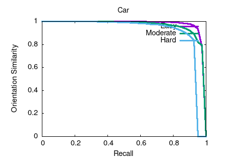 Object detection and orientation estimation results. Results for object detection are given in terms of average precision (AP) and results for joint object detection and orientation estimation are provided in terms of average orientation similarity (AOS).