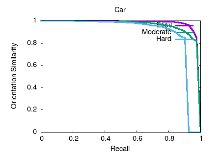 Object detection and orientation estimation results. Results for object detection are given in terms of average precision (AP) and results for joint object detection and orientation estimation are provided in terms of average orientation similarity (AOS).