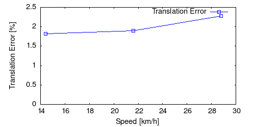 From all test sequences (sequences 11-21), our benchmark computes translational and rotational errors for all possible subsequences of length (5,10,50,100,150,...,400) meters. Our evaluation ranks methods according to the average of those values, where errors are measured in percent (for translation) and in degrees per meter (for rotation). Details for different trajectory lengths and driving speeds can be found in the plots underneath. Furthermore, the first 5 test trajectories and error plots are shown below.