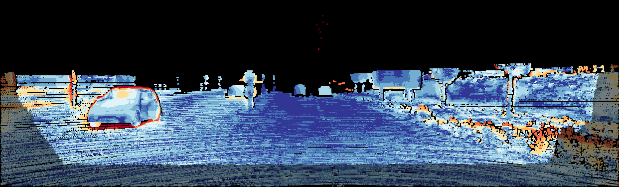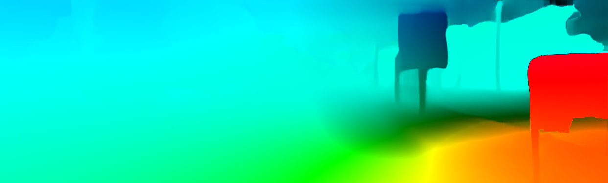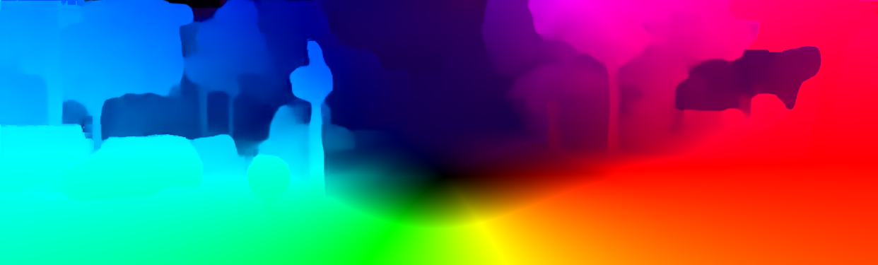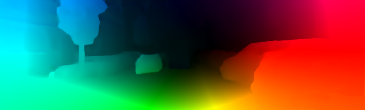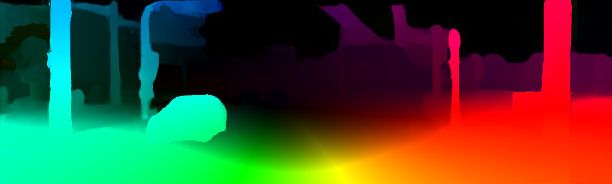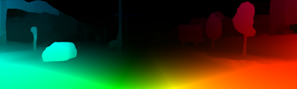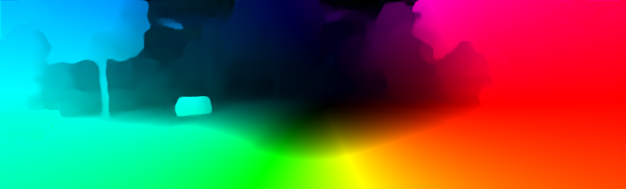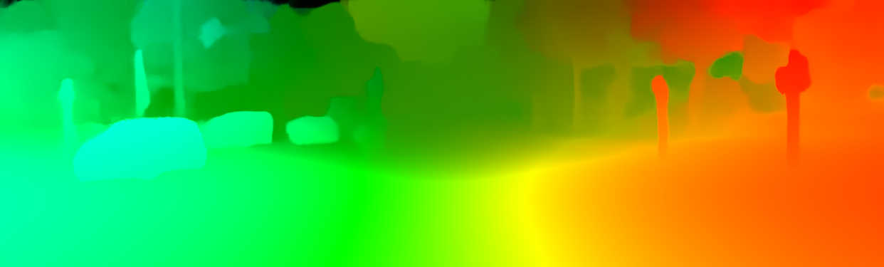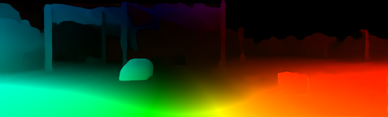 This page provides detailed results for the method(s) selected. For the first 20 test images, the percentage of erroneous pixels is depicted in the table. We use the error metric described in Object Scene Flow for Autonomous Vehicles (CVPR 2015), which considers a pixel to be correctly estimated if the disparity or flow end-point error is <3px or <5% (for scene flow this criterion needs to be fulfilled for both disparity maps and the flow map). Underneath, the left input image, the estimated results and the error maps are shown (for disp_0/disp_1/flow/scene_flow, respectively). The error map uses the log-color scale described in Object Scene Flow for Autonomous Vehicles (CVPR 2015), depicting correct estimates (<3px or <5% error) in blue and wrong estimates in red color tones. Dark regions in the error images denote the occluded pixels which fall outside the image boundaries. The false color maps of the results are scaled to the largest ground truth disparity values / flow magnitudes.