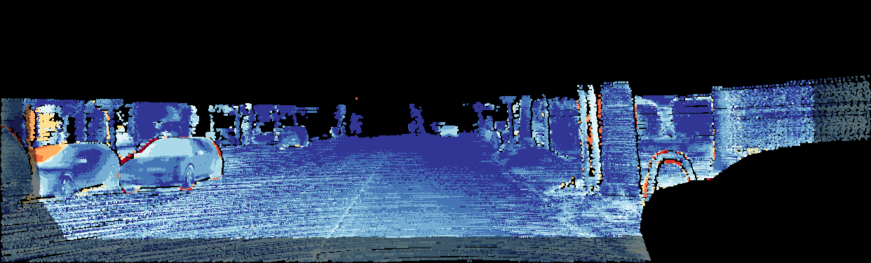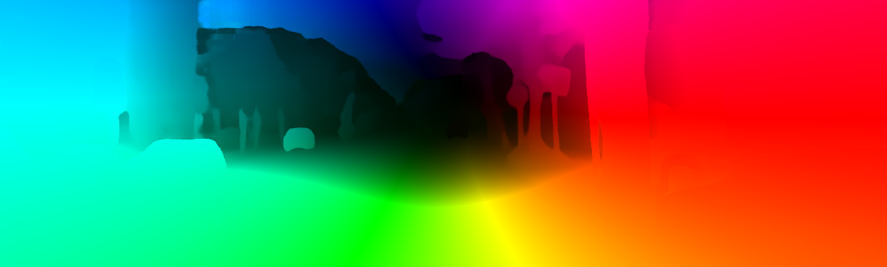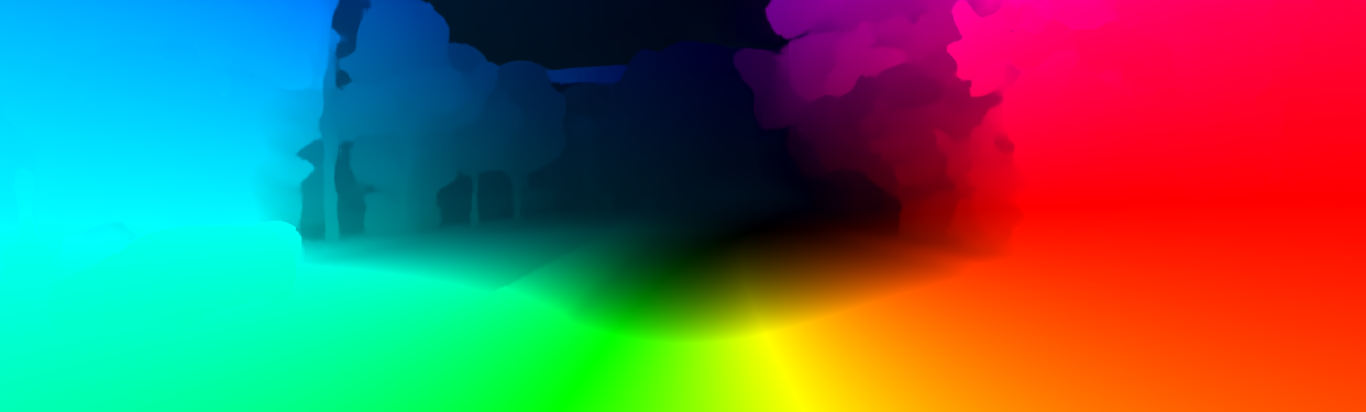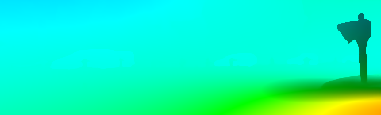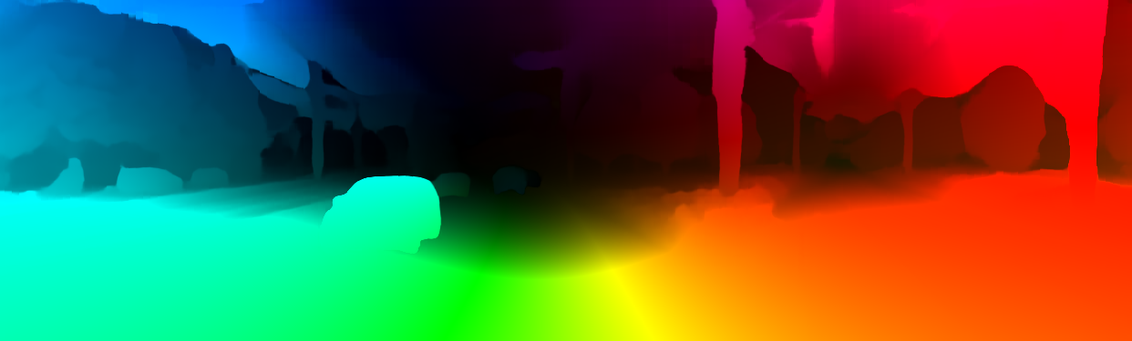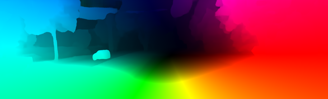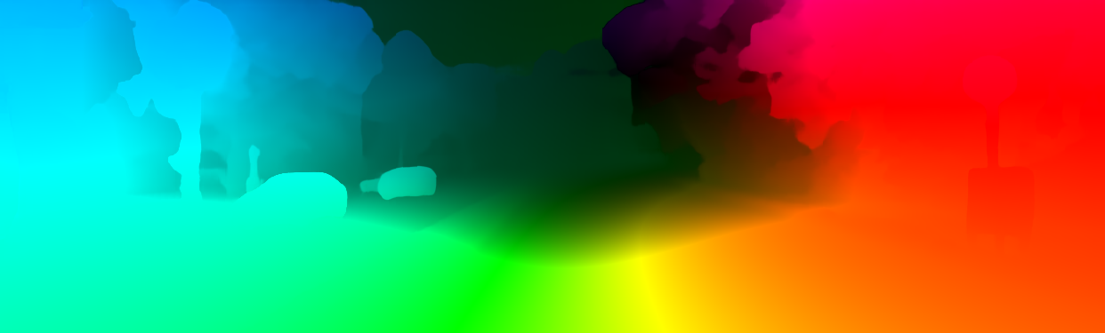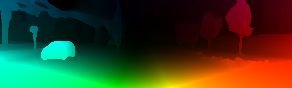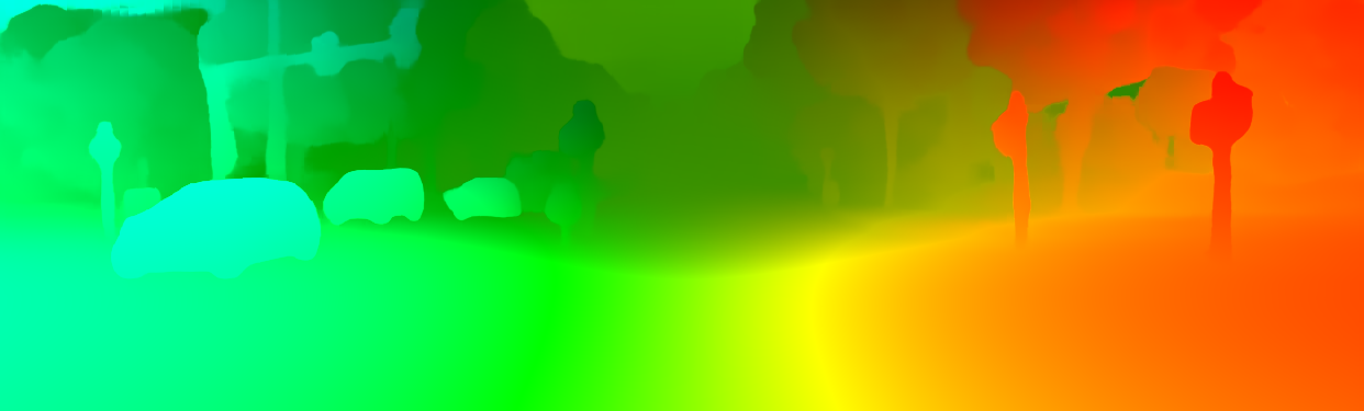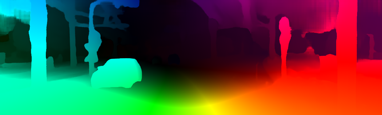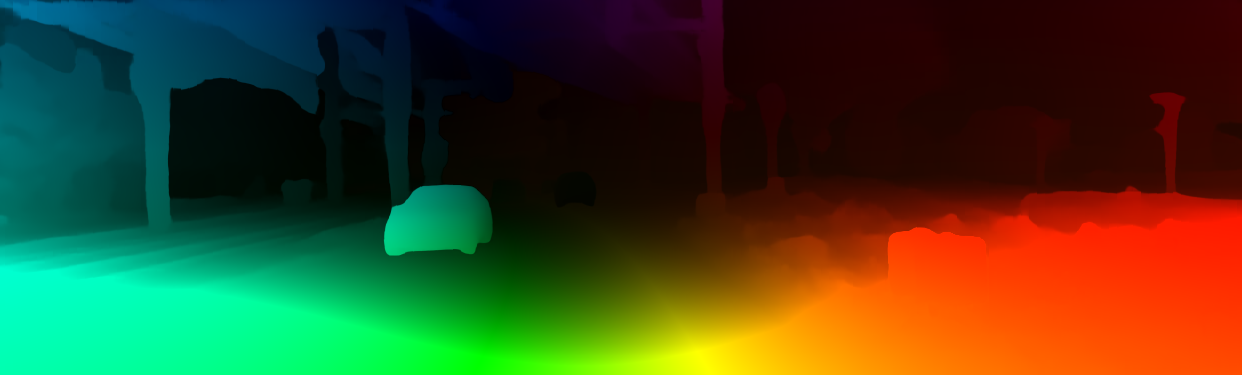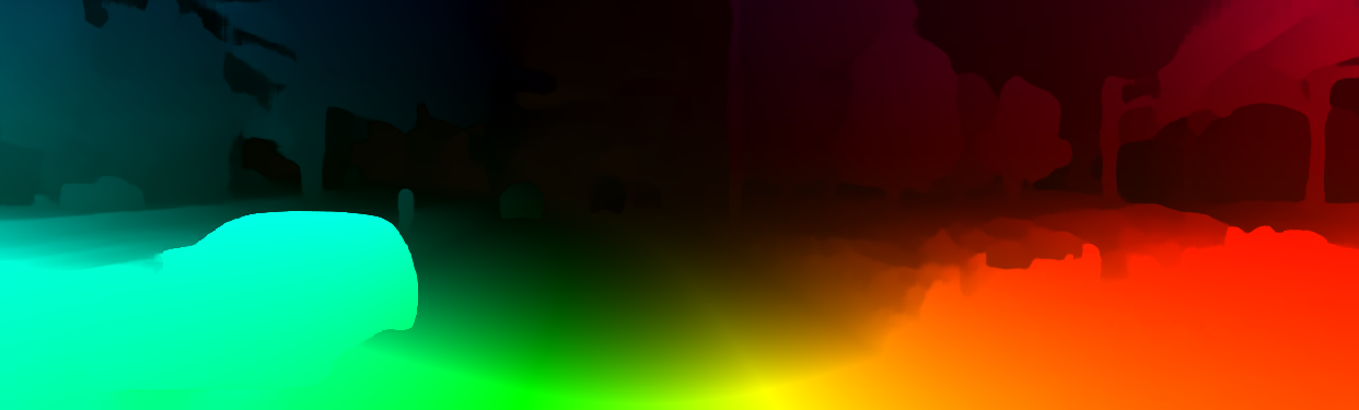 This page provides detailed results for the method(s) selected. For the first 20 test images, the percentage of erroneous pixels is depicted in the table. We use the error metric described in Object Scene Flow for Autonomous Vehicles (CVPR 2015), which considers a pixel to be correctly estimated if the disparity or flow end-point error is <3px or <5% (for scene flow this criterion needs to be fulfilled for both disparity maps and the flow map). Underneath, the left input image, the estimated results and the error maps are shown (for disp_0/disp_1/flow/scene_flow, respectively). The error map uses the log-color scale described in Object Scene Flow for Autonomous Vehicles (CVPR 2015), depicting correct estimates (<3px or <5% error) in blue and wrong estimates in red color tones. Dark regions in the error images denote the occluded pixels which fall outside the image boundaries. The false color maps of the results are scaled to the largest ground truth disparity values / flow magnitudes.