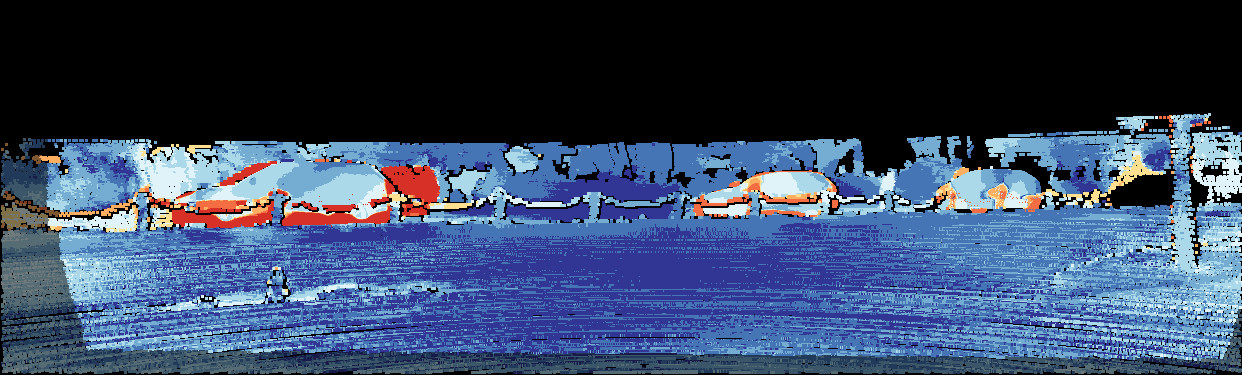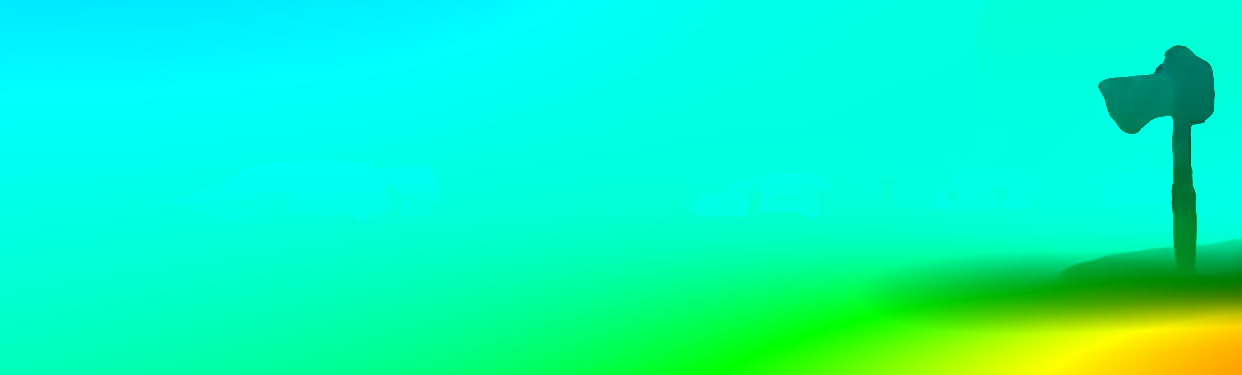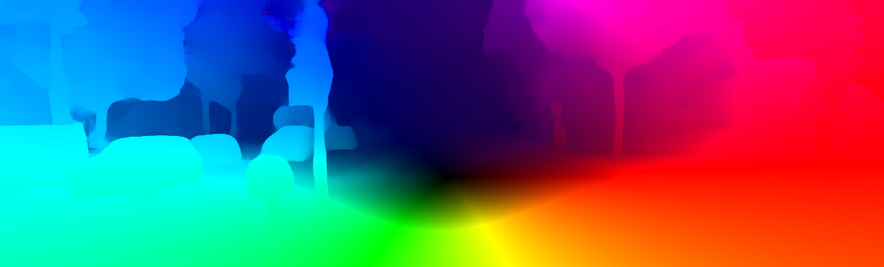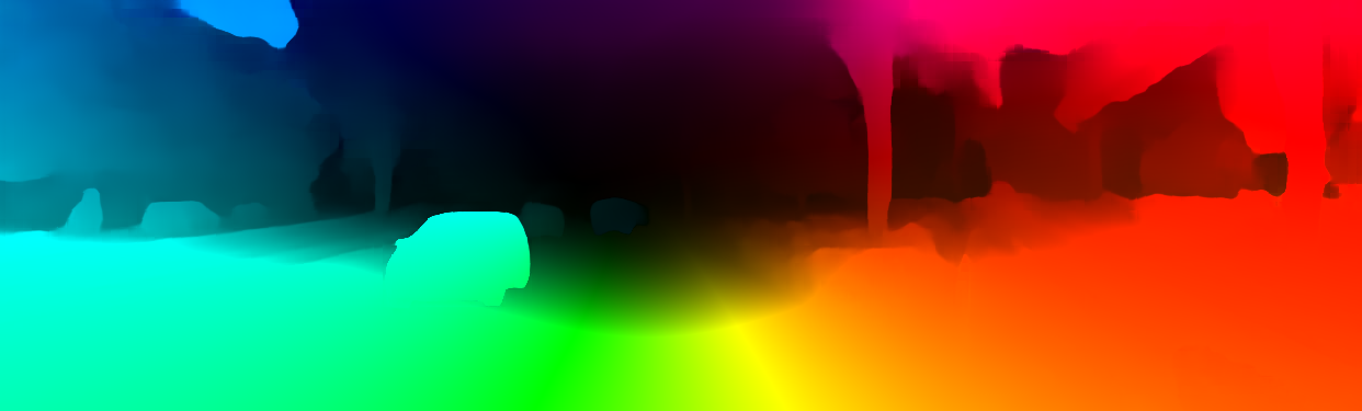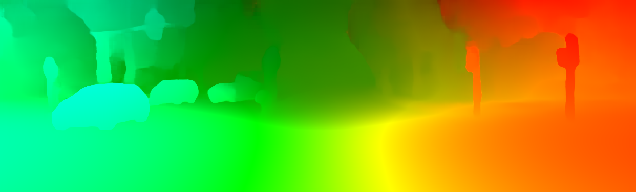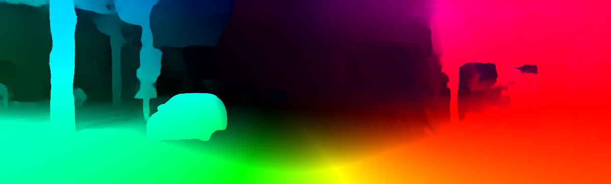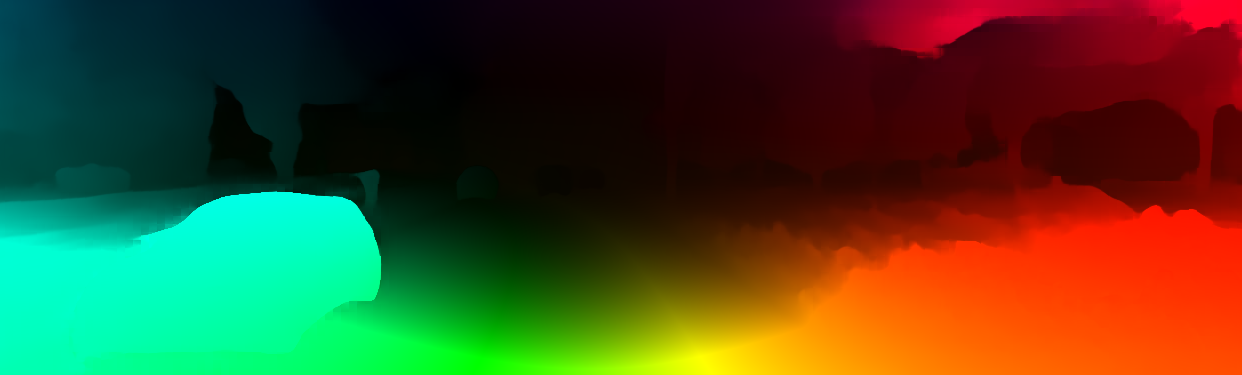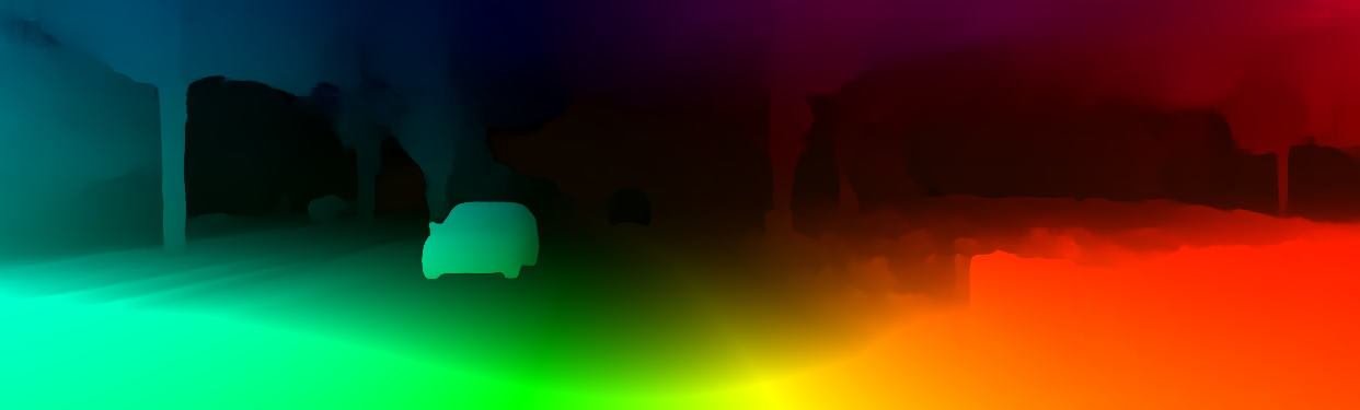 This page provides detailed results for the method(s) selected. For the first 20 test images, the percentage of erroneous pixels is depicted in the table. We use the error metric described in Object Scene Flow for Autonomous Vehicles (CVPR 2015), which considers a pixel to be correctly estimated if the disparity or flow end-point error is <3px or <5% (for scene flow this criterion needs to be fulfilled for both disparity maps and the flow map). Underneath, the left input image, the estimated results and the error maps are shown (for disp_0/disp_1/flow/scene_flow, respectively). The error map uses the log-color scale described in Object Scene Flow for Autonomous Vehicles (CVPR 2015), depicting correct estimates (<3px or <5% error) in blue and wrong estimates in red color tones. Dark regions in the error images denote the occluded pixels which fall outside the image boundaries. The false color maps of the results are scaled to the largest ground truth disparity values / flow magnitudes.