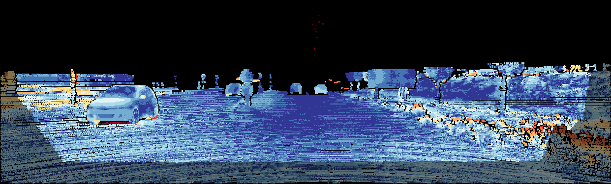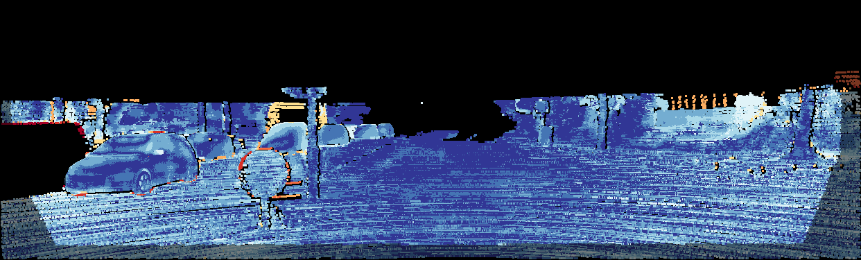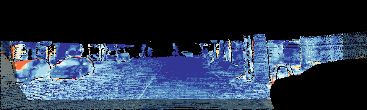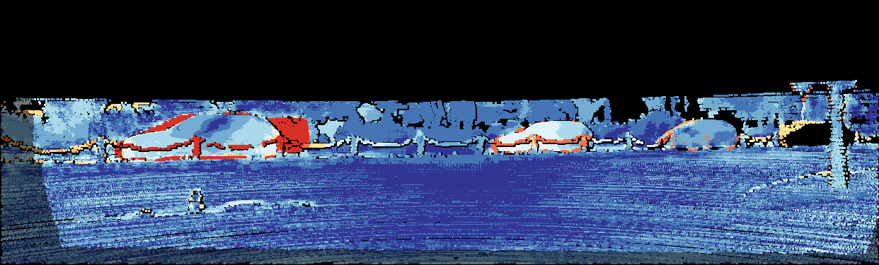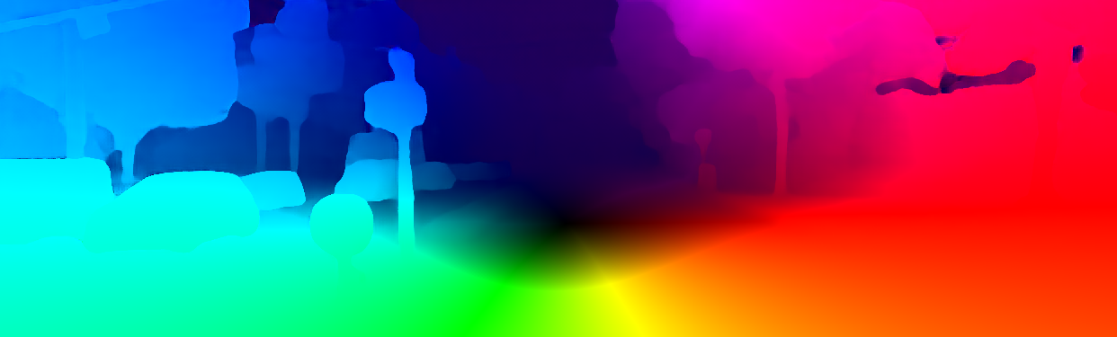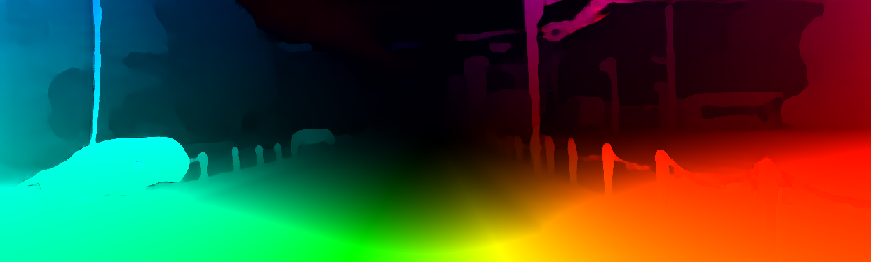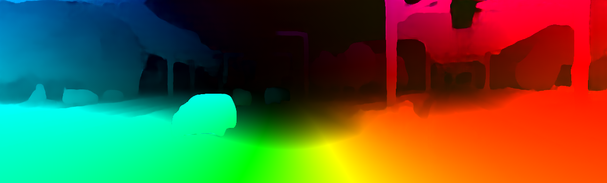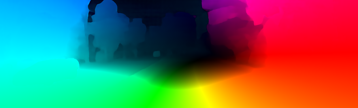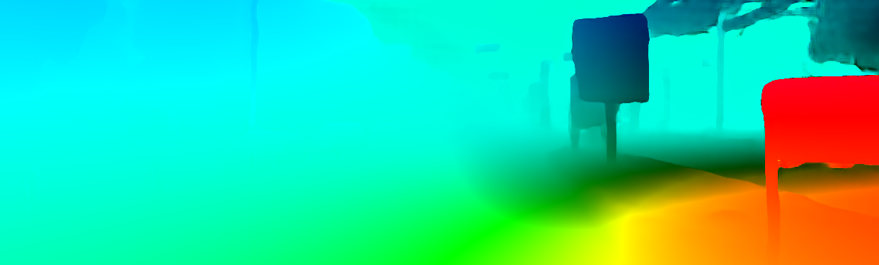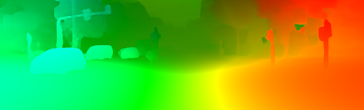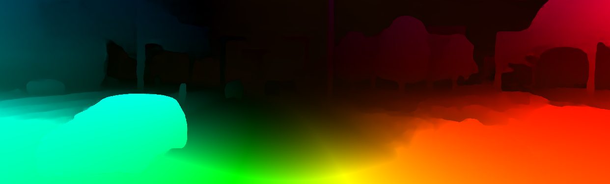 This page provides detailed results for the method(s) selected. For the first 20 test images, the percentage of erroneous pixels is depicted in the table. We use the error metric described in Object Scene Flow for Autonomous Vehicles (CVPR 2015), which considers a pixel to be correctly estimated if the disparity or flow end-point error is <3px or <5% (for scene flow this criterion needs to be fulfilled for both disparity maps and the flow map). Underneath, the left input image, the estimated results and the error maps are shown (for disp_0/disp_1/flow/scene_flow, respectively). The error map uses the log-color scale described in Object Scene Flow for Autonomous Vehicles (CVPR 2015), depicting correct estimates (<3px or <5% error) in blue and wrong estimates in red color tones. Dark regions in the error images denote the occluded pixels which fall outside the image boundaries. The false color maps of the results are scaled to the largest ground truth disparity values / flow magnitudes.