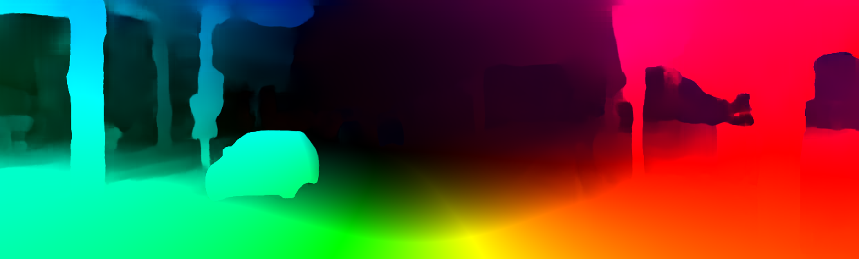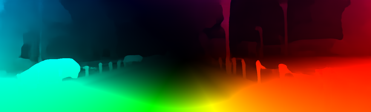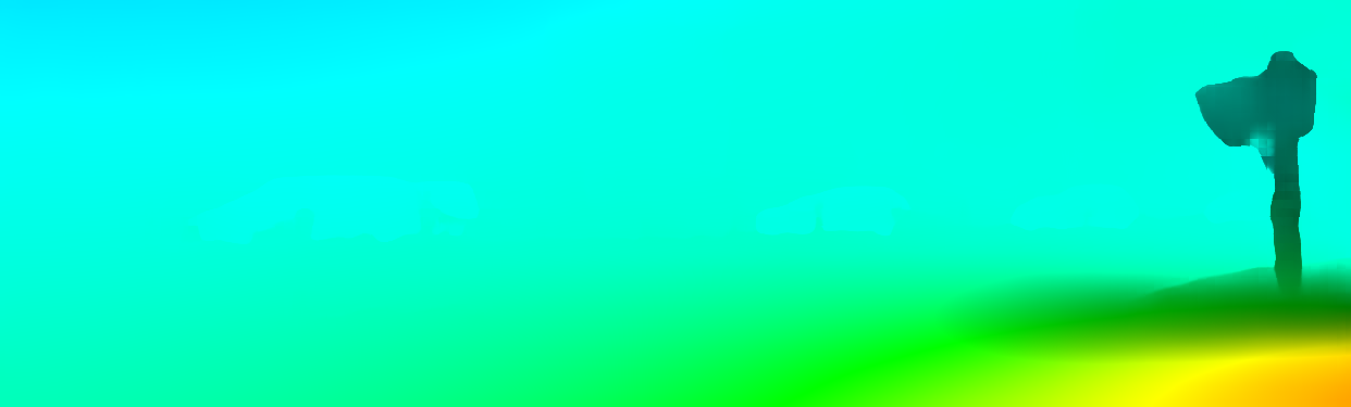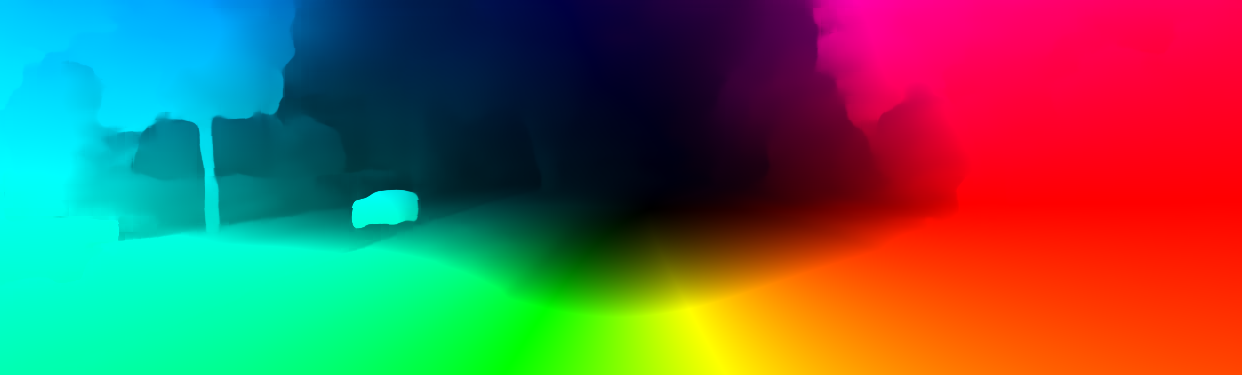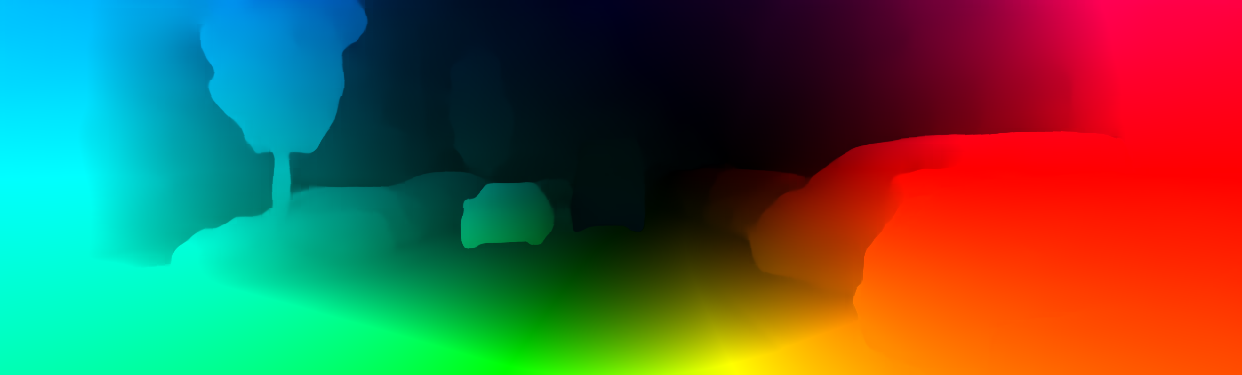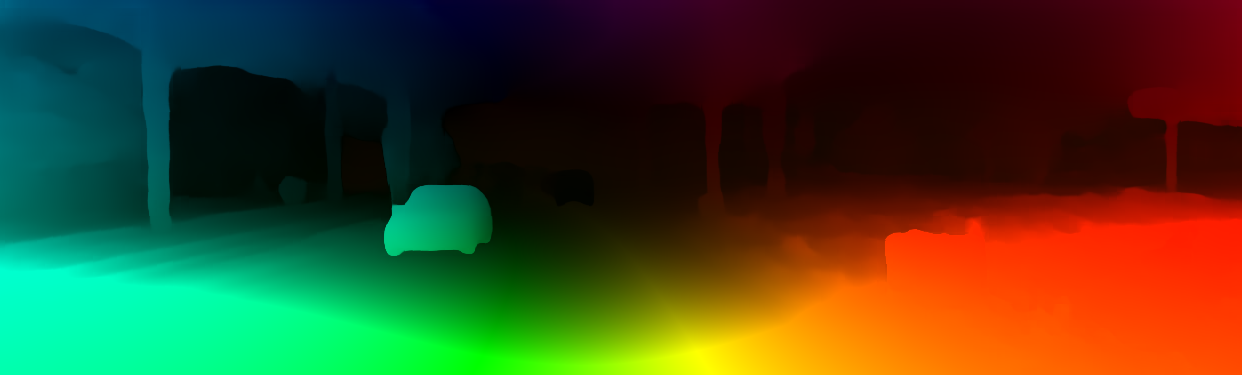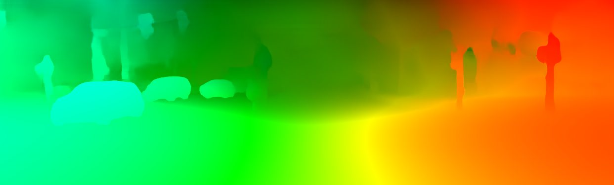 This page provides detailed results for the method(s) selected. For the first 20 test images, the percentage of erroneous pixels is depicted in the table. We use the error metric described in Object Scene Flow for Autonomous Vehicles (CVPR 2015), which considers a pixel to be correctly estimated if the disparity or flow end-point error is <3px or <5% (for scene flow this criterion needs to be fulfilled for both disparity maps and the flow map). Underneath, the left input image, the estimated results and the error maps are shown (for disp_0/disp_1/flow/scene_flow, respectively). The error map uses the log-color scale described in Object Scene Flow for Autonomous Vehicles (CVPR 2015), depicting correct estimates (<3px or <5% error) in blue and wrong estimates in red color tones. Dark regions in the error images denote the occluded pixels which fall outside the image boundaries. The false color maps of the results are scaled to the largest ground truth disparity values / flow magnitudes.