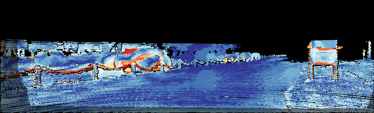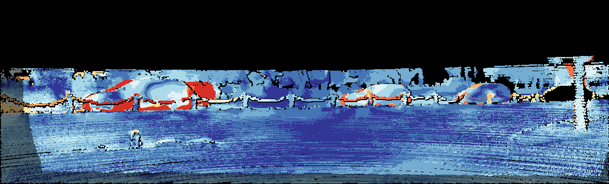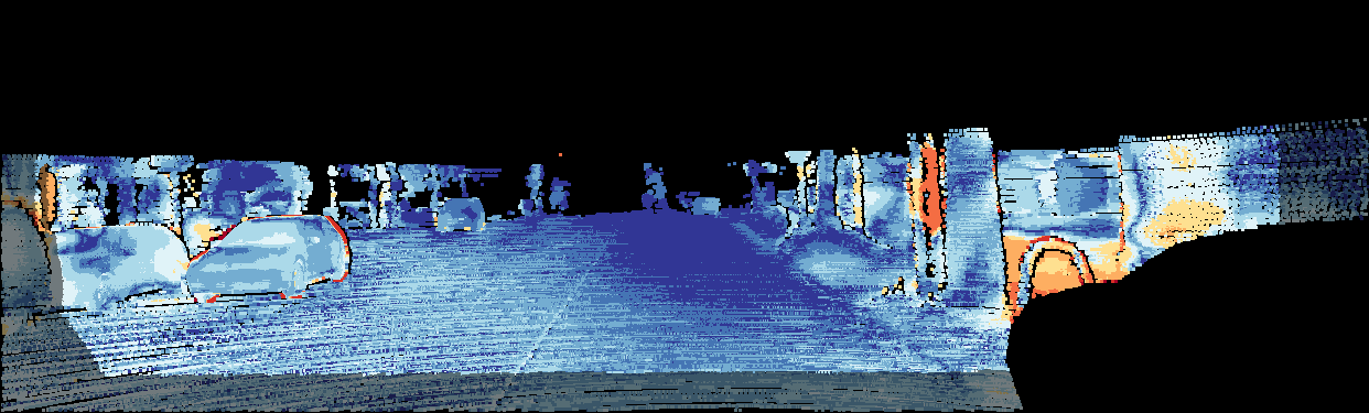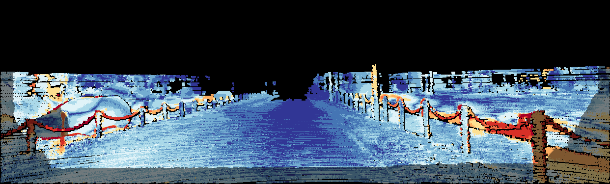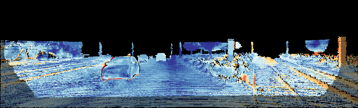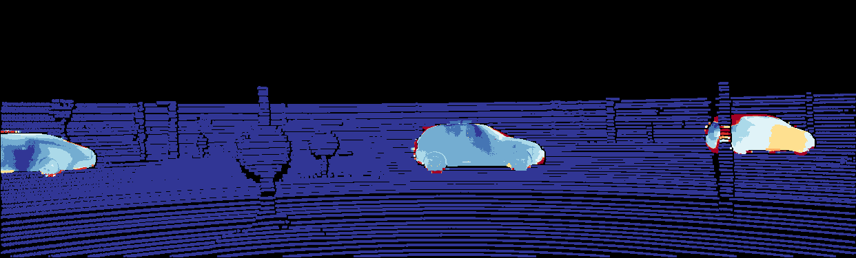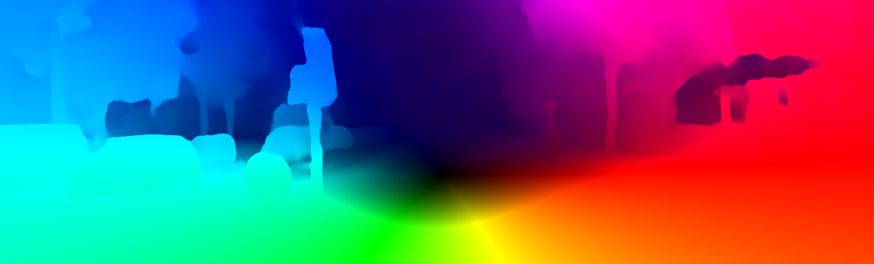 This page provides detailed results for the method(s) selected. For the first 20 test images, the percentage of erroneous pixels is depicted in the table. We use the error metric described in Object Scene Flow for Autonomous Vehicles (CVPR 2015), which considers a pixel to be correctly estimated if the disparity or flow end-point error is <3px or <5% (for scene flow this criterion needs to be fulfilled for both disparity maps and the flow map). Underneath, the left input image, the estimated results and the error maps are shown (for disp_0/disp_1/flow/scene_flow, respectively). The error map uses the log-color scale described in Object Scene Flow for Autonomous Vehicles (CVPR 2015), depicting correct estimates (<3px or <5% error) in blue and wrong estimates in red color tones. Dark regions in the error images denote the occluded pixels which fall outside the image boundaries. The false color maps of the results are scaled to the largest ground truth disparity values / flow magnitudes.