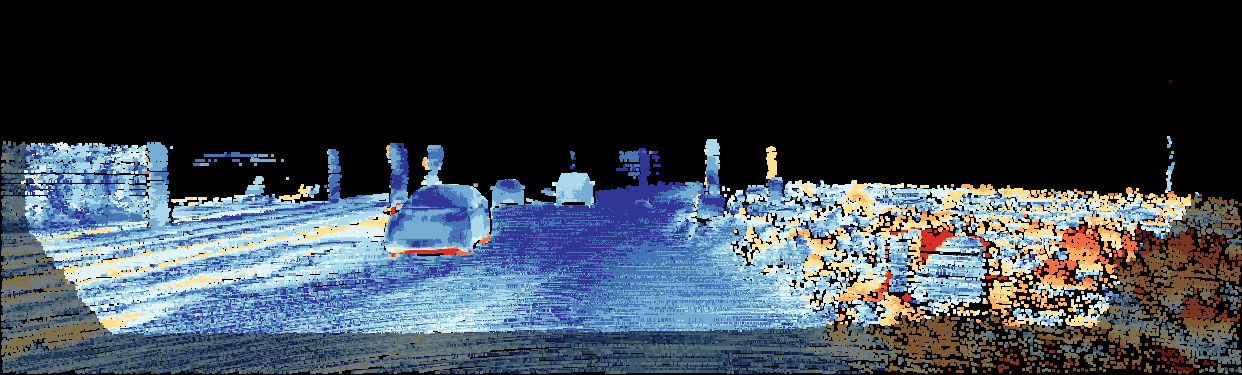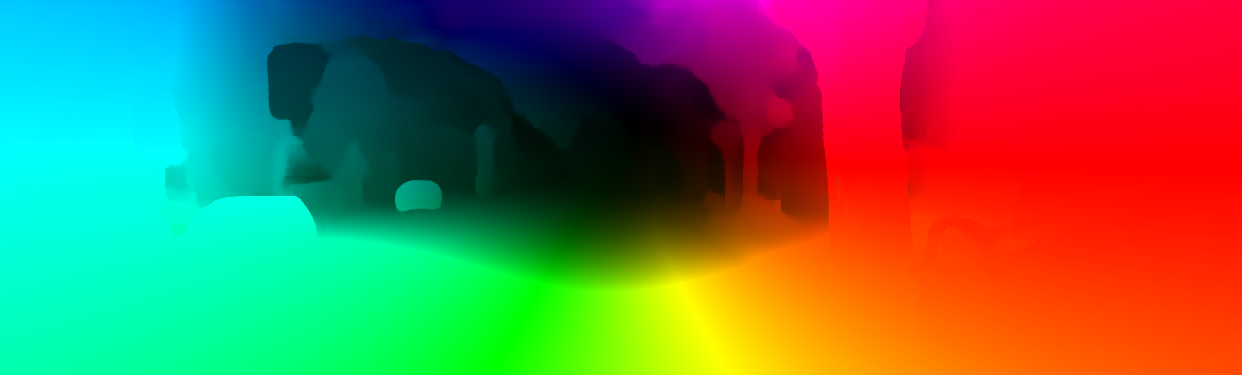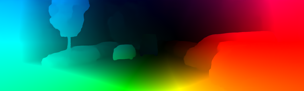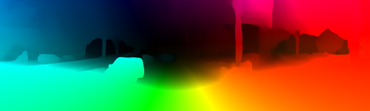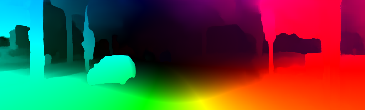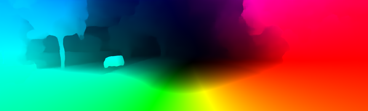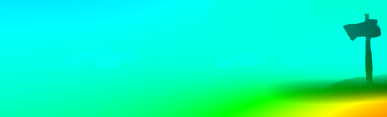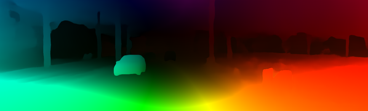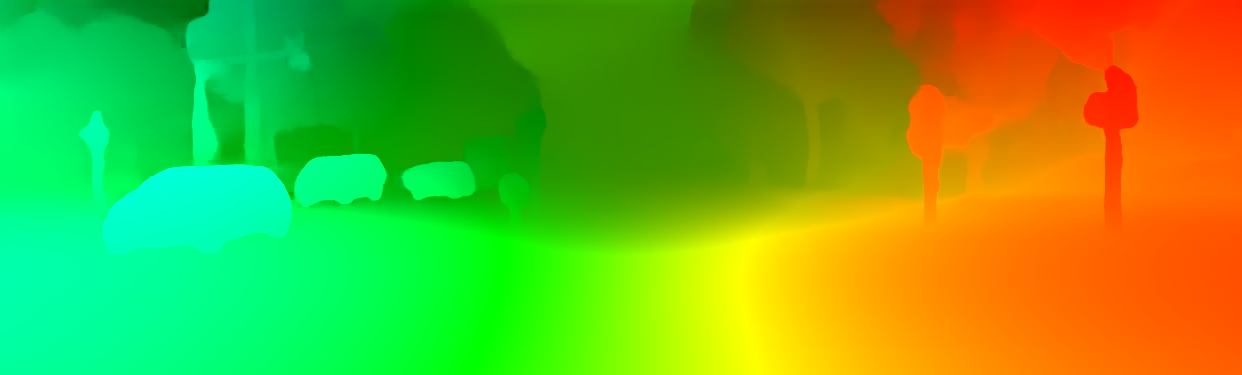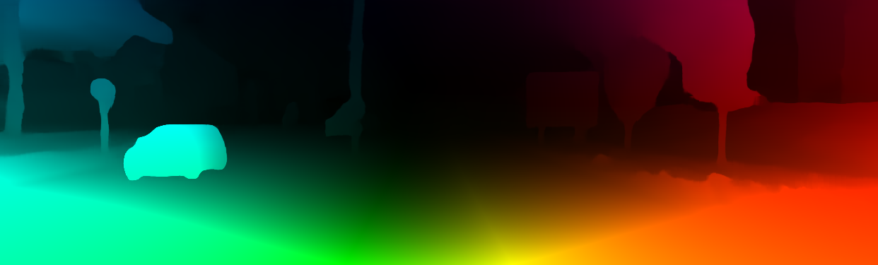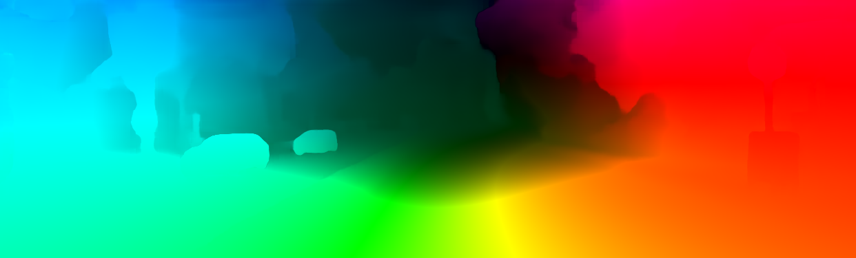 This page provides detailed results for the method(s) selected. For the first 20 test images, the percentage of erroneous pixels is depicted in the table. We use the error metric described in Object Scene Flow for Autonomous Vehicles (CVPR 2015), which considers a pixel to be correctly estimated if the disparity or flow end-point error is <3px or <5% (for scene flow this criterion needs to be fulfilled for both disparity maps and the flow map). Underneath, the left input image, the estimated results and the error maps are shown (for disp_0/disp_1/flow/scene_flow, respectively). The error map uses the log-color scale described in Object Scene Flow for Autonomous Vehicles (CVPR 2015), depicting correct estimates (<3px or <5% error) in blue and wrong estimates in red color tones. Dark regions in the error images denote the occluded pixels which fall outside the image boundaries. The false color maps of the results are scaled to the largest ground truth disparity values / flow magnitudes.