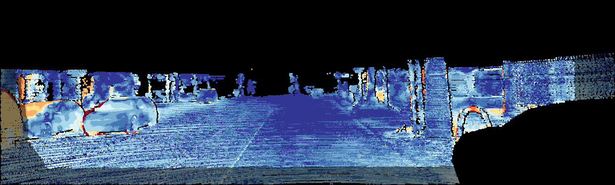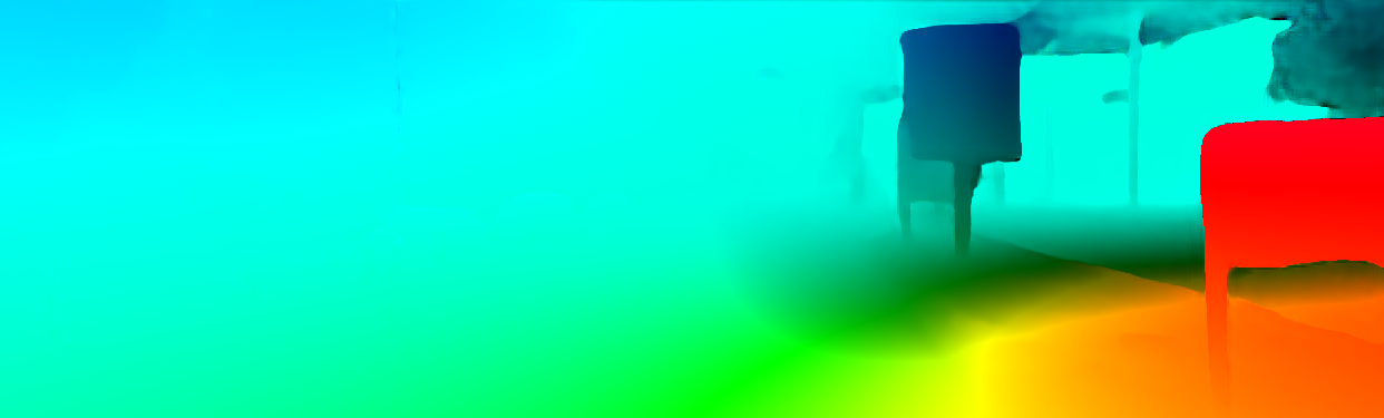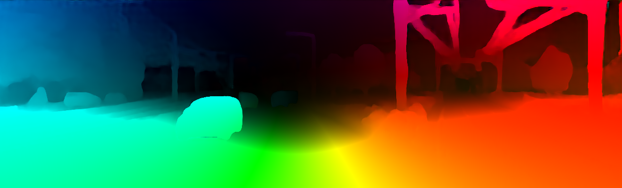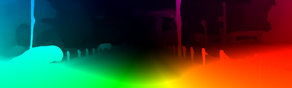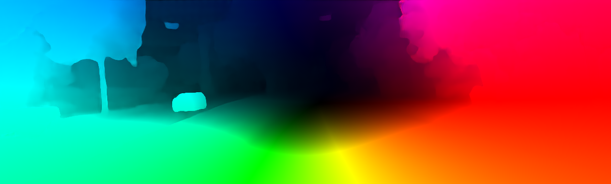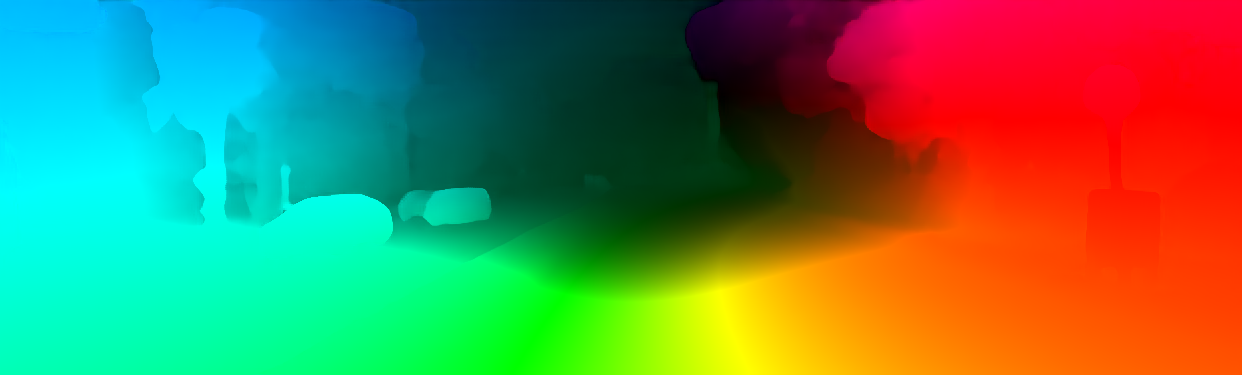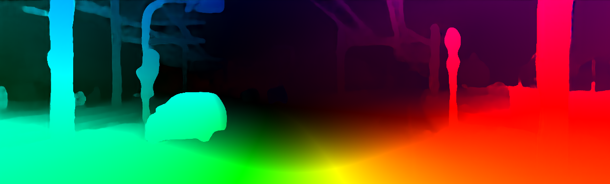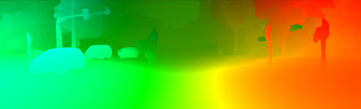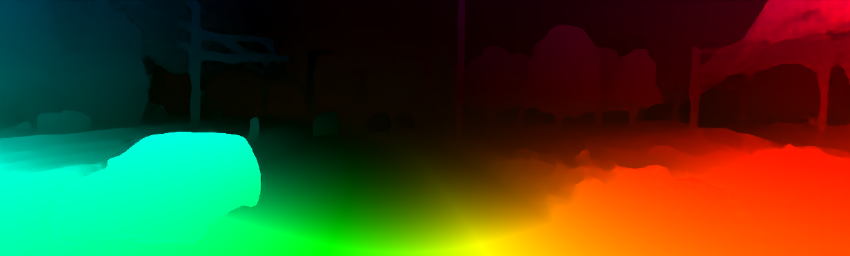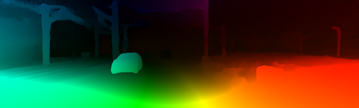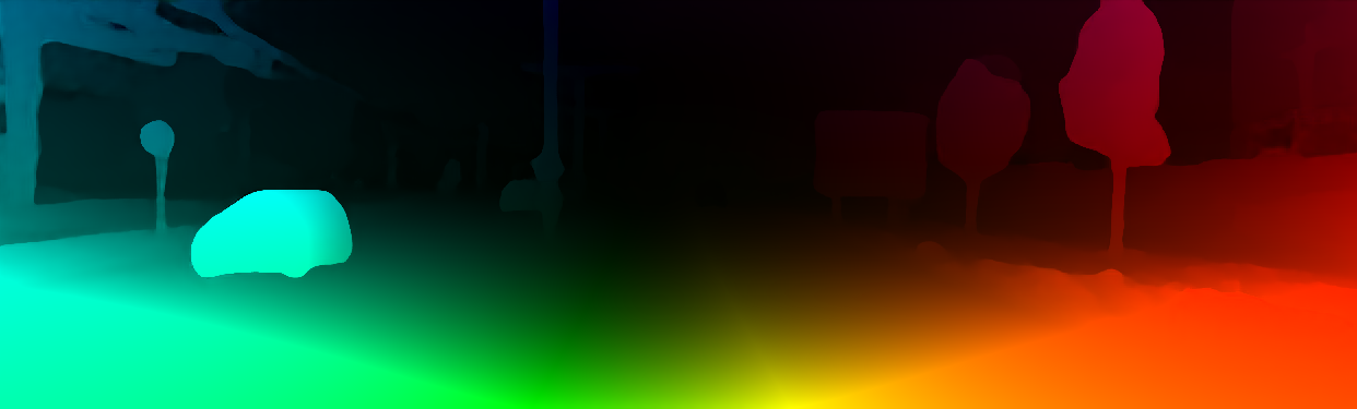 This page provides detailed results for the method(s) selected. For the first 20 test images, the percentage of erroneous pixels is depicted in the table. We use the error metric described in Object Scene Flow for Autonomous Vehicles (CVPR 2015), which considers a pixel to be correctly estimated if the disparity or flow end-point error is <3px or <5% (for scene flow this criterion needs to be fulfilled for both disparity maps and the flow map). Underneath, the left input image, the estimated results and the error maps are shown (for disp_0/disp_1/flow/scene_flow, respectively). The error map uses the log-color scale described in Object Scene Flow for Autonomous Vehicles (CVPR 2015), depicting correct estimates (<3px or <5% error) in blue and wrong estimates in red color tones. Dark regions in the error images denote the occluded pixels which fall outside the image boundaries. The false color maps of the results are scaled to the largest ground truth disparity values / flow magnitudes.