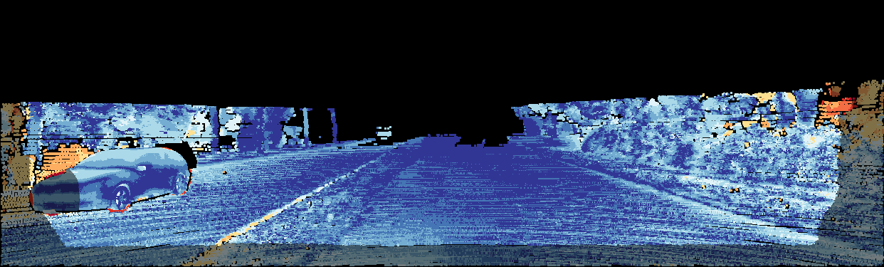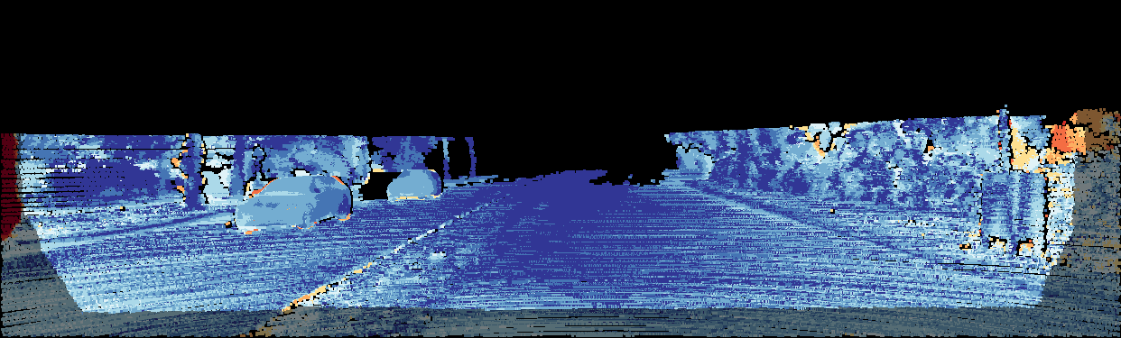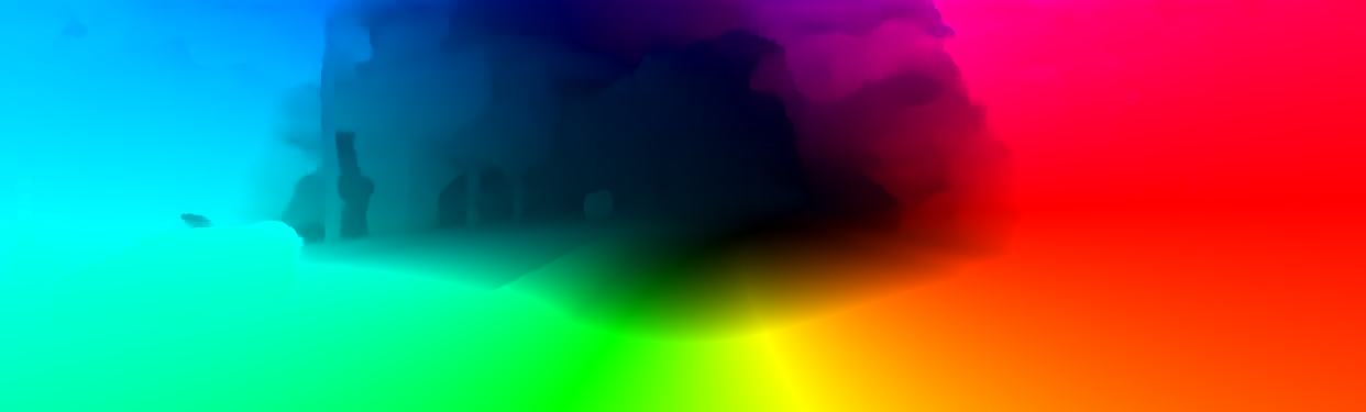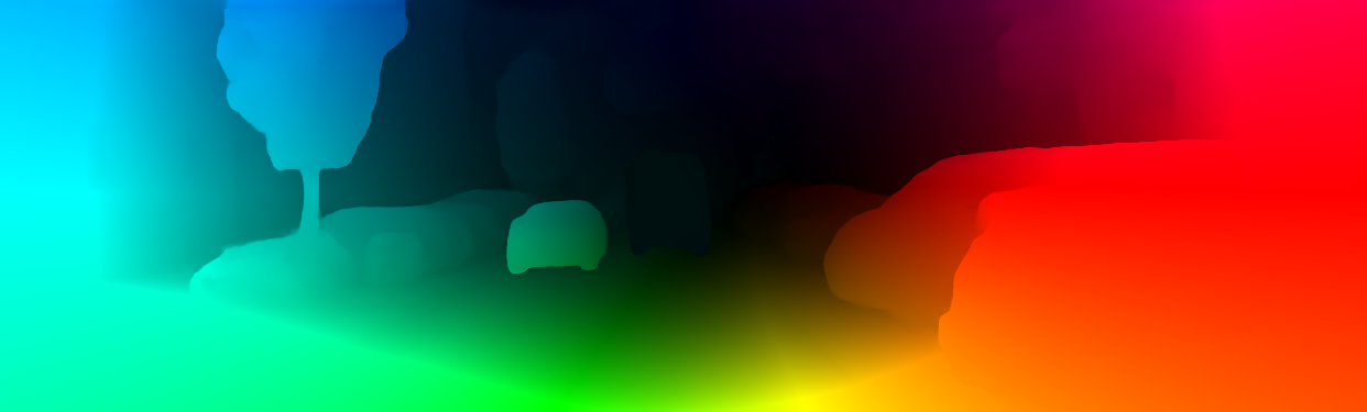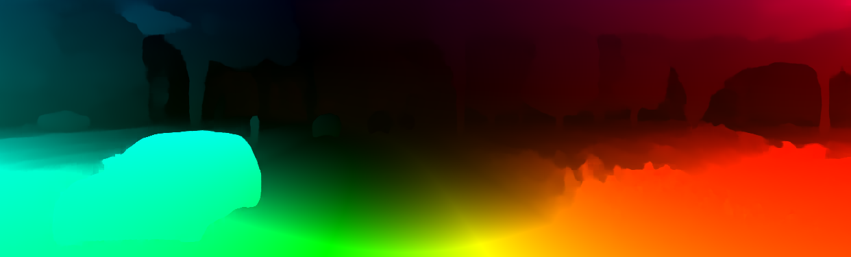 This page provides detailed results for the method(s) selected. For the first 20 test images, the percentage of erroneous pixels is depicted in the table. We use the error metric described in Object Scene Flow for Autonomous Vehicles (CVPR 2015), which considers a pixel to be correctly estimated if the disparity or flow end-point error is <3px or <5% (for scene flow this criterion needs to be fulfilled for both disparity maps and the flow map). Underneath, the left input image, the estimated results and the error maps are shown (for disp_0/disp_1/flow/scene_flow, respectively). The error map uses the log-color scale described in Object Scene Flow for Autonomous Vehicles (CVPR 2015), depicting correct estimates (<3px or <5% error) in blue and wrong estimates in red color tones. Dark regions in the error images denote the occluded pixels which fall outside the image boundaries. The false color maps of the results are scaled to the largest ground truth disparity values / flow magnitudes.