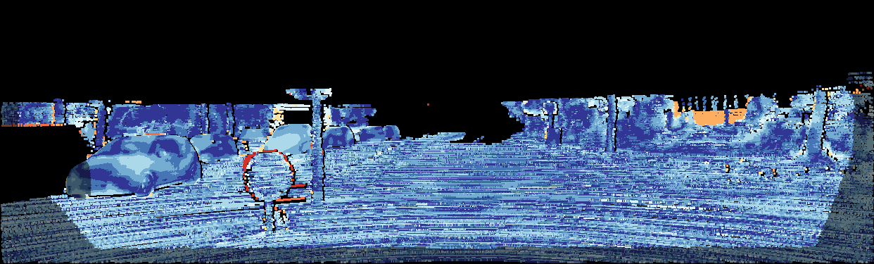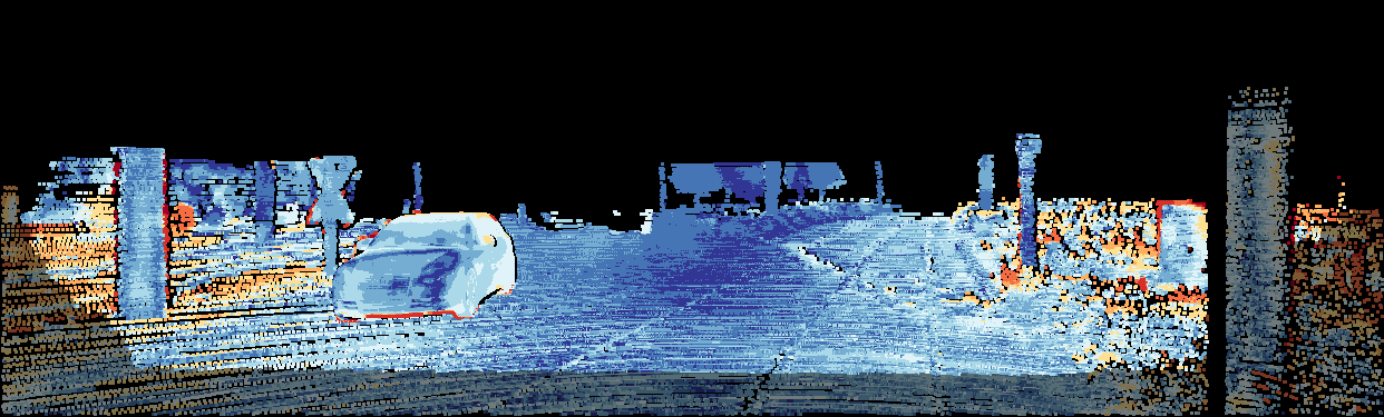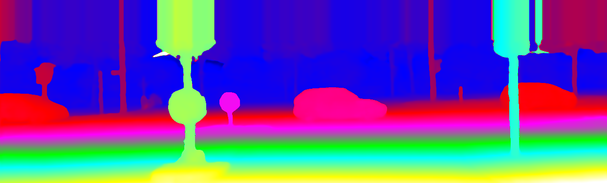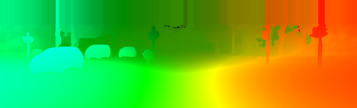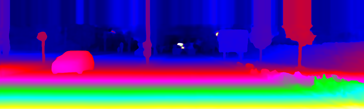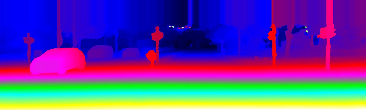 This page provides detailed results for the method(s) selected. For the first 20 test images, the percentage of erroneous pixels is depicted in the table. We use the error metric described in Object Scene Flow for Autonomous Vehicles (CVPR 2015), which considers a pixel to be correctly estimated if the disparity or flow end-point error is <3px or <5% (for scene flow this criterion needs to be fulfilled for both disparity maps and the flow map). Underneath, the left input image, the estimated results and the error maps are shown (for disp_0/disp_1/flow/scene_flow, respectively). The error map uses the log-color scale described in Object Scene Flow for Autonomous Vehicles (CVPR 2015), depicting correct estimates (<3px or <5% error) in blue and wrong estimates in red color tones. Dark regions in the error images denote the occluded pixels which fall outside the image boundaries. The false color maps of the results are scaled to the largest ground truth disparity values / flow magnitudes.