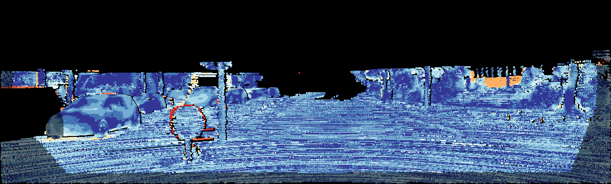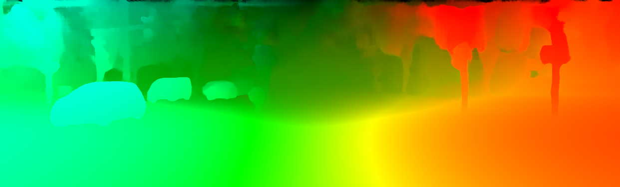 This page provides detailed results for the method(s) selected. For the first 20 test images, the percentage of erroneous pixels is depicted in the table. We use the error metric described in Object Scene Flow for Autonomous Vehicles (CVPR 2015), which considers a pixel to be correctly estimated if the disparity or flow end-point error is <3px or <5% (for scene flow this criterion needs to be fulfilled for both disparity maps and the flow map). Underneath, the left input image, the estimated results and the error maps are shown (for disp_0/disp_1/flow/scene_flow, respectively). The error map uses the log-color scale described in Object Scene Flow for Autonomous Vehicles (CVPR 2015), depicting correct estimates (<3px or <5% error) in blue and wrong estimates in red color tones. Dark regions in the error images denote the occluded pixels which fall outside the image boundaries. The false color maps of the results are scaled to the largest ground truth disparity values / flow magnitudes.