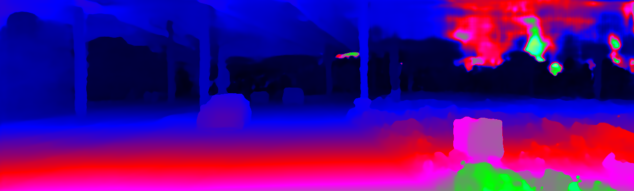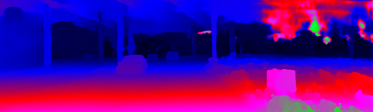 ![]() Input Image ![]() D1 Result ![]() D1 Error ![]() D2 Result ![]() D2 Error ![]() Flow Result ![]() Flow Error ![]() Scene Flow Error |