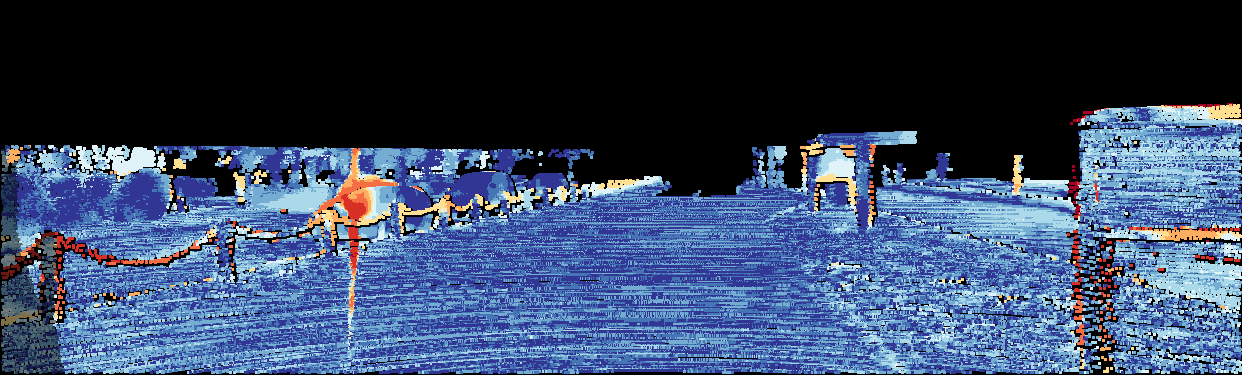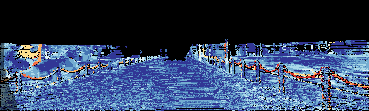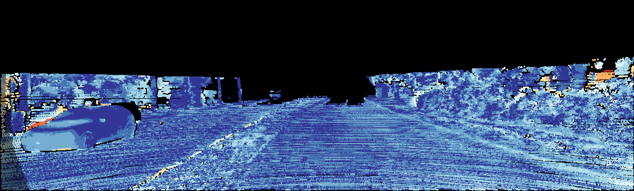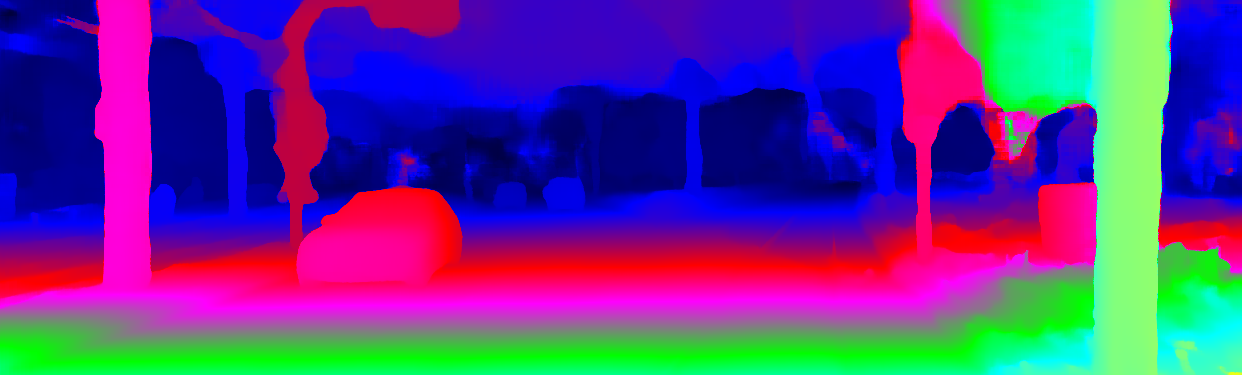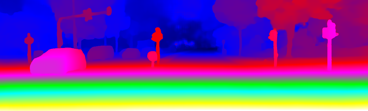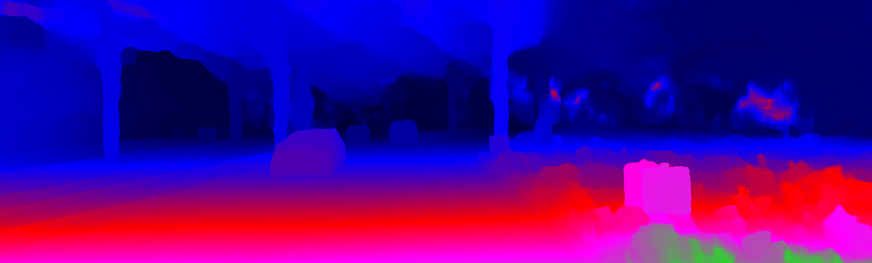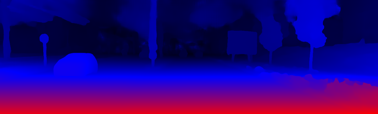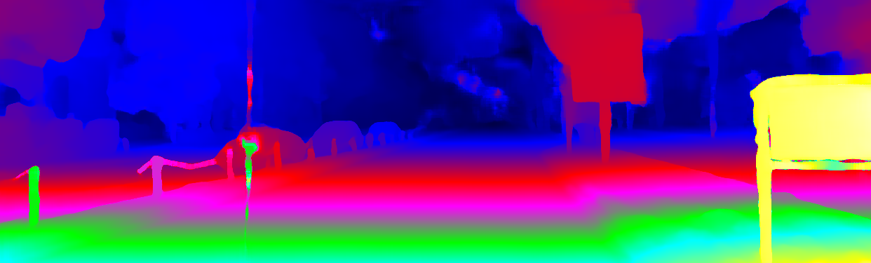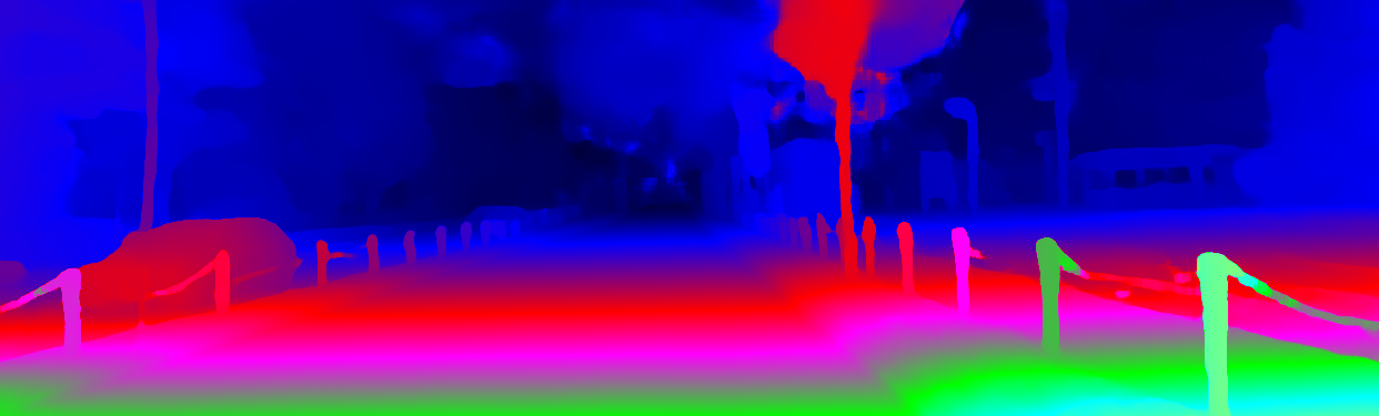 This page provides detailed results for the method(s) selected. For the first 20 test images, the percentage of erroneous pixels is depicted in the table. We use the error metric described in Object Scene Flow for Autonomous Vehicles (CVPR 2015), which considers a pixel to be correctly estimated if the disparity or flow end-point error is <3px or <5% (for scene flow this criterion needs to be fulfilled for both disparity maps and the flow map). Underneath, the left input image, the estimated results and the error maps are shown (for disp_0/disp_1/flow/scene_flow, respectively). The error map uses the log-color scale described in Object Scene Flow for Autonomous Vehicles (CVPR 2015), depicting correct estimates (<3px or <5% error) in blue and wrong estimates in red color tones. Dark regions in the error images denote the occluded pixels which fall outside the image boundaries. The false color maps of the results are scaled to the largest ground truth disparity values / flow magnitudes.