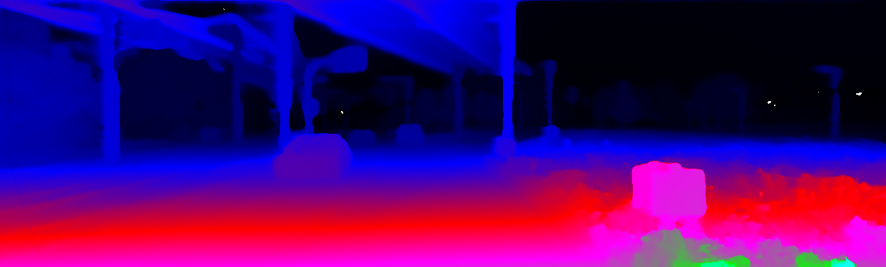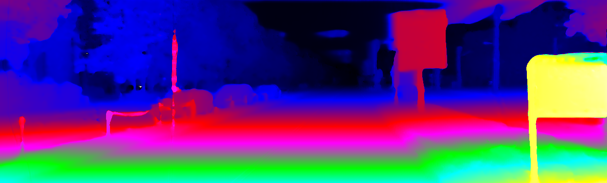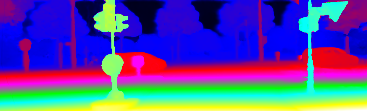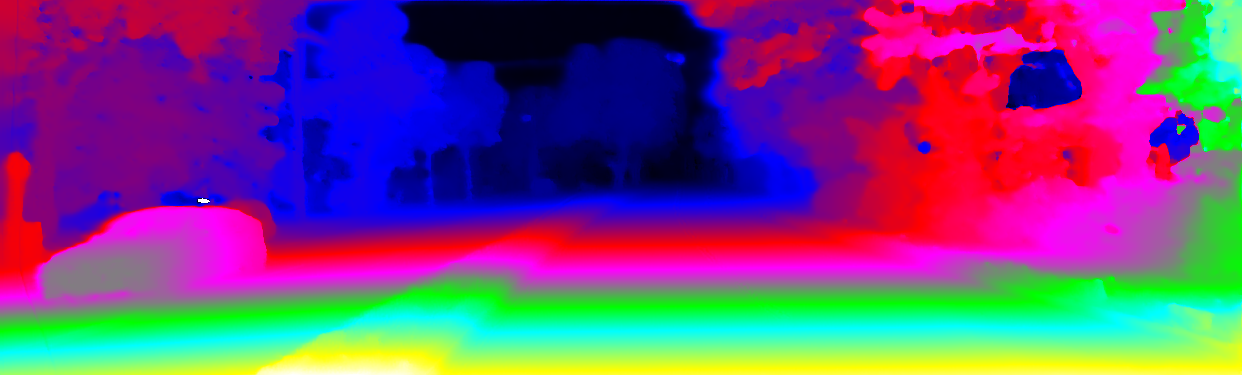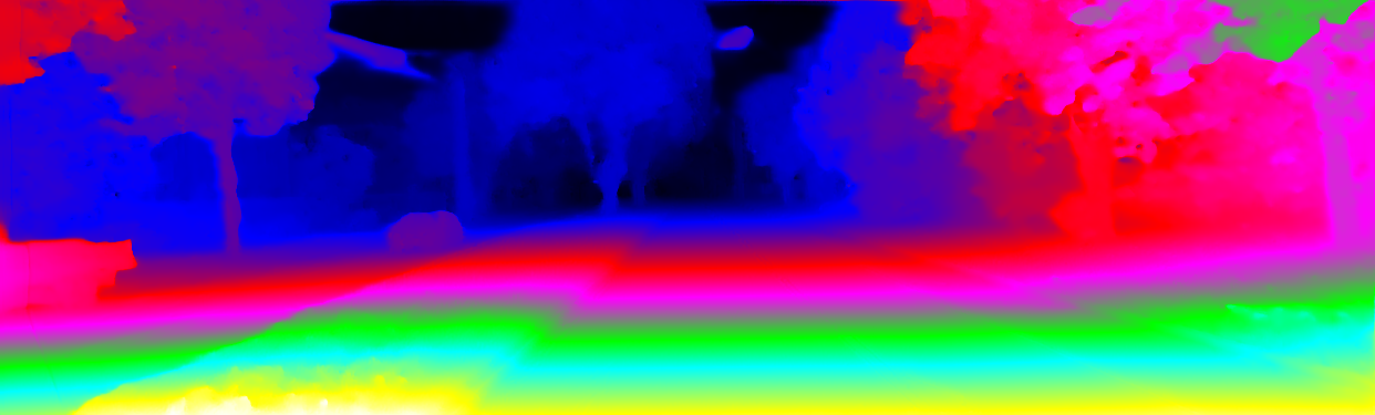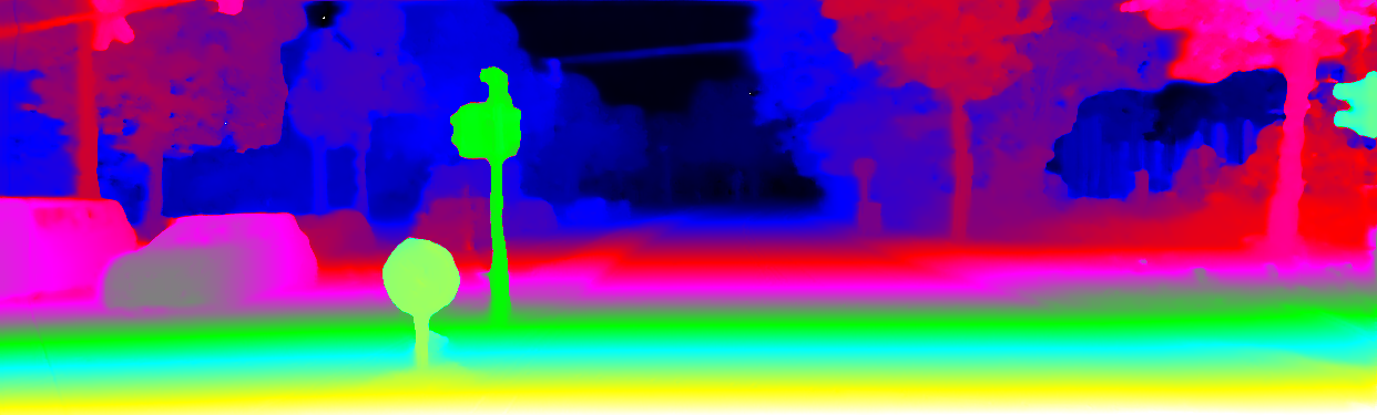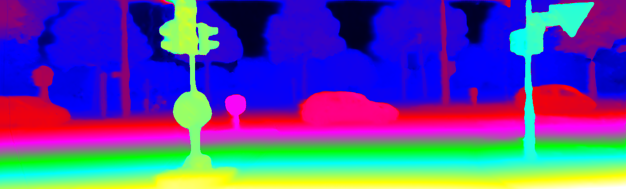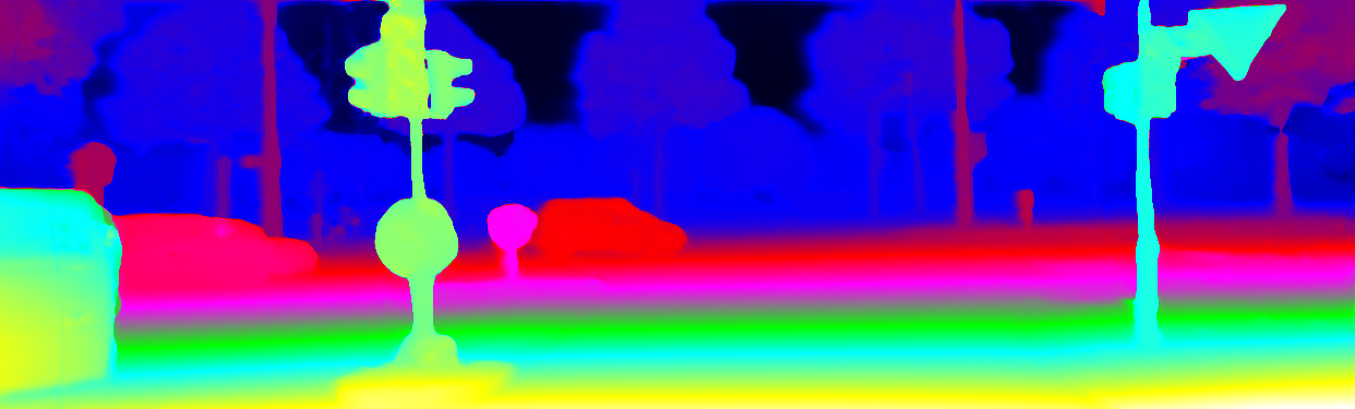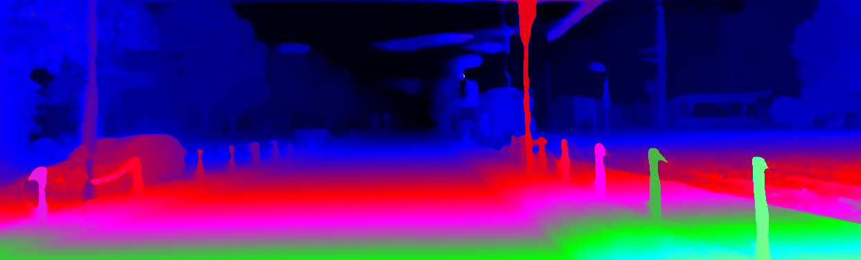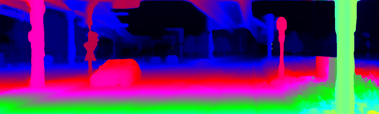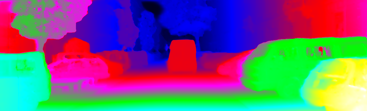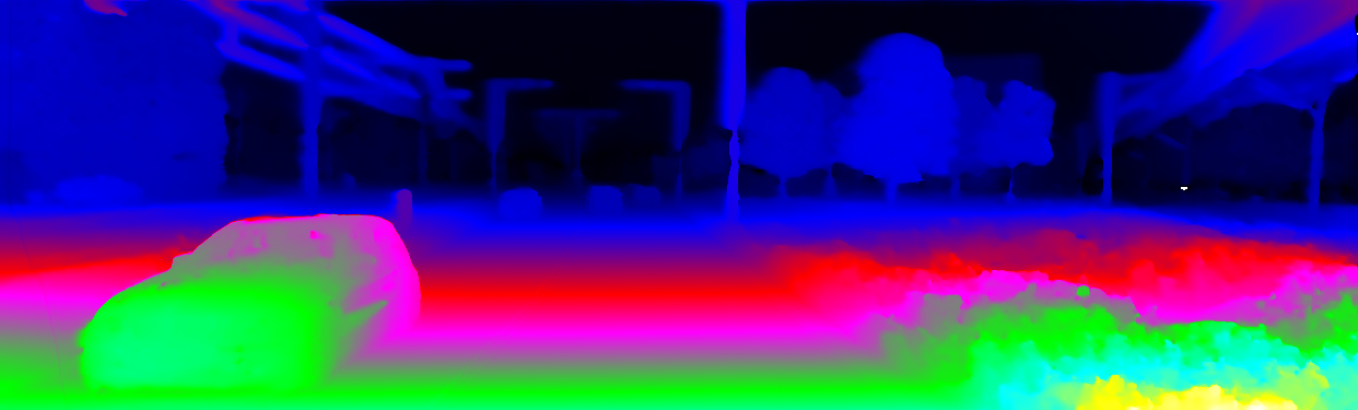 This page provides detailed results for the method(s) selected. For the first 20 test images, the percentage of erroneous pixels is depicted in the table. We use the error metric described in Object Scene Flow for Autonomous Vehicles (CVPR 2015), which considers a pixel to be correctly estimated if the disparity or flow end-point error is <3px or <5% (for scene flow this criterion needs to be fulfilled for both disparity maps and the flow map). Underneath, the left input image, the estimated results and the error maps are shown (for disp_0/disp_1/flow/scene_flow, respectively). The error map uses the log-color scale described in Object Scene Flow for Autonomous Vehicles (CVPR 2015), depicting correct estimates (<3px or <5% error) in blue and wrong estimates in red color tones. Dark regions in the error images denote the occluded pixels which fall outside the image boundaries. The false color maps of the results are scaled to the largest ground truth disparity values / flow magnitudes.
