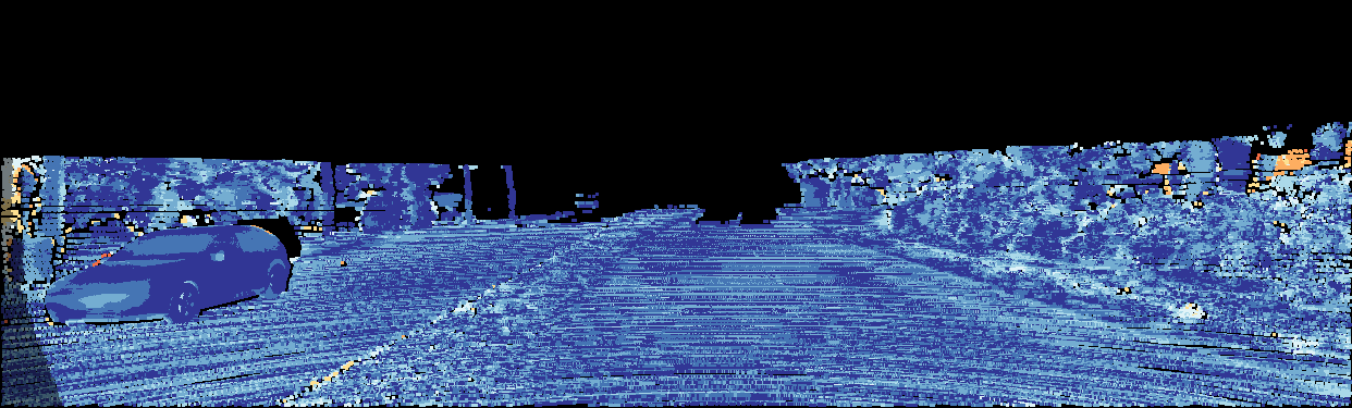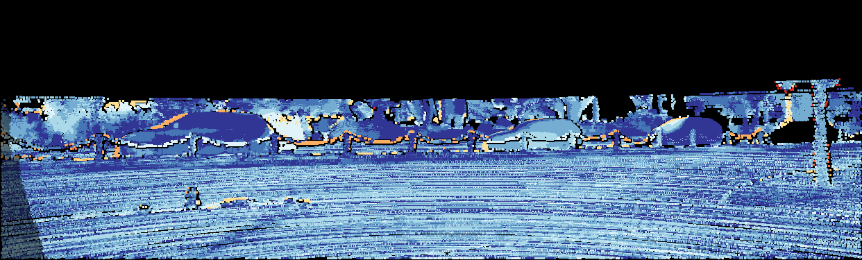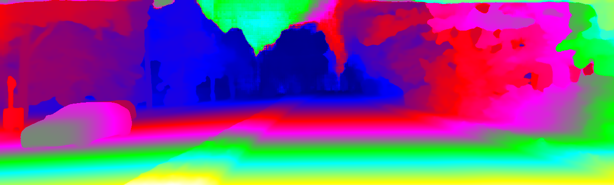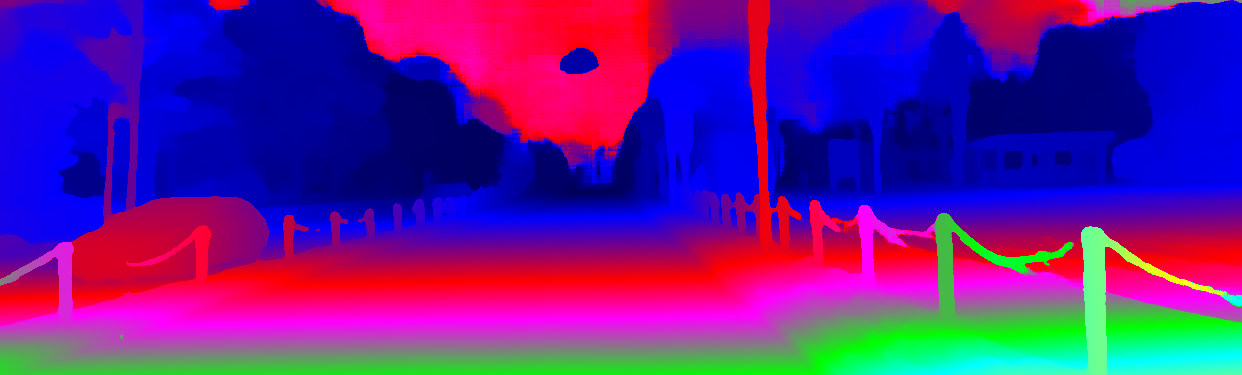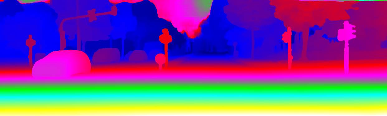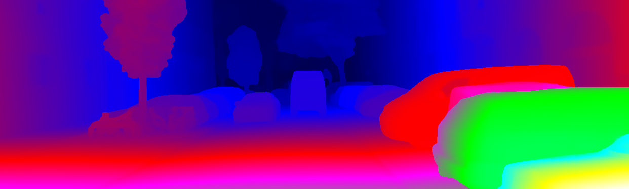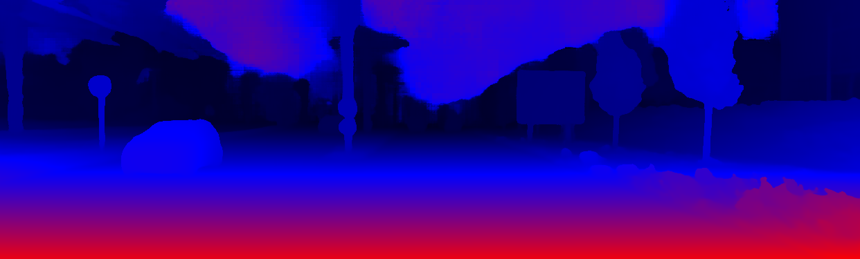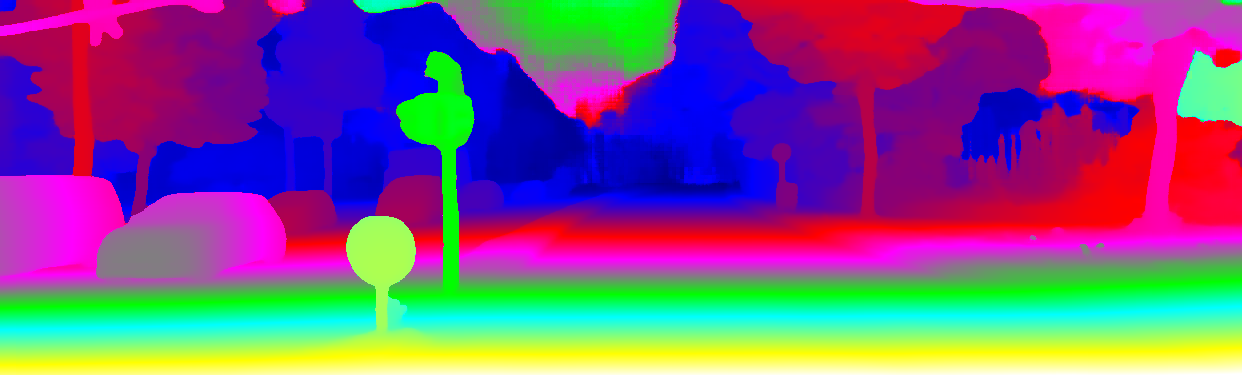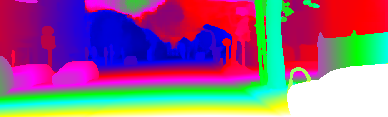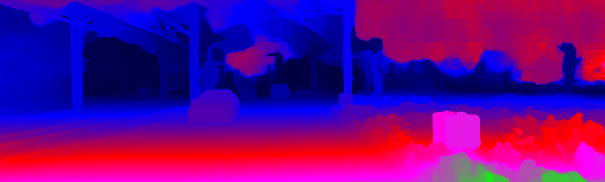 This page provides detailed results for the method(s) selected. For the first 20 test images, the percentage of erroneous pixels is depicted in the table. We use the error metric described in Object Scene Flow for Autonomous Vehicles (CVPR 2015), which considers a pixel to be correctly estimated if the disparity or flow end-point error is <3px or <5% (for scene flow this criterion needs to be fulfilled for both disparity maps and the flow map). Underneath, the left input image, the estimated results and the error maps are shown (for disp_0/disp_1/flow/scene_flow, respectively). The error map uses the log-color scale described in Object Scene Flow for Autonomous Vehicles (CVPR 2015), depicting correct estimates (<3px or <5% error) in blue and wrong estimates in red color tones. Dark regions in the error images denote the occluded pixels which fall outside the image boundaries. The false color maps of the results are scaled to the largest ground truth disparity values / flow magnitudes.