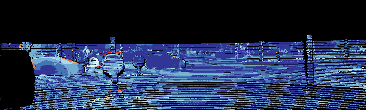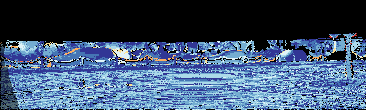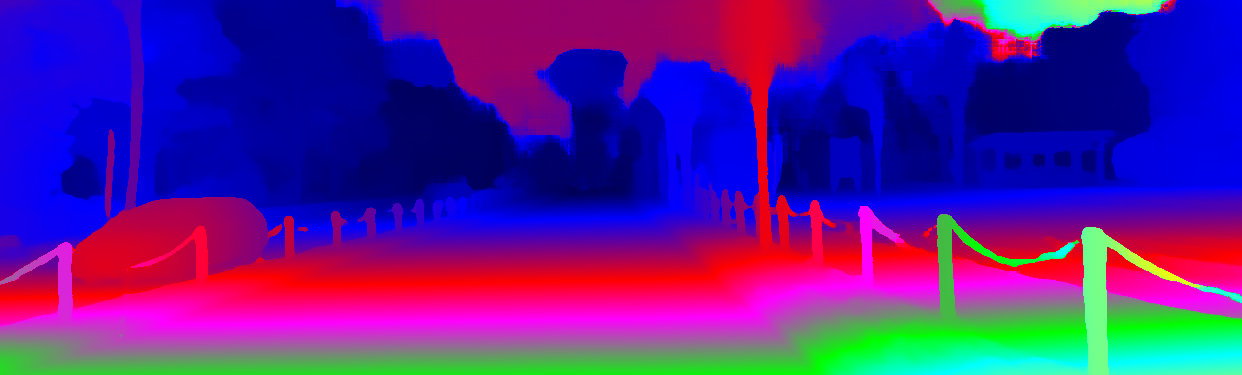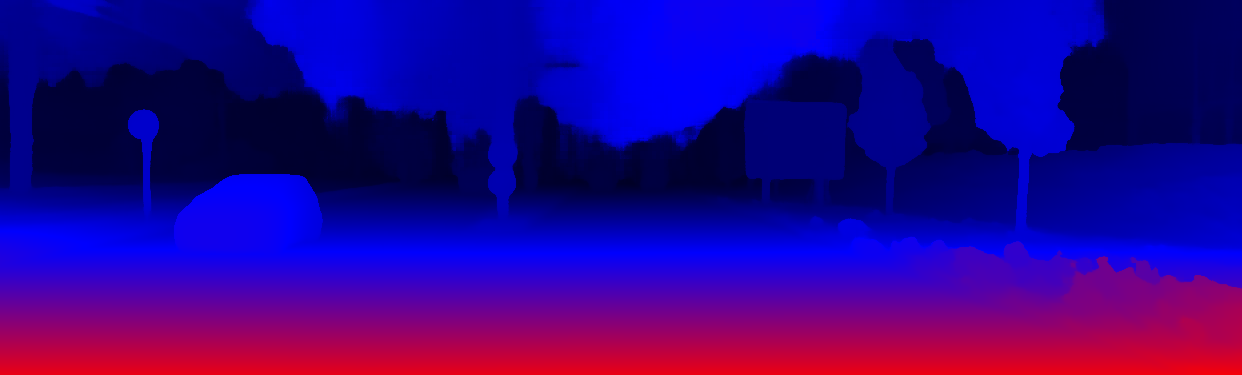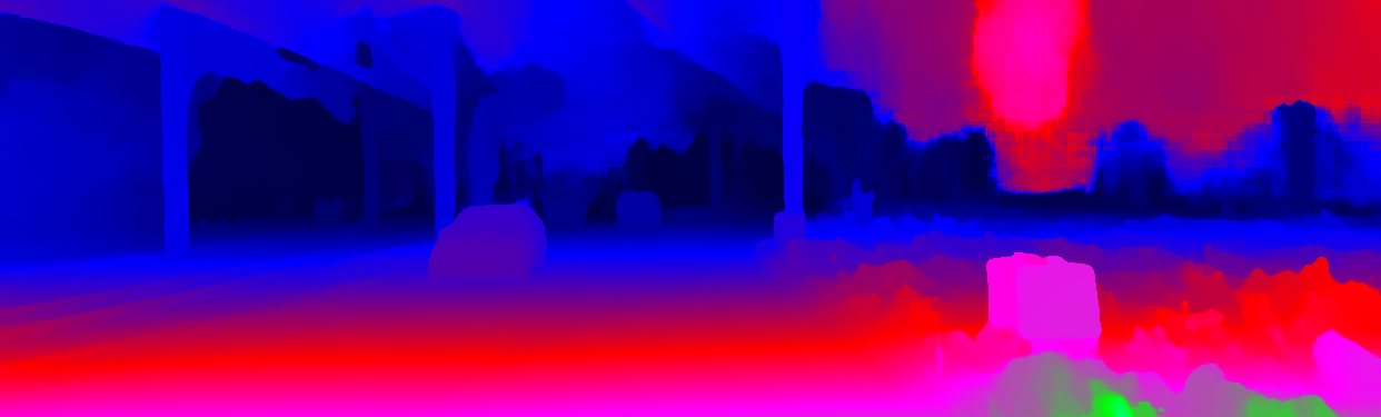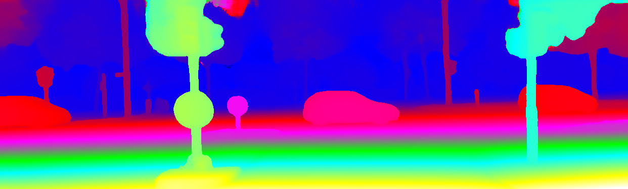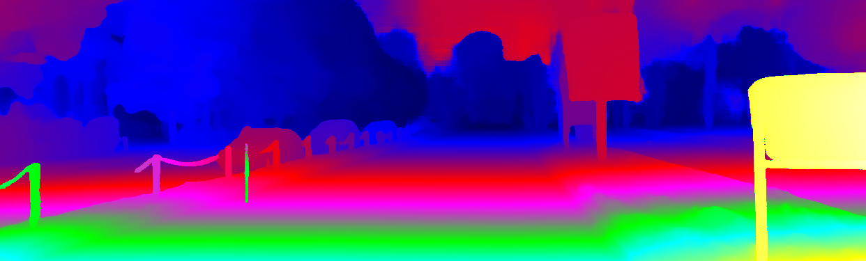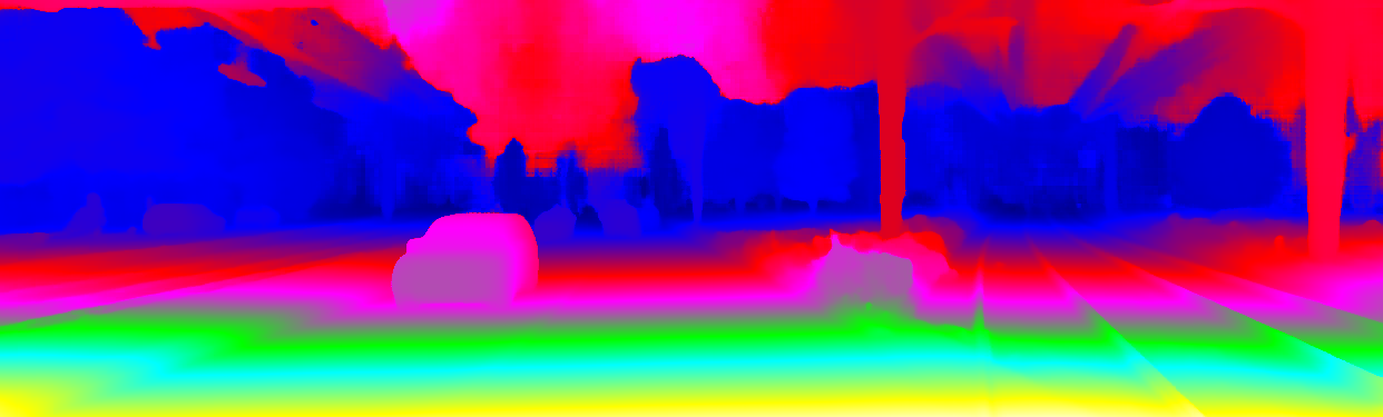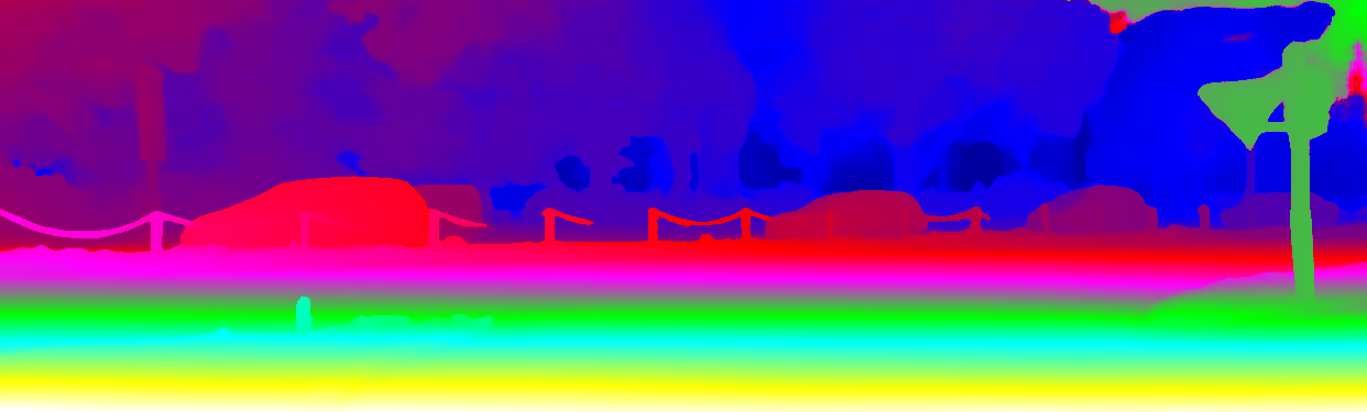 This page provides detailed results for the method(s) selected. For the first 20 test images, the percentage of erroneous pixels is depicted in the table. We use the error metric described in Object Scene Flow for Autonomous Vehicles (CVPR 2015), which considers a pixel to be correctly estimated if the disparity or flow end-point error is <3px or <5% (for scene flow this criterion needs to be fulfilled for both disparity maps and the flow map). Underneath, the left input image, the estimated results and the error maps are shown (for disp_0/disp_1/flow/scene_flow, respectively). The error map uses the log-color scale described in Object Scene Flow for Autonomous Vehicles (CVPR 2015), depicting correct estimates (<3px or <5% error) in blue and wrong estimates in red color tones. Dark regions in the error images denote the occluded pixels which fall outside the image boundaries. The false color maps of the results are scaled to the largest ground truth disparity values / flow magnitudes.