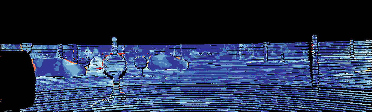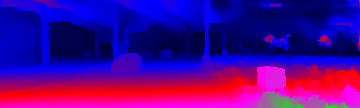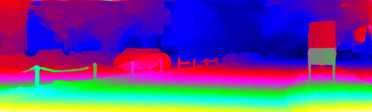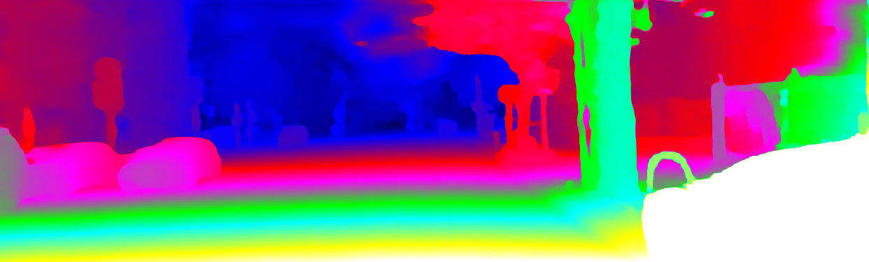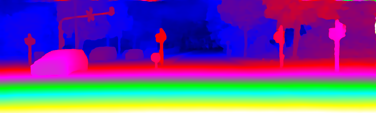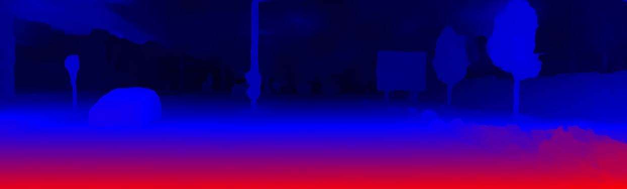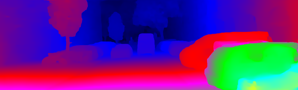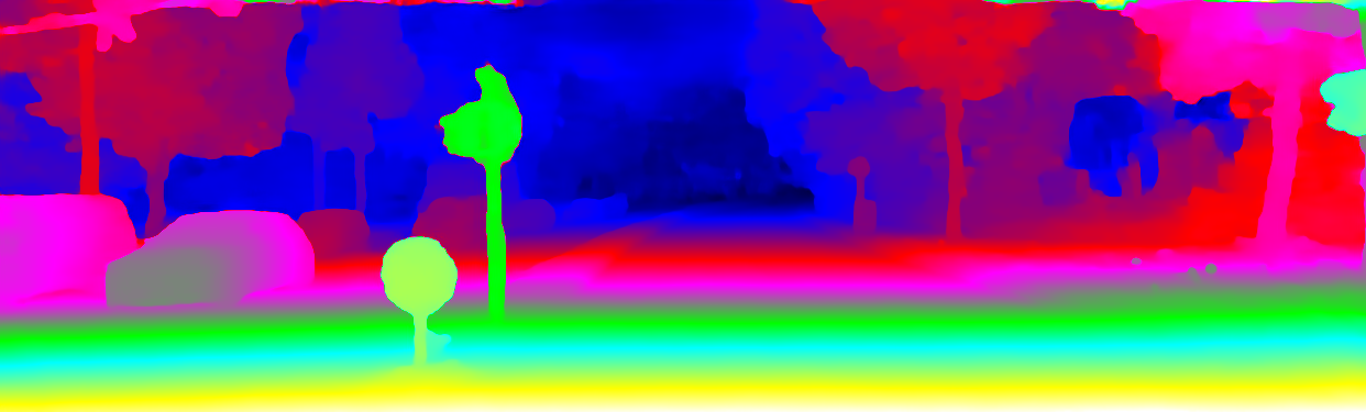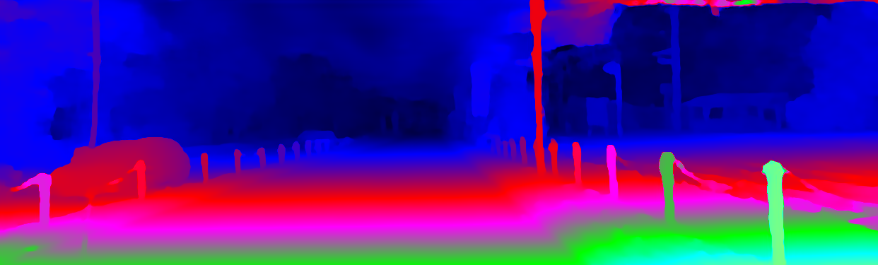This page provides detailed results for the method(s) selected. For the first 20 test images, the percentage of erroneous pixels is depicted in the table. We use the error metric described in Object Scene Flow for Autonomous Vehicles (CVPR 2015), which considers a pixel to be correctly estimated if the disparity or flow end-point error is <3px or <5% (for scene flow this criterion needs to be fulfilled for both disparity maps and the flow map). Underneath, the left input image, the estimated results and the error maps are shown (for disp_0/disp_1/flow/scene_flow, respectively). The error map uses the log-color scale described in Object Scene Flow for Autonomous Vehicles (CVPR 2015), depicting correct estimates (<3px or <5% error) in blue and wrong estimates in red color tones. Dark regions in the error images denote the occluded pixels which fall outside the image boundaries. The false color maps of the results are scaled to the largest ground truth disparity values / flow magnitudes.