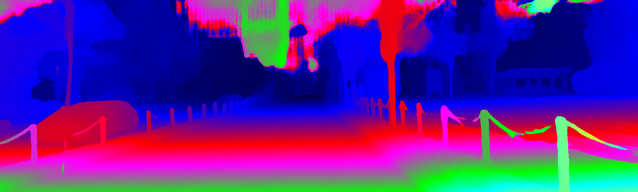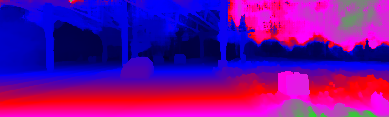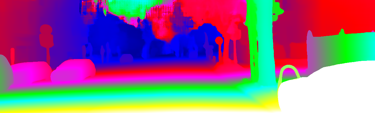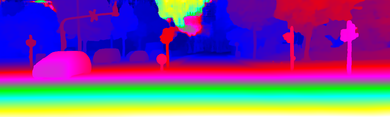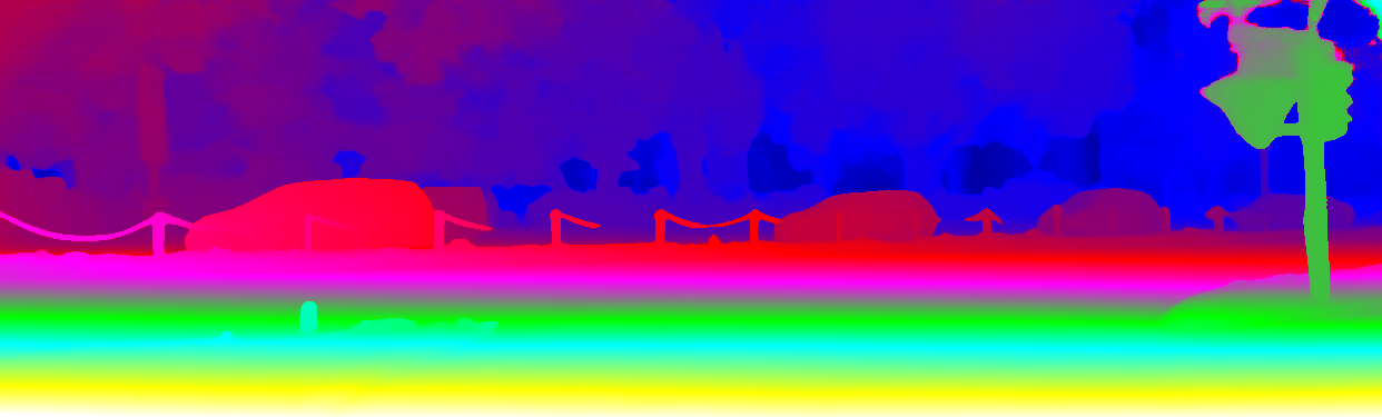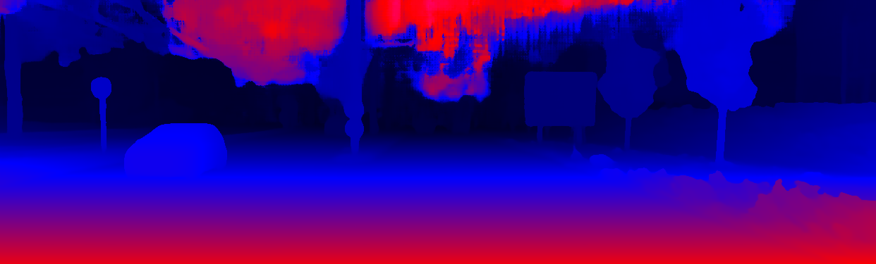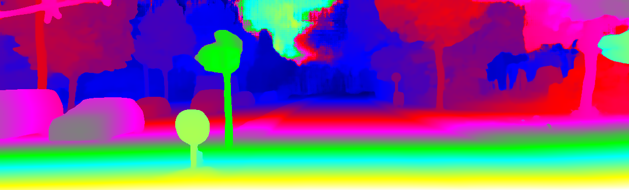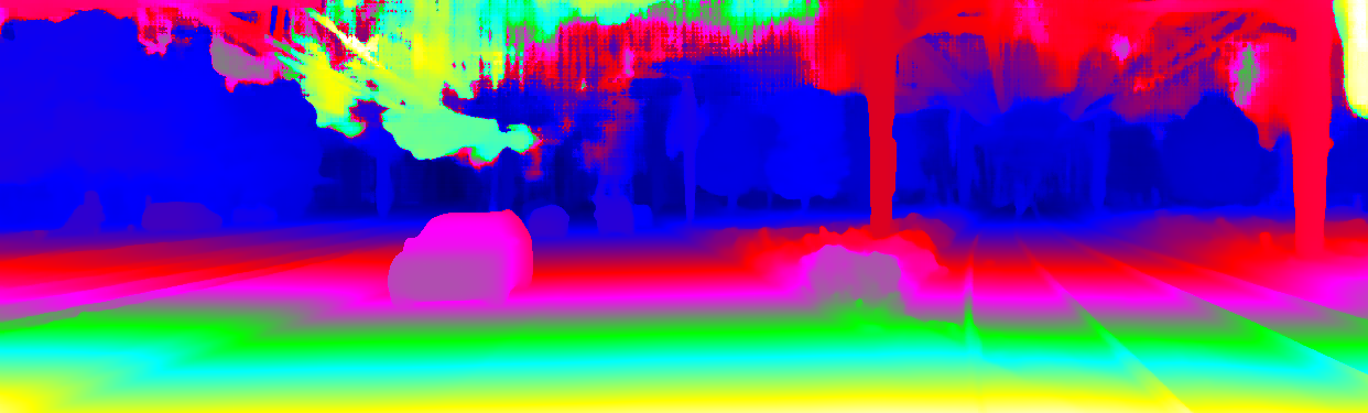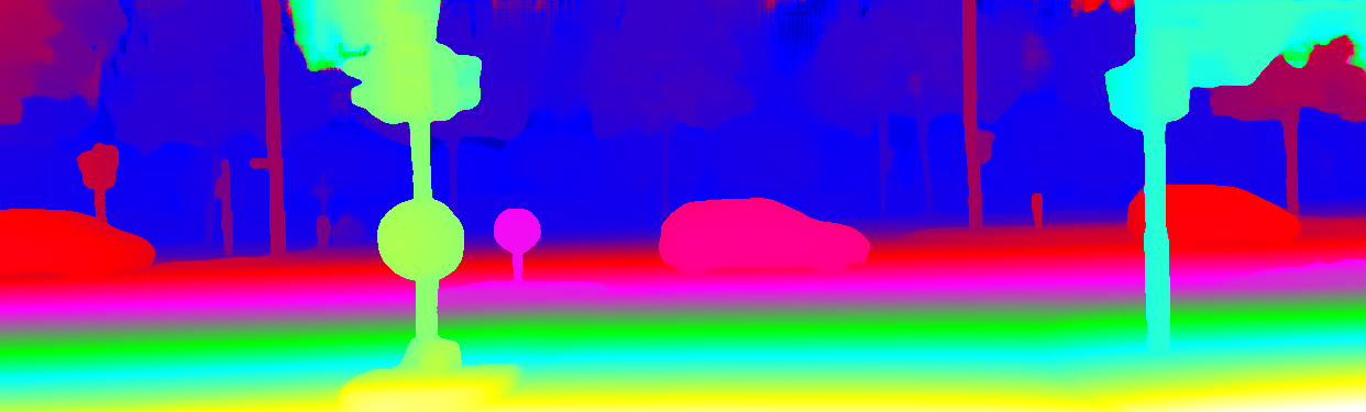 This page provides detailed results for the method(s) selected. For the first 20 test images, the percentage of erroneous pixels is depicted in the table. We use the error metric described in Object Scene Flow for Autonomous Vehicles (CVPR 2015), which considers a pixel to be correctly estimated if the disparity or flow end-point error is <3px or <5% (for scene flow this criterion needs to be fulfilled for both disparity maps and the flow map). Underneath, the left input image, the estimated results and the error maps are shown (for disp_0/disp_1/flow/scene_flow, respectively). The error map uses the log-color scale described in Object Scene Flow for Autonomous Vehicles (CVPR 2015), depicting correct estimates (<3px or <5% error) in blue and wrong estimates in red color tones. Dark regions in the error images denote the occluded pixels which fall outside the image boundaries. The false color maps of the results are scaled to the largest ground truth disparity values / flow magnitudes.