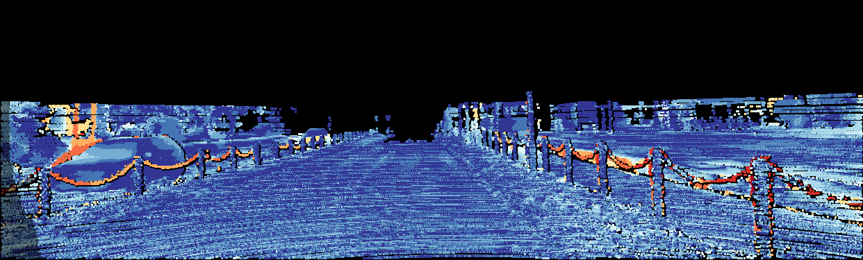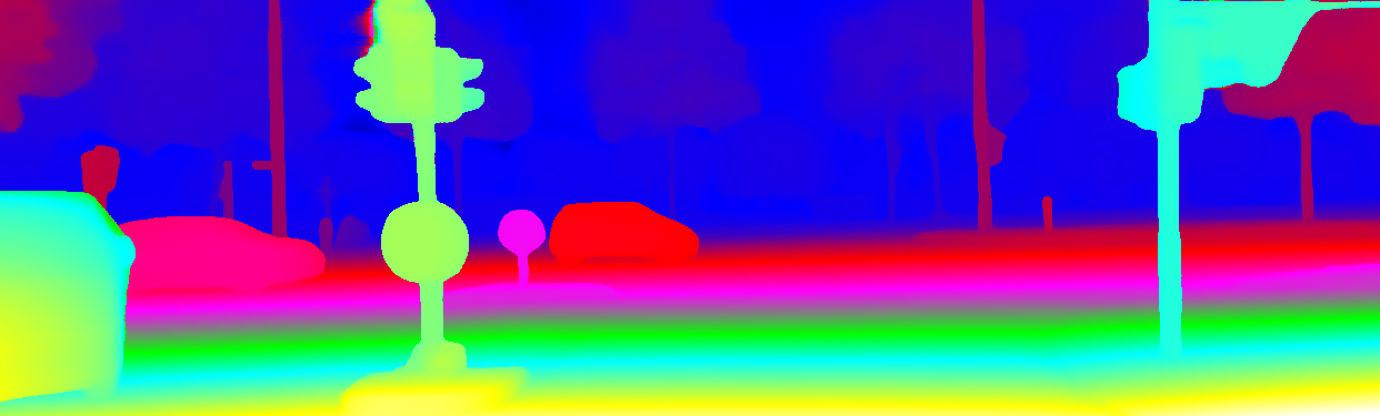 This page provides detailed results for the method(s) selected. For the first 20 test images, the percentage of erroneous pixels is depicted in the table. We use the error metric described in Object Scene Flow for Autonomous Vehicles (CVPR 2015), which considers a pixel to be correctly estimated if the disparity or flow end-point error is <3px or <5% (for scene flow this criterion needs to be fulfilled for both disparity maps and the flow map). Underneath, the left input image, the estimated results and the error maps are shown (for disp_0/disp_1/flow/scene_flow, respectively). The error map uses the log-color scale described in Object Scene Flow for Autonomous Vehicles (CVPR 2015), depicting correct estimates (<3px or <5% error) in blue and wrong estimates in red color tones. Dark regions in the error images denote the occluded pixels which fall outside the image boundaries. The false color maps of the results are scaled to the largest ground truth disparity values / flow magnitudes.