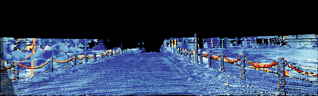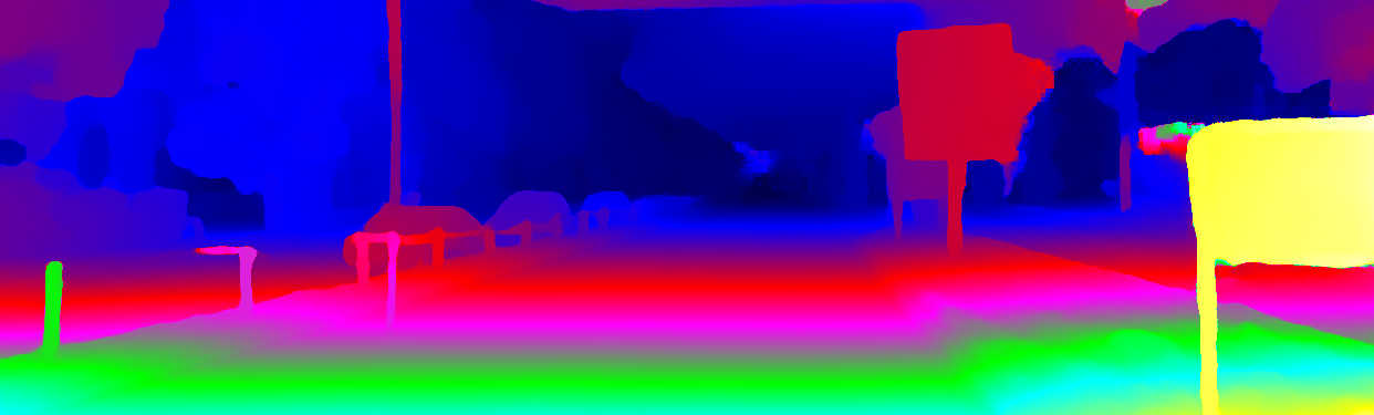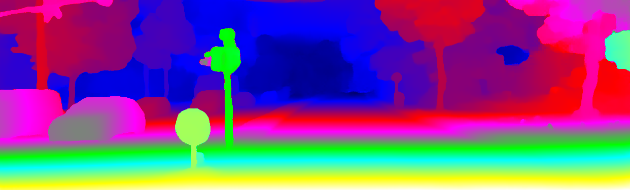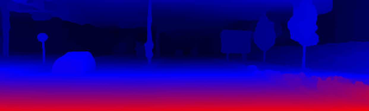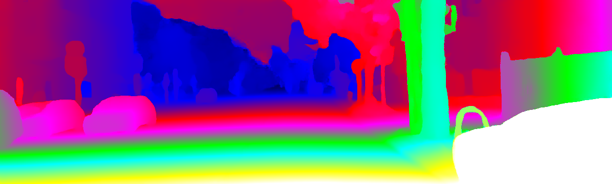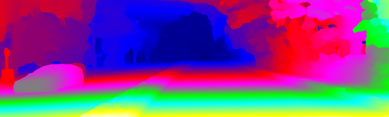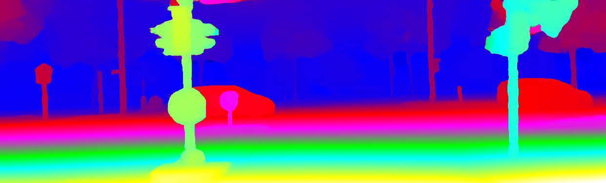 This page provides detailed results for the method(s) selected. For the first 20 test images, the percentage of erroneous pixels is depicted in the table. We use the error metric described in Object Scene Flow for Autonomous Vehicles (CVPR 2015), which considers a pixel to be correctly estimated if the disparity or flow end-point error is <3px or <5% (for scene flow this criterion needs to be fulfilled for both disparity maps and the flow map). Underneath, the left input image, the estimated results and the error maps are shown (for disp_0/disp_1/flow/scene_flow, respectively). The error map uses the log-color scale described in Object Scene Flow for Autonomous Vehicles (CVPR 2015), depicting correct estimates (<3px or <5% error) in blue and wrong estimates in red color tones. Dark regions in the error images denote the occluded pixels which fall outside the image boundaries. The false color maps of the results are scaled to the largest ground truth disparity values / flow magnitudes.