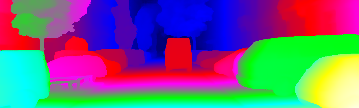 This page provides detailed results for the method(s) selected. For the first 20 test images, the percentage of erroneous pixels is depicted in the table. We use the error metric described in Object Scene Flow for Autonomous Vehicles (CVPR 2015), which considers a pixel to be correctly estimated if the disparity or flow end-point error is <3px or <5% (for scene flow this criterion needs to be fulfilled for both disparity maps and the flow map). Underneath, the left input image, the estimated results and the error maps are shown (for disp_0/disp_1/flow/scene_flow, respectively). The error map uses the log-color scale described in Object Scene Flow for Autonomous Vehicles (CVPR 2015), depicting correct estimates (<3px or <5% error) in blue and wrong estimates in red color tones. Dark regions in the error images denote the occluded pixels which fall outside the image boundaries. The false color maps of the results are scaled to the largest ground truth disparity values / flow magnitudes.