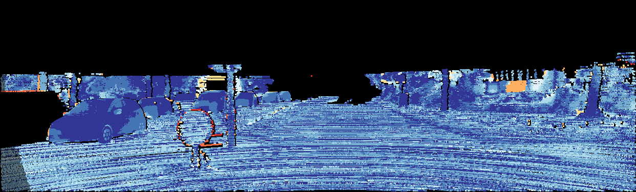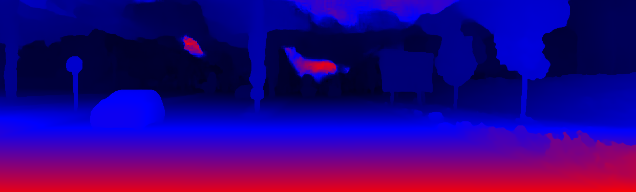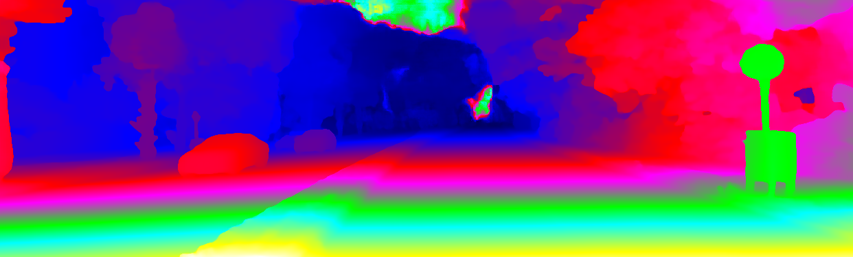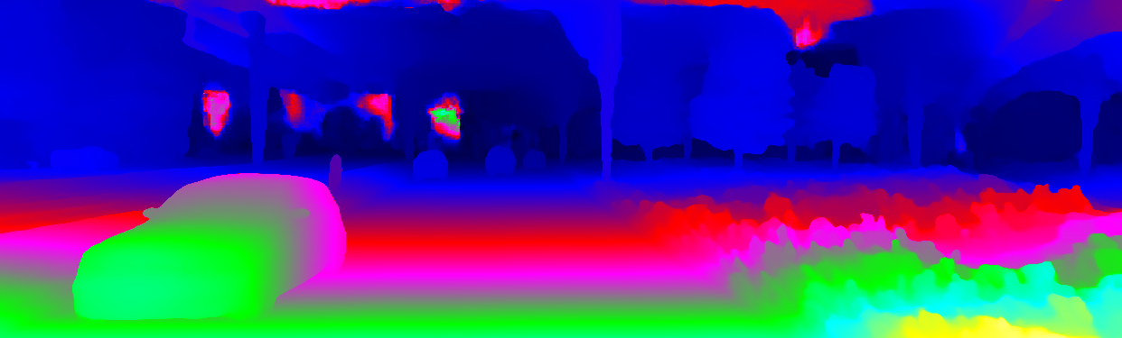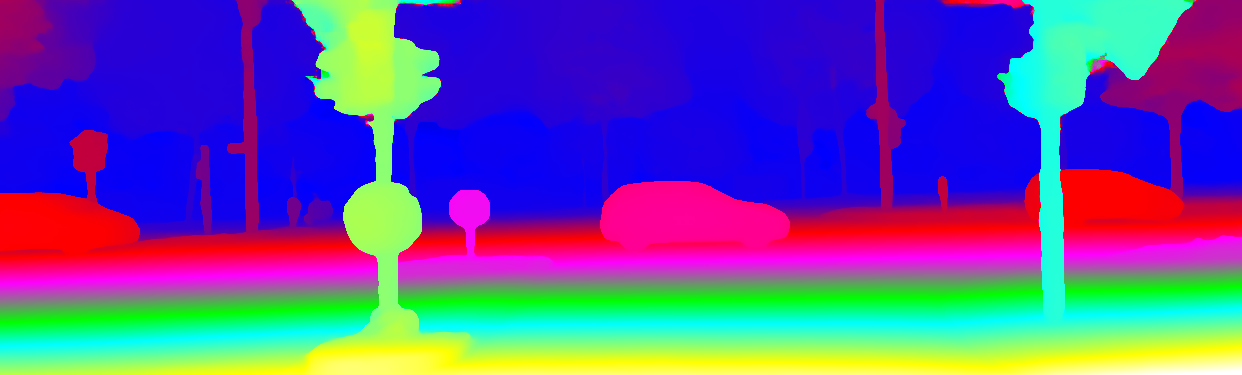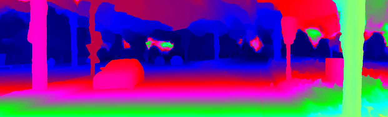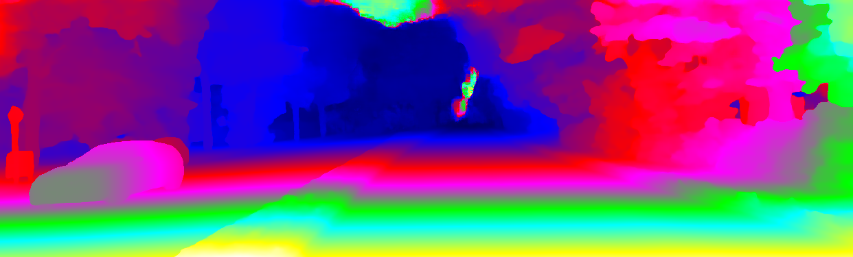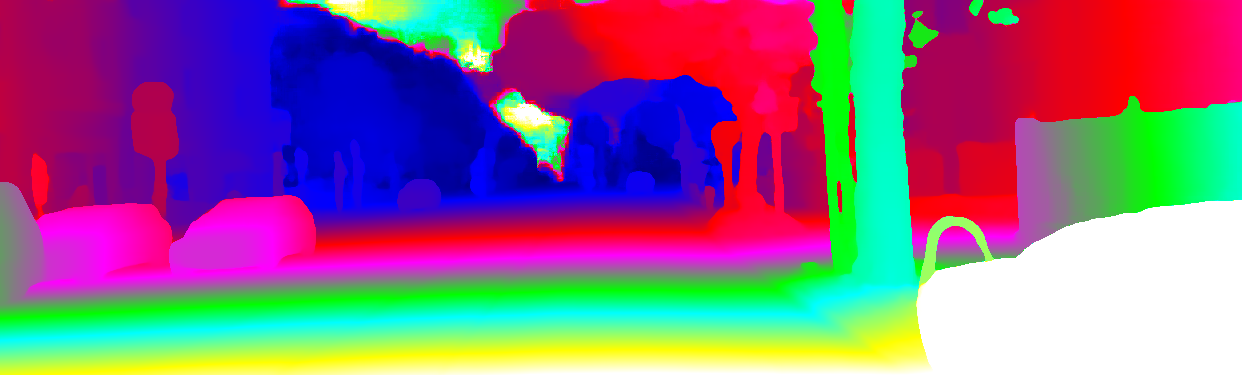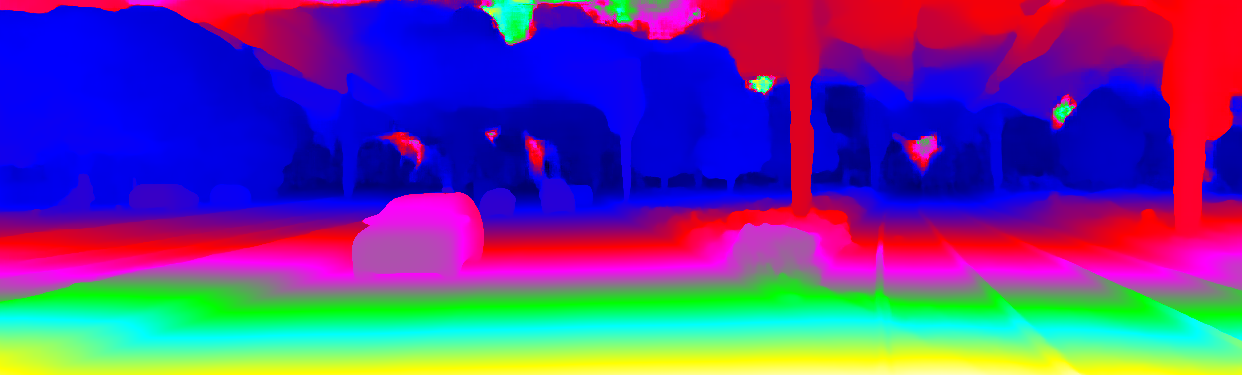 This page provides detailed results for the method(s) selected. For the first 20 test images, the percentage of erroneous pixels is depicted in the table. We use the error metric described in Object Scene Flow for Autonomous Vehicles (CVPR 2015), which considers a pixel to be correctly estimated if the disparity or flow end-point error is <3px or <5% (for scene flow this criterion needs to be fulfilled for both disparity maps and the flow map). Underneath, the left input image, the estimated results and the error maps are shown (for disp_0/disp_1/flow/scene_flow, respectively). The error map uses the log-color scale described in Object Scene Flow for Autonomous Vehicles (CVPR 2015), depicting correct estimates (<3px or <5% error) in blue and wrong estimates in red color tones. Dark regions in the error images denote the occluded pixels which fall outside the image boundaries. The false color maps of the results are scaled to the largest ground truth disparity values / flow magnitudes.