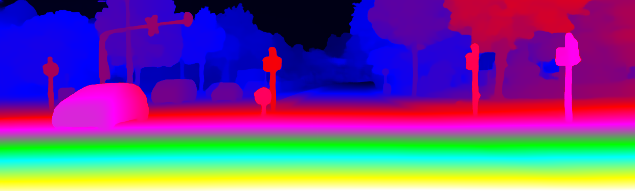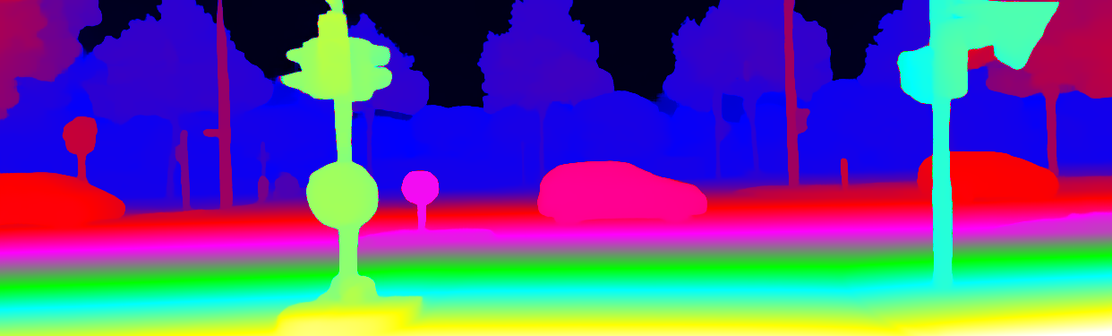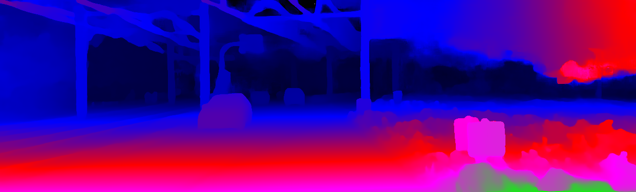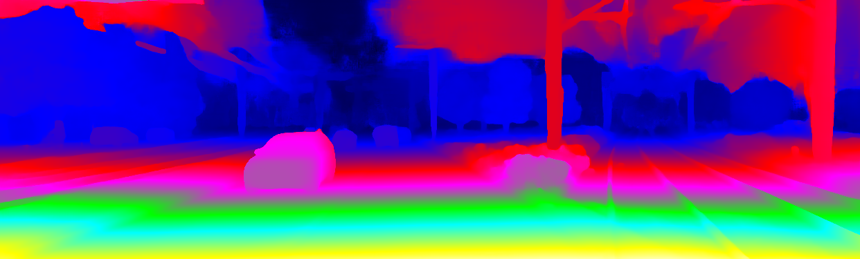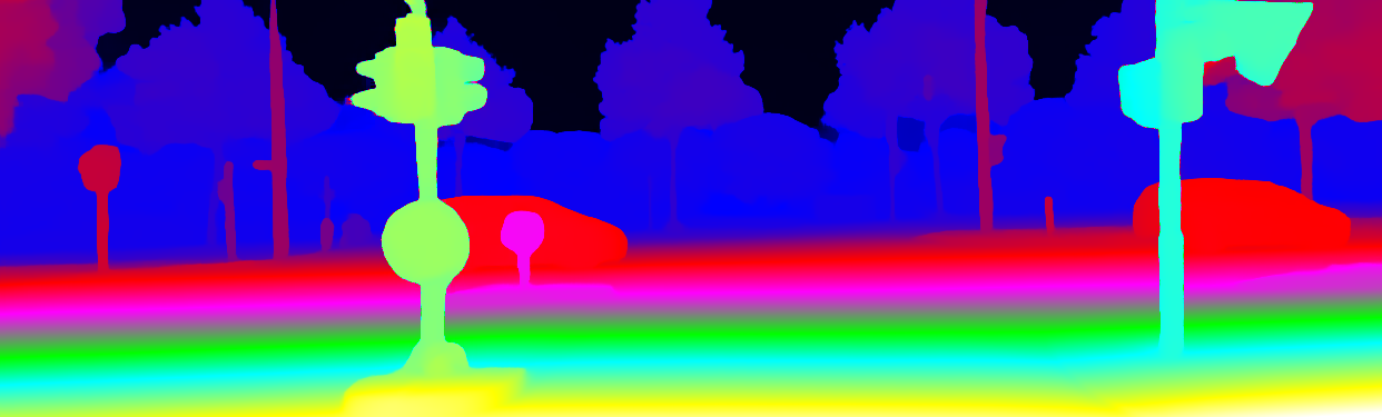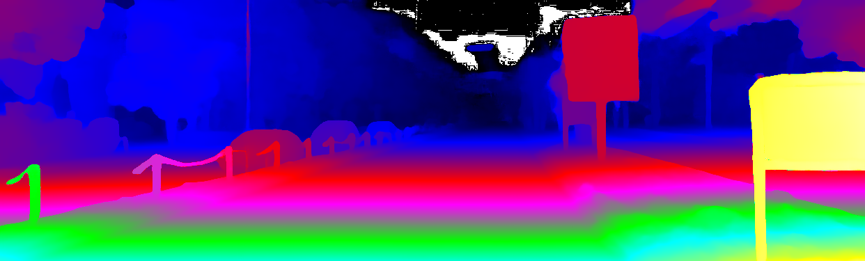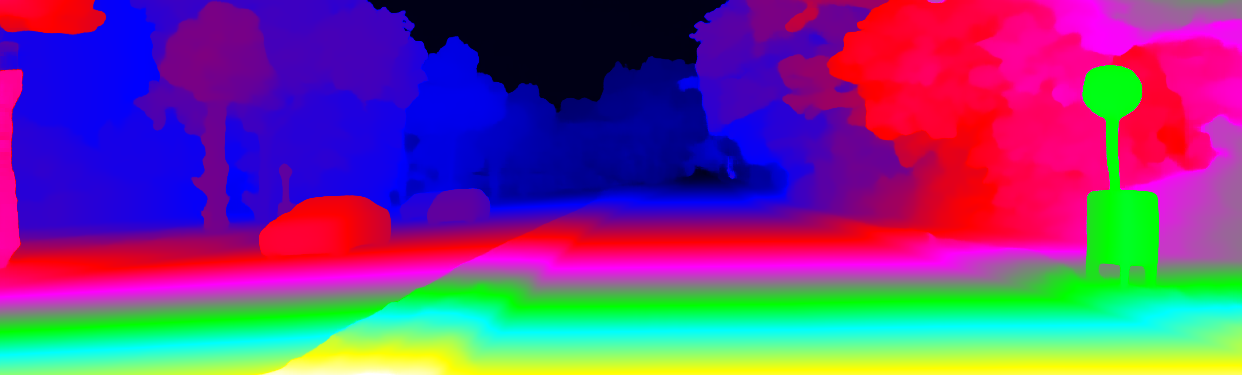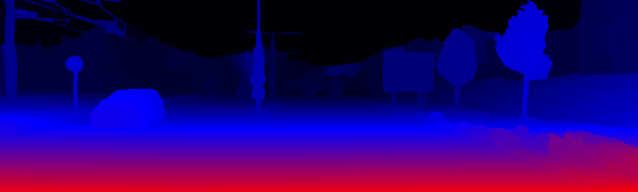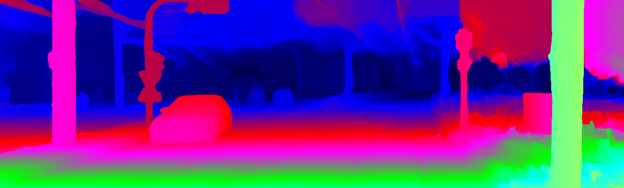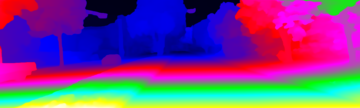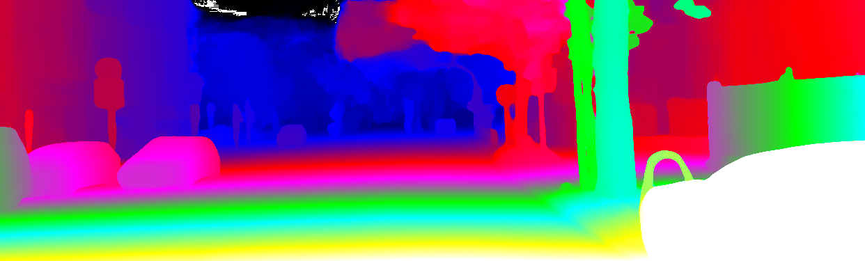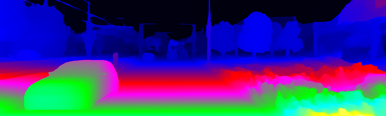 This page provides detailed results for the method(s) selected. For the first 20 test images, the percentage of erroneous pixels is depicted in the table. We use the error metric described in Object Scene Flow for Autonomous Vehicles (CVPR 2015), which considers a pixel to be correctly estimated if the disparity or flow end-point error is <3px or <5% (for scene flow this criterion needs to be fulfilled for both disparity maps and the flow map). Underneath, the left input image, the estimated results and the error maps are shown (for disp_0/disp_1/flow/scene_flow, respectively). The error map uses the log-color scale described in Object Scene Flow for Autonomous Vehicles (CVPR 2015), depicting correct estimates (<3px or <5% error) in blue and wrong estimates in red color tones. Dark regions in the error images denote the occluded pixels which fall outside the image boundaries. The false color maps of the results are scaled to the largest ground truth disparity values / flow magnitudes.