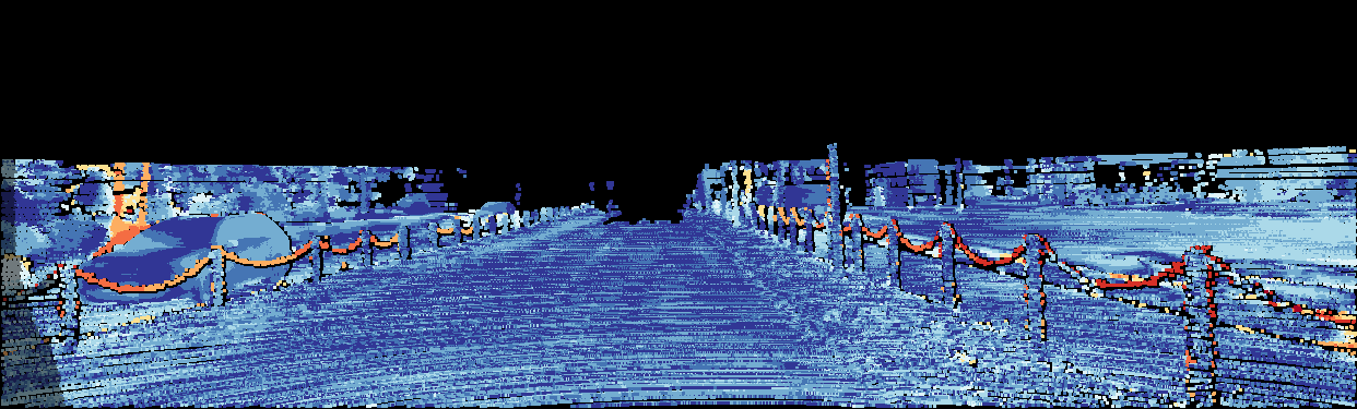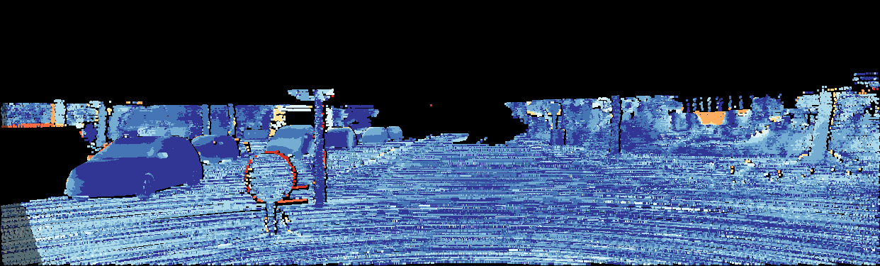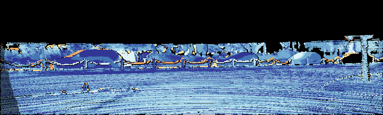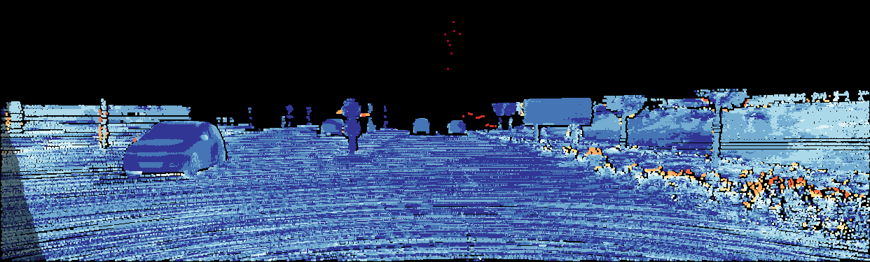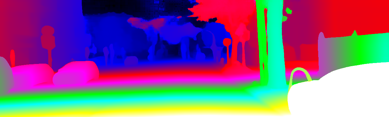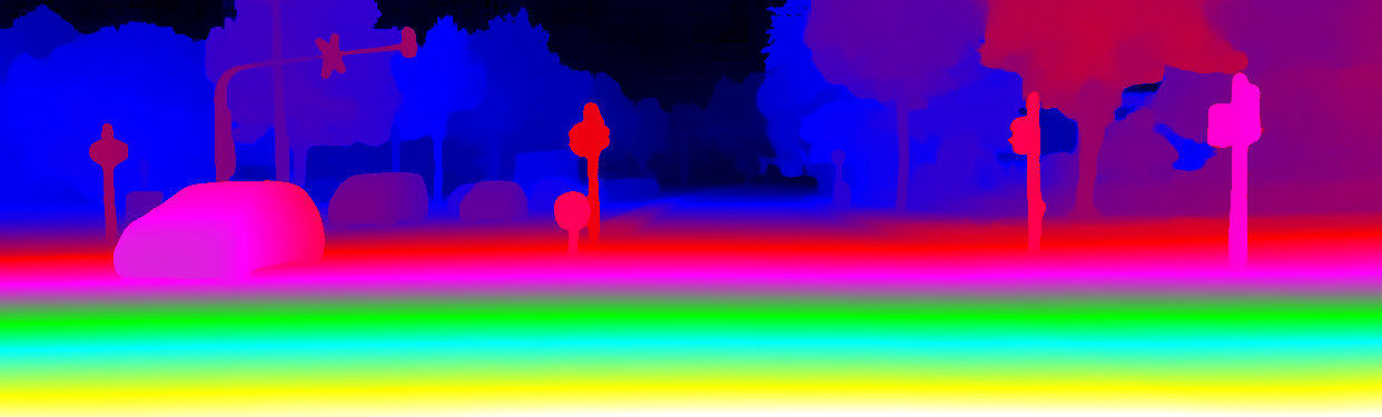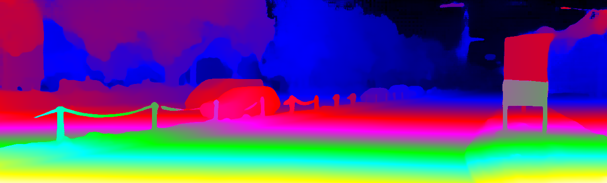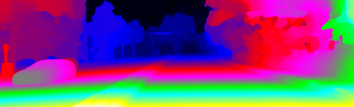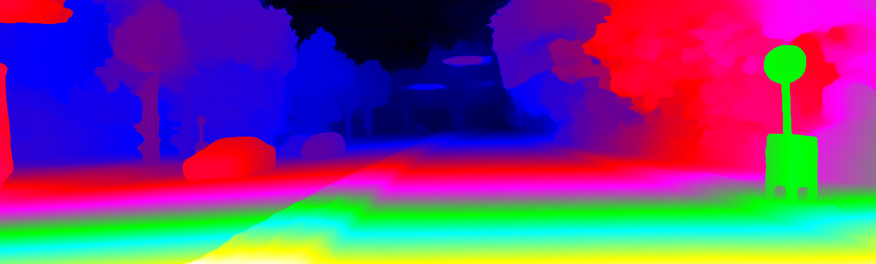 This page provides detailed results for the method(s) selected. For the first 20 test images, the percentage of erroneous pixels is depicted in the table. We use the error metric described in Object Scene Flow for Autonomous Vehicles (CVPR 2015), which considers a pixel to be correctly estimated if the disparity or flow end-point error is <3px or <5% (for scene flow this criterion needs to be fulfilled for both disparity maps and the flow map). Underneath, the left input image, the estimated results and the error maps are shown (for disp_0/disp_1/flow/scene_flow, respectively). The error map uses the log-color scale described in Object Scene Flow for Autonomous Vehicles (CVPR 2015), depicting correct estimates (<3px or <5% error) in blue and wrong estimates in red color tones. Dark regions in the error images denote the occluded pixels which fall outside the image boundaries. The false color maps of the results are scaled to the largest ground truth disparity values / flow magnitudes.
