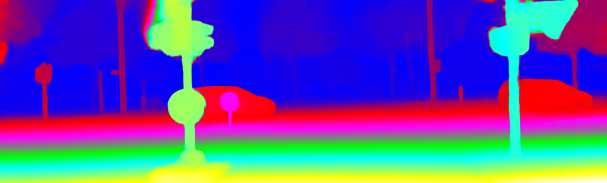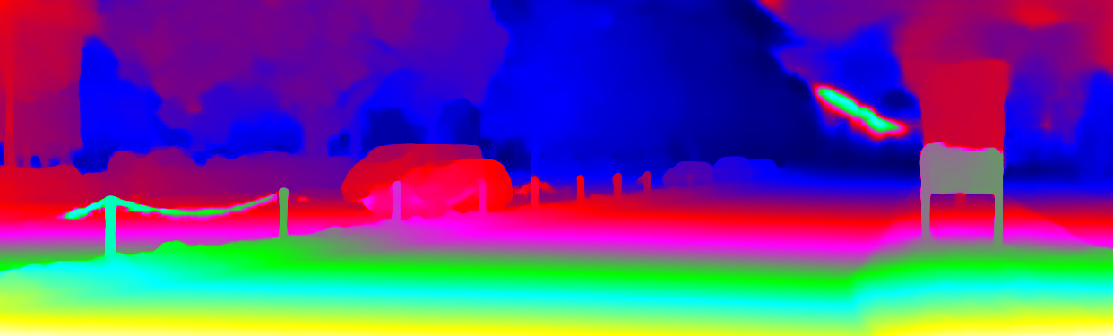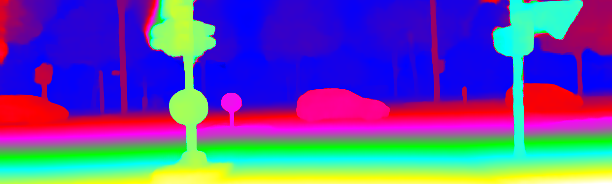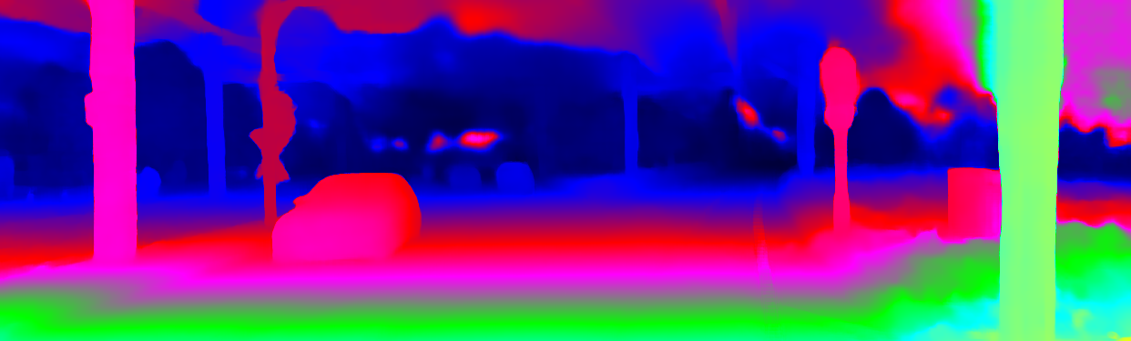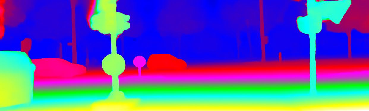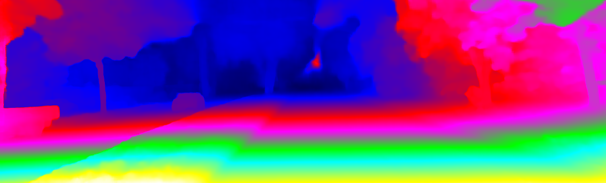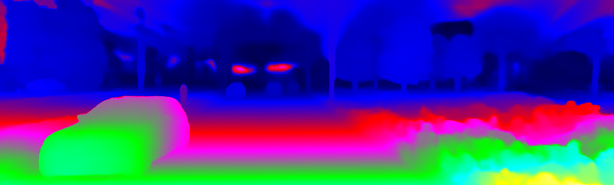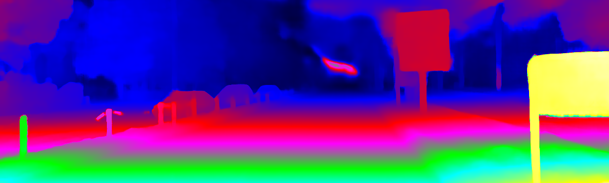 This page provides detailed results for the method(s) selected. For the first 20 test images, the percentage of erroneous pixels is depicted in the table. We use the error metric described in Object Scene Flow for Autonomous Vehicles (CVPR 2015), which considers a pixel to be correctly estimated if the disparity or flow end-point error is <3px or <5% (for scene flow this criterion needs to be fulfilled for both disparity maps and the flow map). Underneath, the left input image, the estimated results and the error maps are shown (for disp_0/disp_1/flow/scene_flow, respectively). The error map uses the log-color scale described in Object Scene Flow for Autonomous Vehicles (CVPR 2015), depicting correct estimates (<3px or <5% error) in blue and wrong estimates in red color tones. Dark regions in the error images denote the occluded pixels which fall outside the image boundaries. The false color maps of the results are scaled to the largest ground truth disparity values / flow magnitudes.