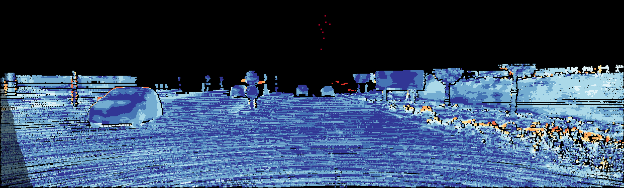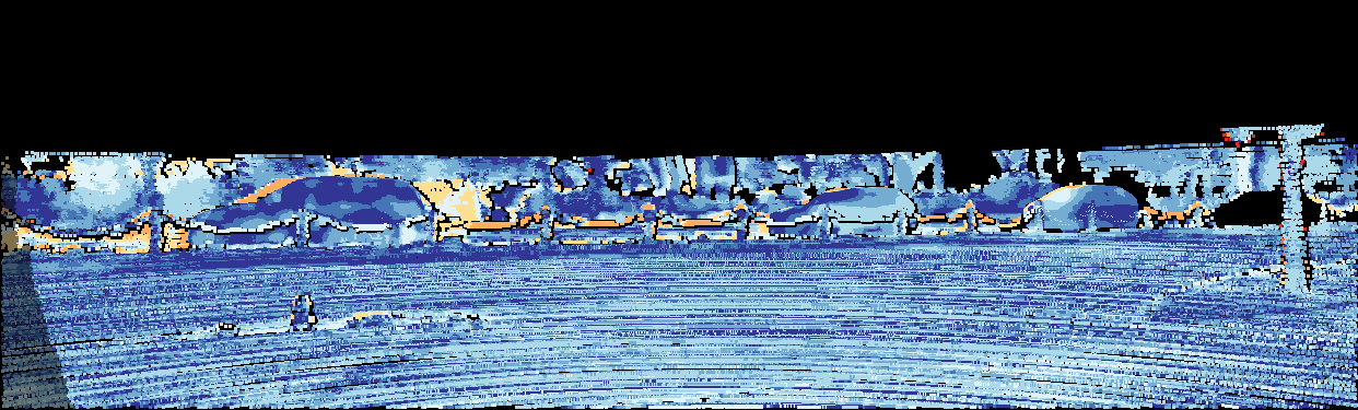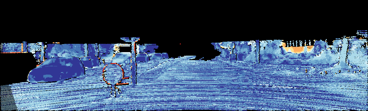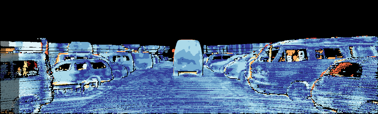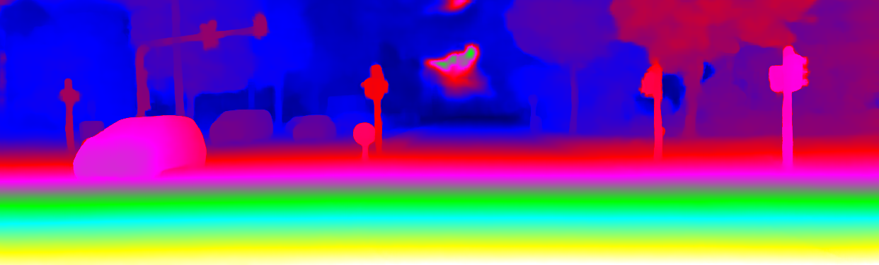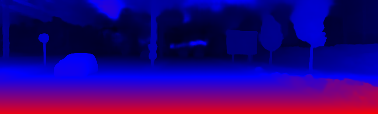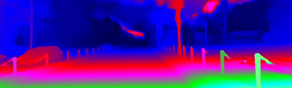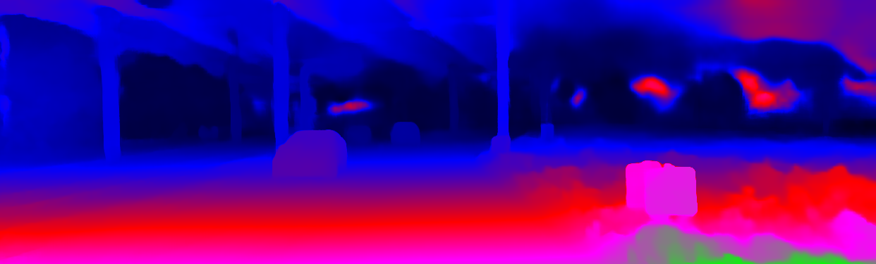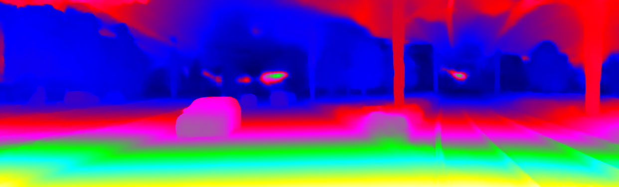 This page provides detailed results for the method(s) selected. For the first 20 test images, the percentage of erroneous pixels is depicted in the table. We use the error metric described in Object Scene Flow for Autonomous Vehicles (CVPR 2015), which considers a pixel to be correctly estimated if the disparity or flow end-point error is <3px or <5% (for scene flow this criterion needs to be fulfilled for both disparity maps and the flow map). Underneath, the left input image, the estimated results and the error maps are shown (for disp_0/disp_1/flow/scene_flow, respectively). The error map uses the log-color scale described in Object Scene Flow for Autonomous Vehicles (CVPR 2015), depicting correct estimates (<3px or <5% error) in blue and wrong estimates in red color tones. Dark regions in the error images denote the occluded pixels which fall outside the image boundaries. The false color maps of the results are scaled to the largest ground truth disparity values / flow magnitudes.