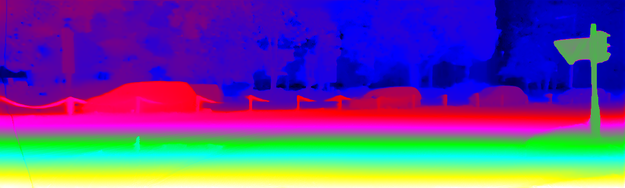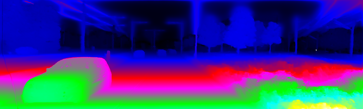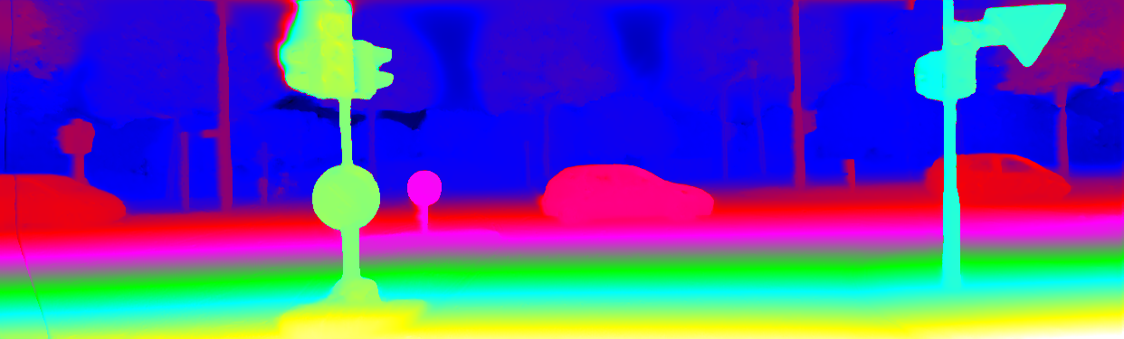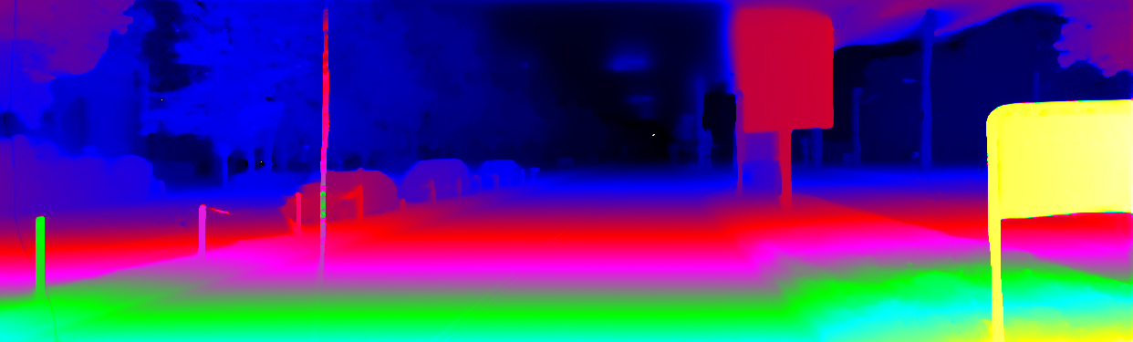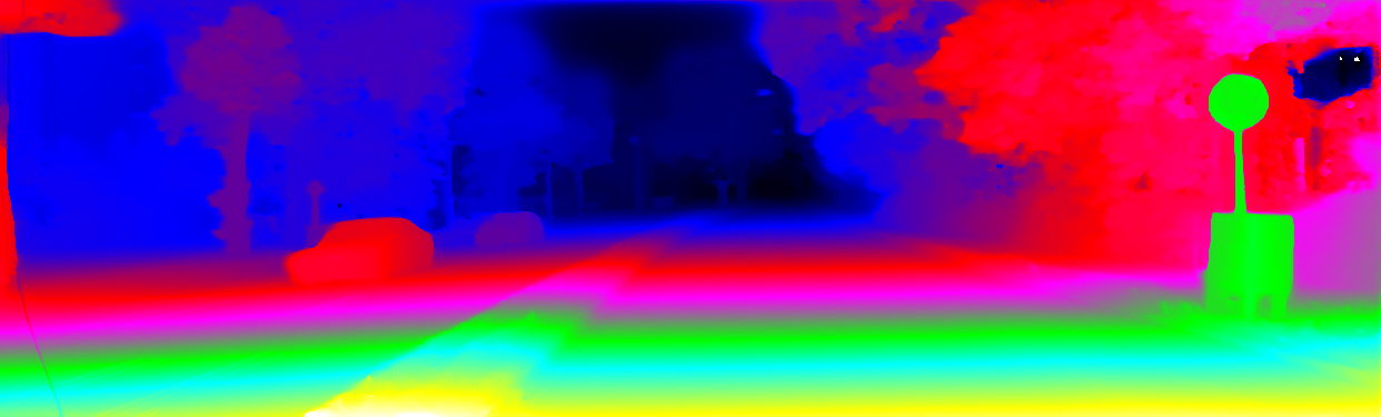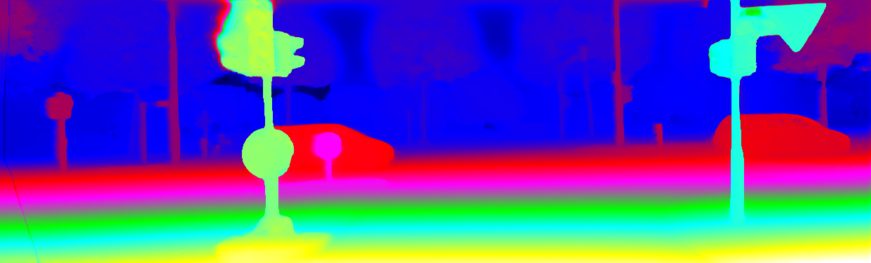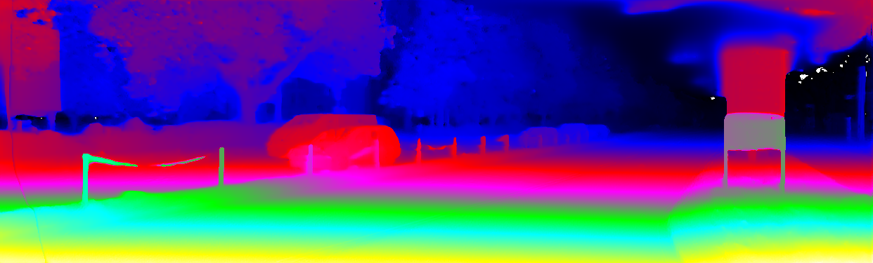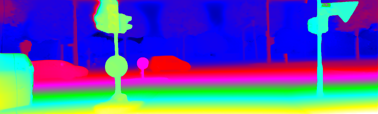 This page provides detailed results for the method(s) selected. For the first 20 test images, the percentage of erroneous pixels is depicted in the table. We use the error metric described in Object Scene Flow for Autonomous Vehicles (CVPR 2015), which considers a pixel to be correctly estimated if the disparity or flow end-point error is <3px or <5% (for scene flow this criterion needs to be fulfilled for both disparity maps and the flow map). Underneath, the left input image, the estimated results and the error maps are shown (for disp_0/disp_1/flow/scene_flow, respectively). The error map uses the log-color scale described in Object Scene Flow for Autonomous Vehicles (CVPR 2015), depicting correct estimates (<3px or <5% error) in blue and wrong estimates in red color tones. Dark regions in the error images denote the occluded pixels which fall outside the image boundaries. The false color maps of the results are scaled to the largest ground truth disparity values / flow magnitudes.