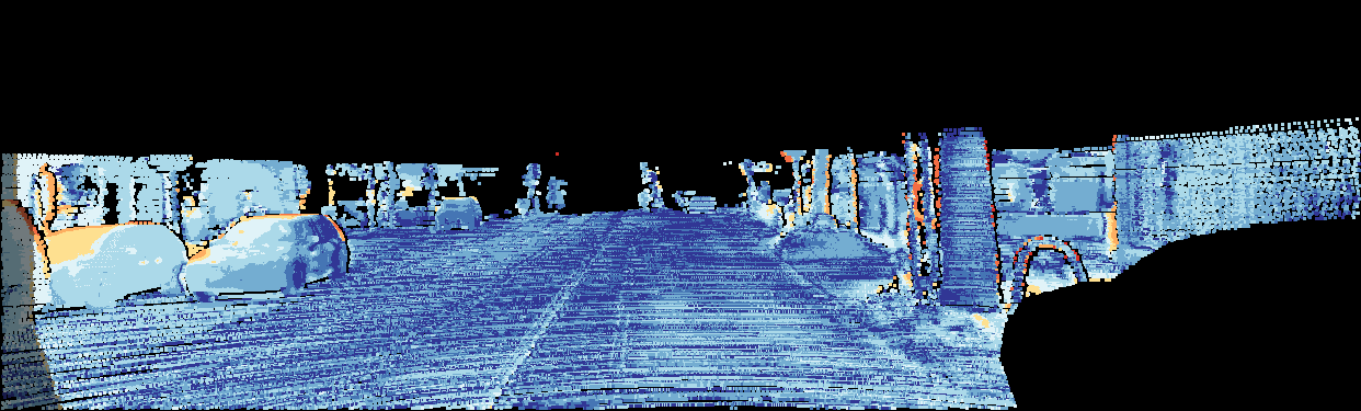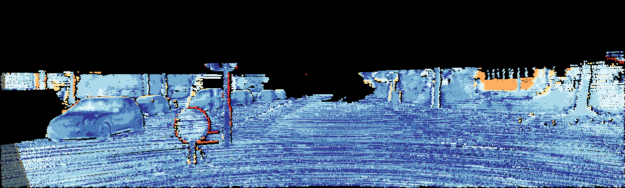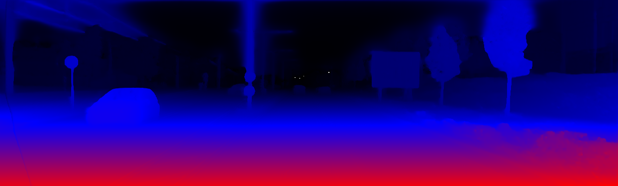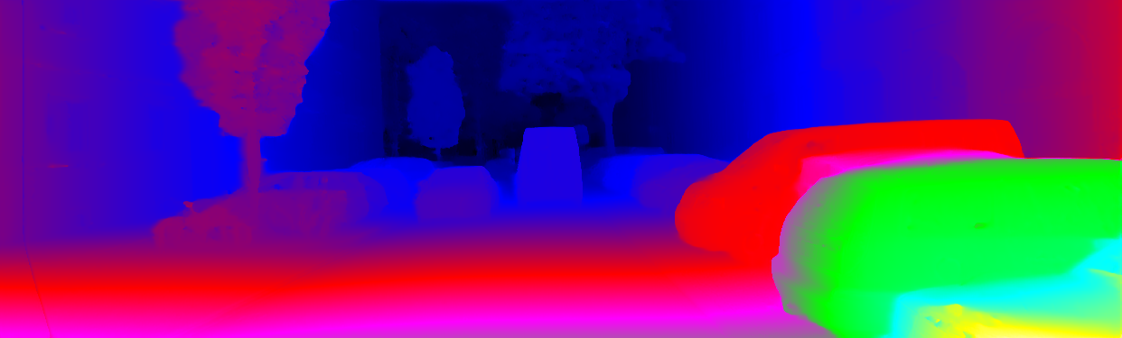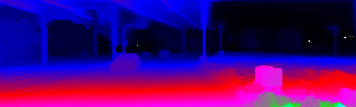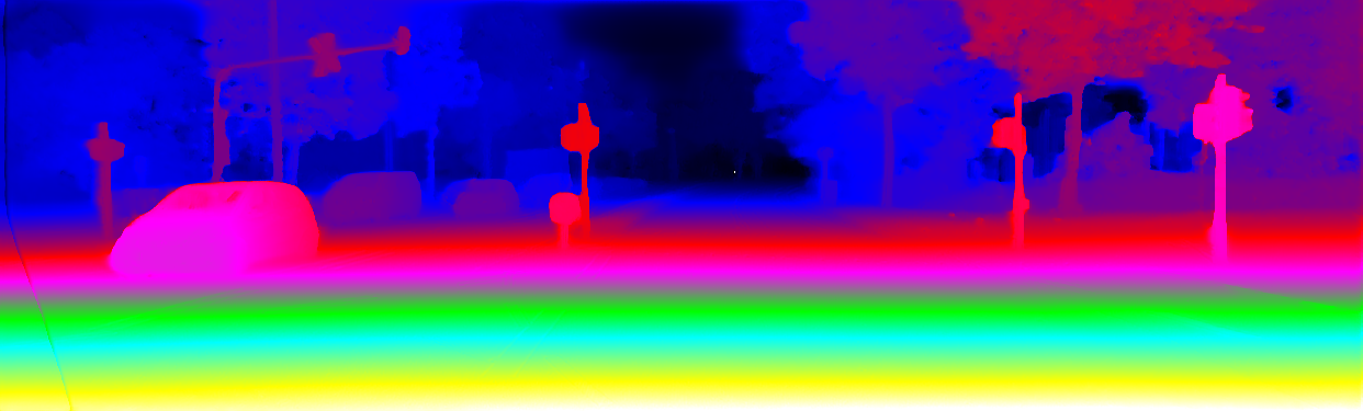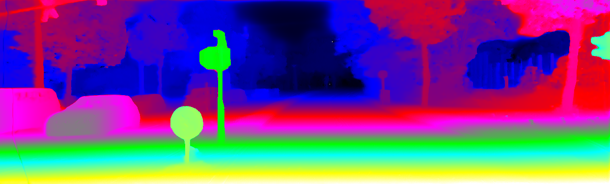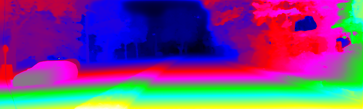 This page provides detailed results for the method(s) selected. For the first 20 test images, the percentage of erroneous pixels is depicted in the table. We use the error metric described in Object Scene Flow for Autonomous Vehicles (CVPR 2015), which considers a pixel to be correctly estimated if the disparity or flow end-point error is <3px or <5% (for scene flow this criterion needs to be fulfilled for both disparity maps and the flow map). Underneath, the left input image, the estimated results and the error maps are shown (for disp_0/disp_1/flow/scene_flow, respectively). The error map uses the log-color scale described in Object Scene Flow for Autonomous Vehicles (CVPR 2015), depicting correct estimates (<3px or <5% error) in blue and wrong estimates in red color tones. Dark regions in the error images denote the occluded pixels which fall outside the image boundaries. The false color maps of the results are scaled to the largest ground truth disparity values / flow magnitudes.