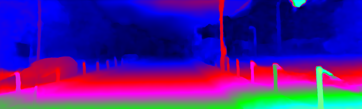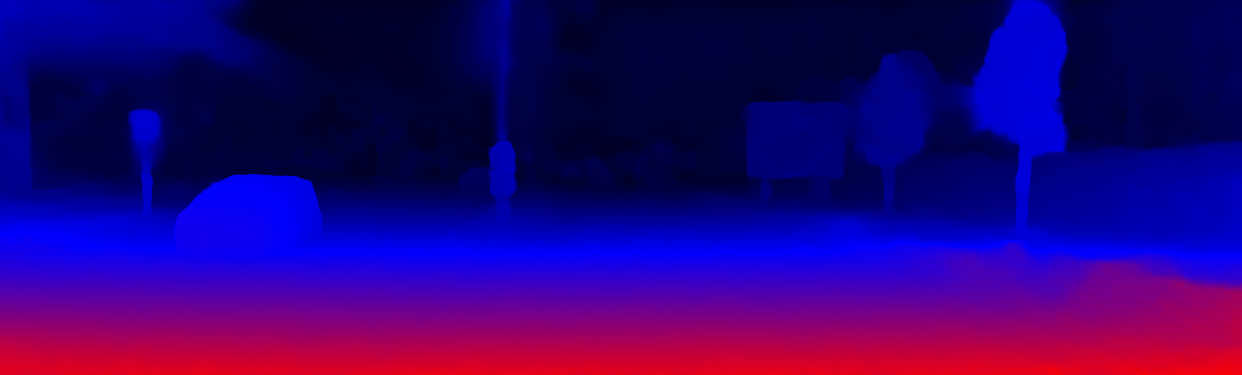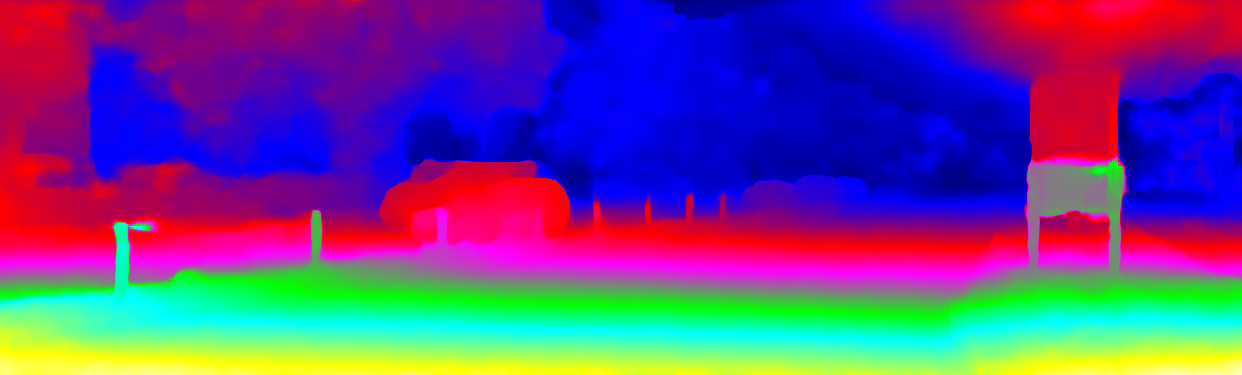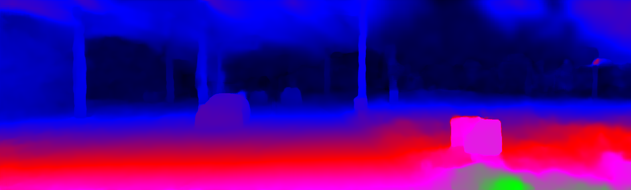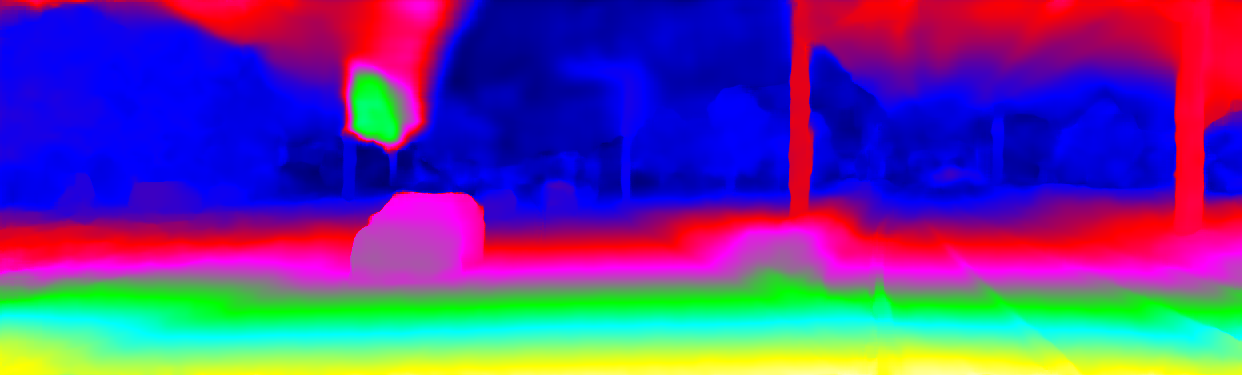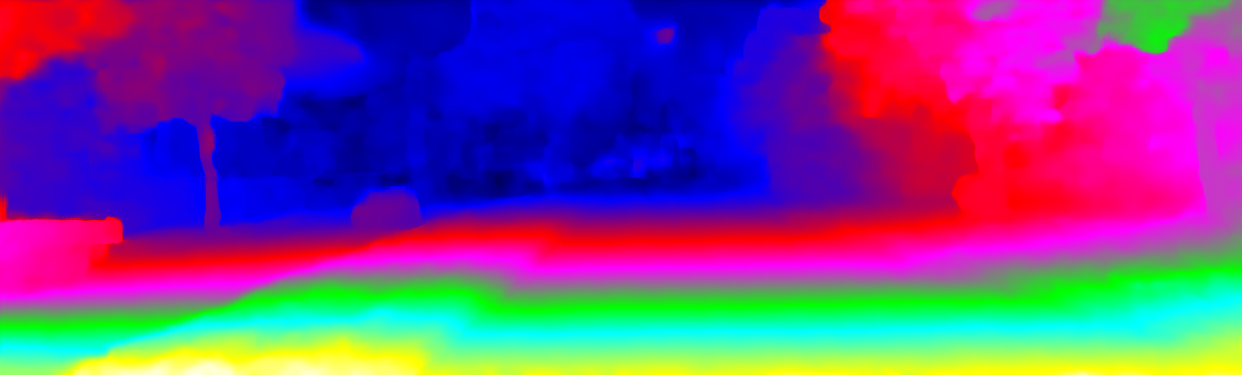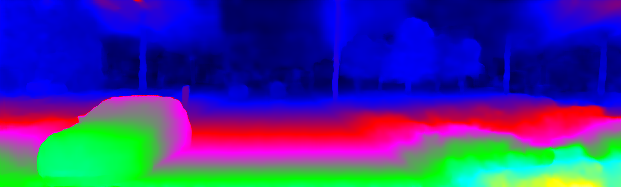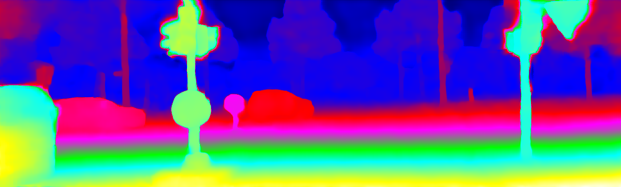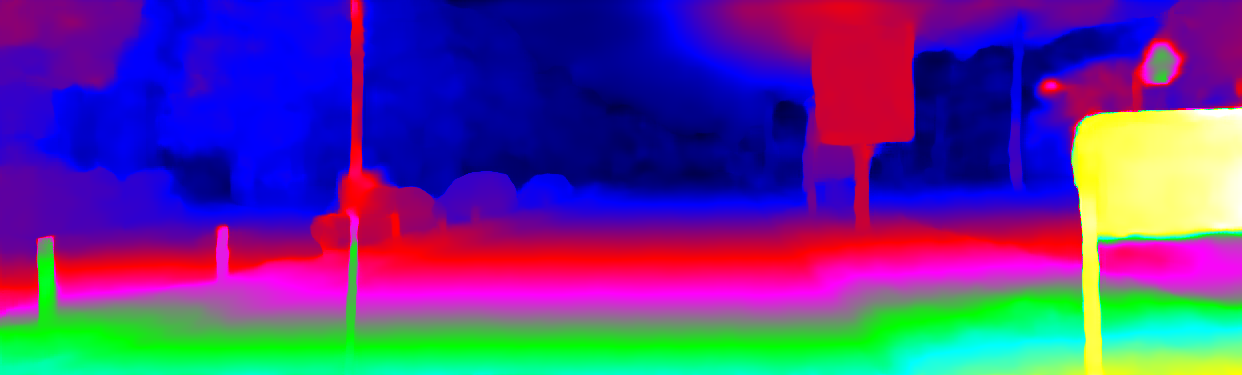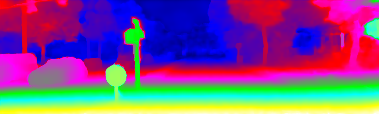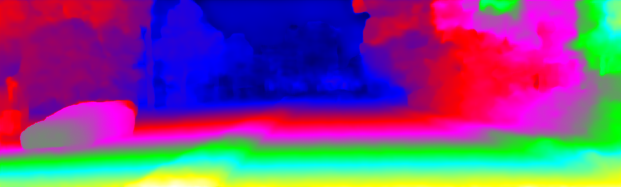 This page provides detailed results for the method(s) selected. For the first 20 test images, the percentage of erroneous pixels is depicted in the table. We use the error metric described in Object Scene Flow for Autonomous Vehicles (CVPR 2015), which considers a pixel to be correctly estimated if the disparity or flow end-point error is <3px or <5% (for scene flow this criterion needs to be fulfilled for both disparity maps and the flow map). Underneath, the left input image, the estimated results and the error maps are shown (for disp_0/disp_1/flow/scene_flow, respectively). The error map uses the log-color scale described in Object Scene Flow for Autonomous Vehicles (CVPR 2015), depicting correct estimates (<3px or <5% error) in blue and wrong estimates in red color tones. Dark regions in the error images denote the occluded pixels which fall outside the image boundaries. The false color maps of the results are scaled to the largest ground truth disparity values / flow magnitudes.