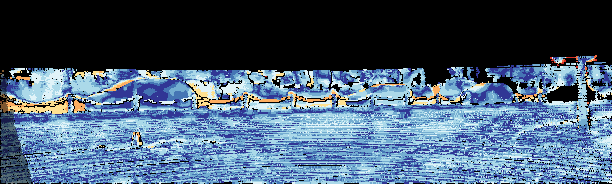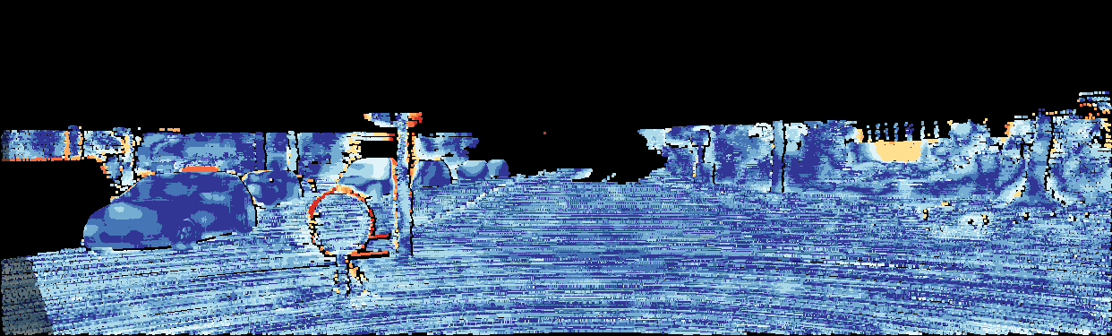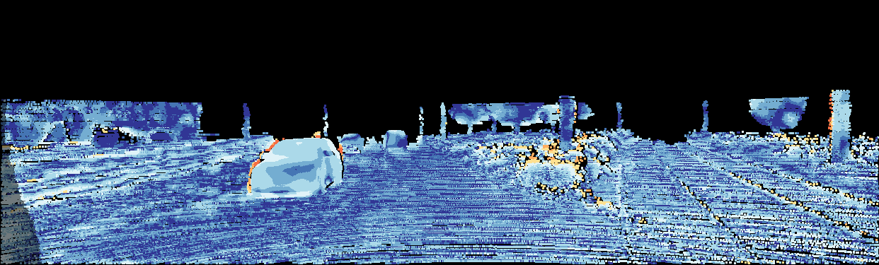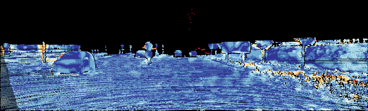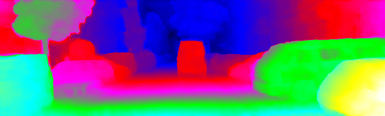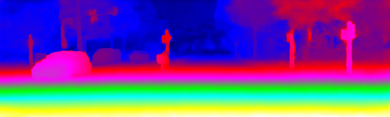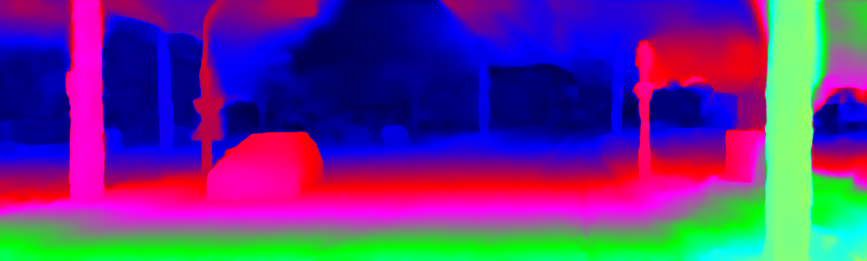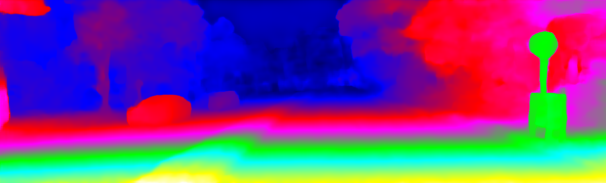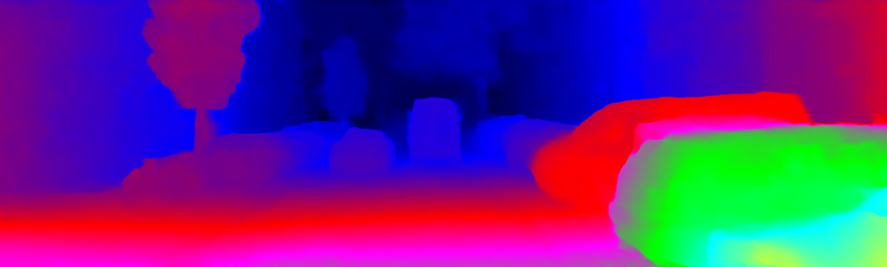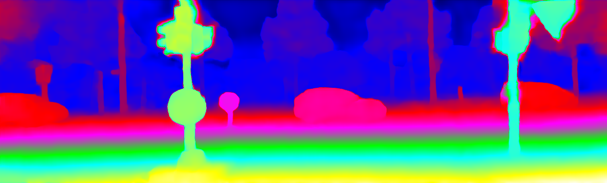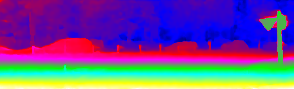 This page provides detailed results for the method(s) selected. For the first 20 test images, the percentage of erroneous pixels is depicted in the table. We use the error metric described in Object Scene Flow for Autonomous Vehicles (CVPR 2015), which considers a pixel to be correctly estimated if the disparity or flow end-point error is <3px or <5% (for scene flow this criterion needs to be fulfilled for both disparity maps and the flow map). Underneath, the left input image, the estimated results and the error maps are shown (for disp_0/disp_1/flow/scene_flow, respectively). The error map uses the log-color scale described in Object Scene Flow for Autonomous Vehicles (CVPR 2015), depicting correct estimates (<3px or <5% error) in blue and wrong estimates in red color tones. Dark regions in the error images denote the occluded pixels which fall outside the image boundaries. The false color maps of the results are scaled to the largest ground truth disparity values / flow magnitudes.