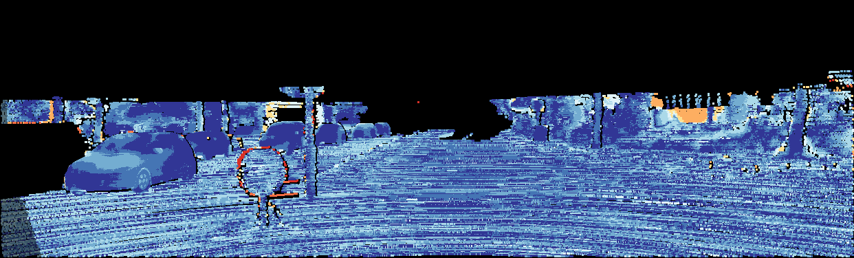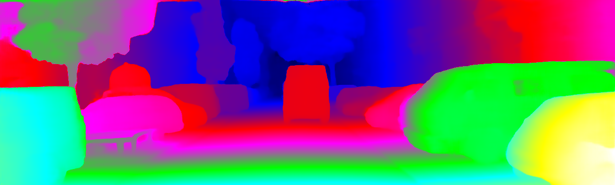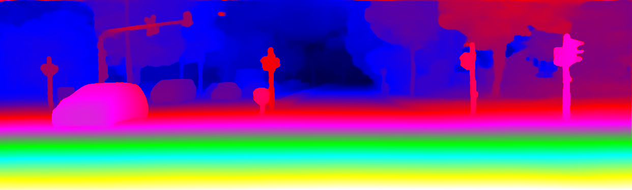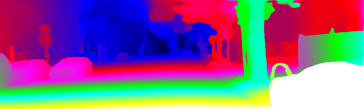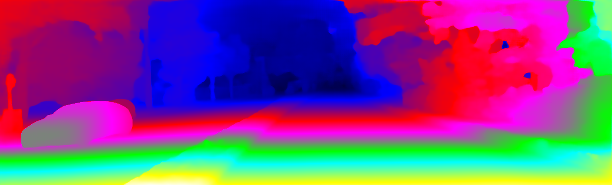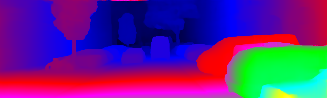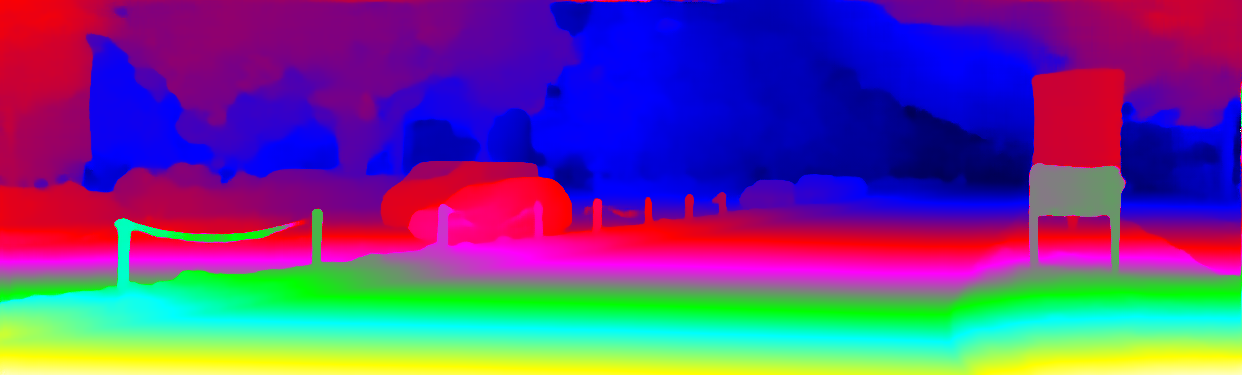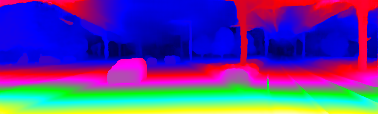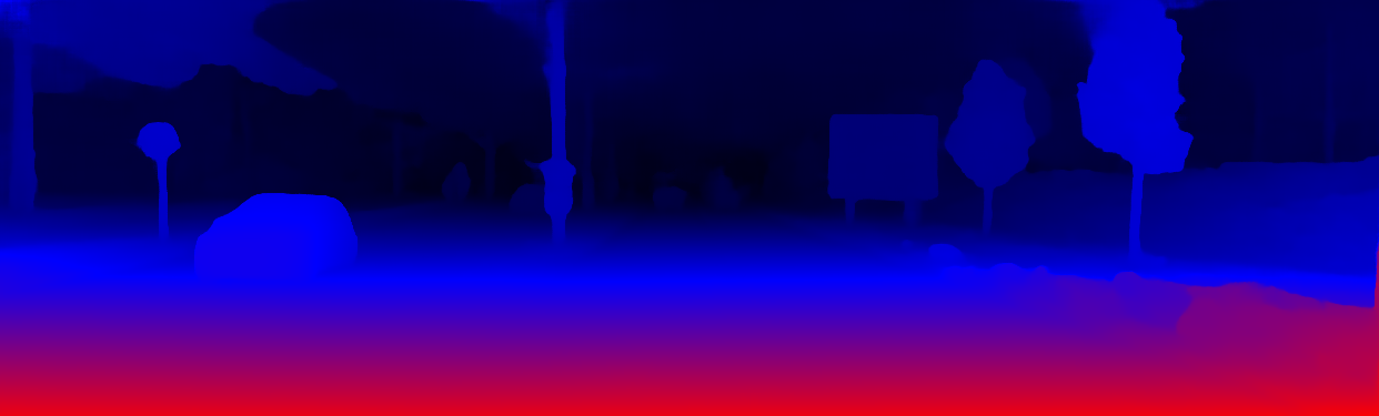 This page provides detailed results for the method(s) selected. For the first 20 test images, the percentage of erroneous pixels is depicted in the table. We use the error metric described in Object Scene Flow for Autonomous Vehicles (CVPR 2015), which considers a pixel to be correctly estimated if the disparity or flow end-point error is <3px or <5% (for scene flow this criterion needs to be fulfilled for both disparity maps and the flow map). Underneath, the left input image, the estimated results and the error maps are shown (for disp_0/disp_1/flow/scene_flow, respectively). The error map uses the log-color scale described in Object Scene Flow for Autonomous Vehicles (CVPR 2015), depicting correct estimates (<3px or <5% error) in blue and wrong estimates in red color tones. Dark regions in the error images denote the occluded pixels which fall outside the image boundaries. The false color maps of the results are scaled to the largest ground truth disparity values / flow magnitudes.