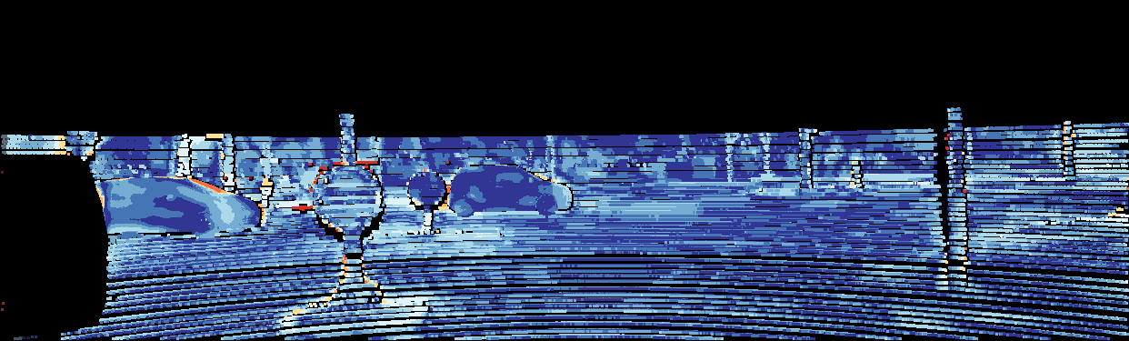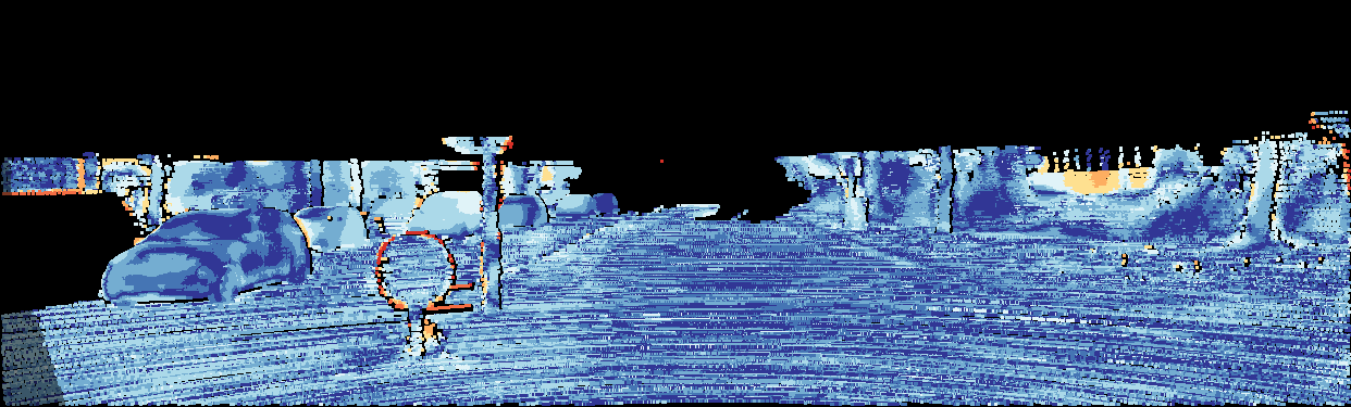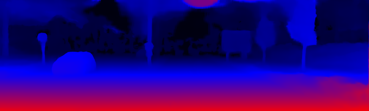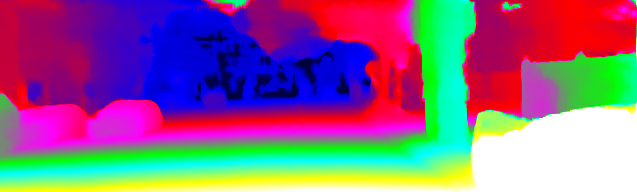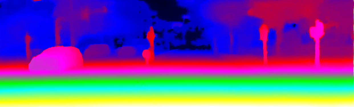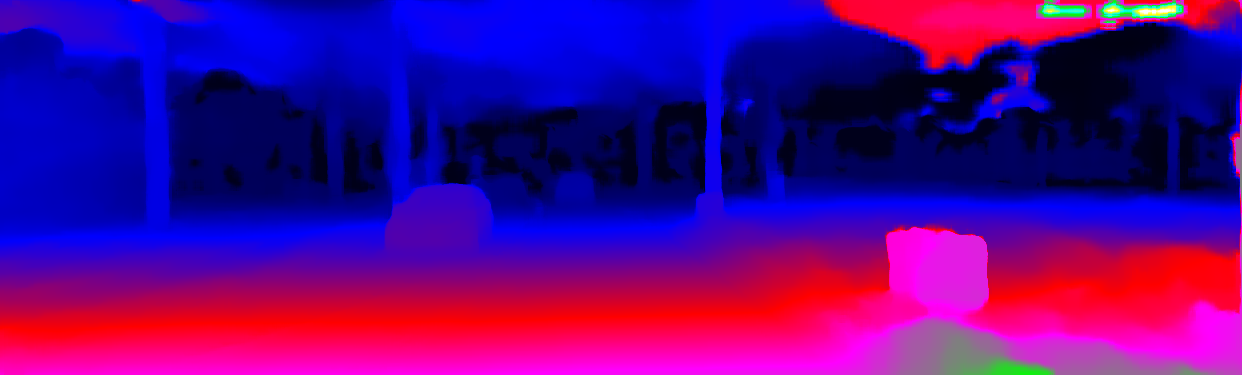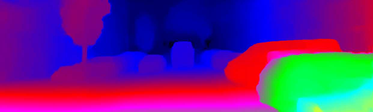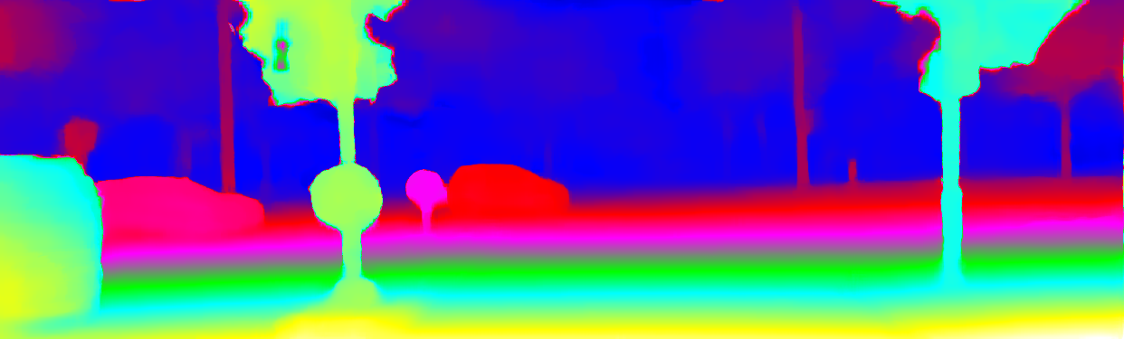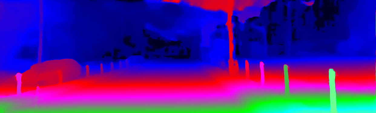 This page provides detailed results for the method(s) selected. For the first 20 test images, the percentage of erroneous pixels is depicted in the table. We use the error metric described in Object Scene Flow for Autonomous Vehicles (CVPR 2015), which considers a pixel to be correctly estimated if the disparity or flow end-point error is <3px or <5% (for scene flow this criterion needs to be fulfilled for both disparity maps and the flow map). Underneath, the left input image, the estimated results and the error maps are shown (for disp_0/disp_1/flow/scene_flow, respectively). The error map uses the log-color scale described in Object Scene Flow for Autonomous Vehicles (CVPR 2015), depicting correct estimates (<3px or <5% error) in blue and wrong estimates in red color tones. Dark regions in the error images denote the occluded pixels which fall outside the image boundaries. The false color maps of the results are scaled to the largest ground truth disparity values / flow magnitudes.