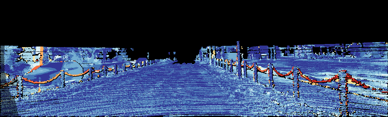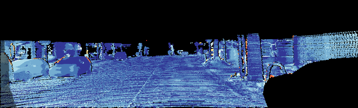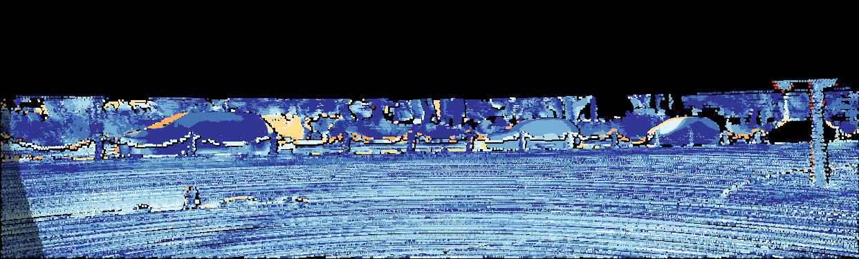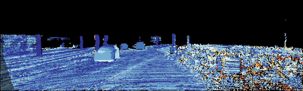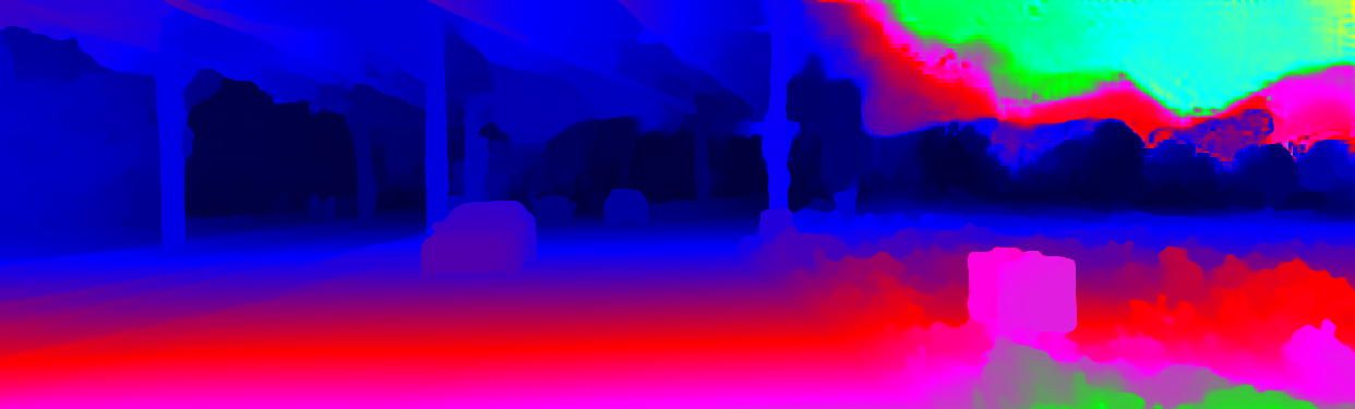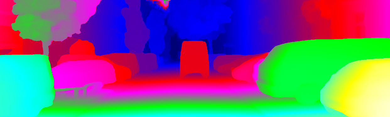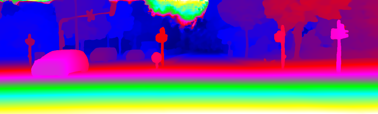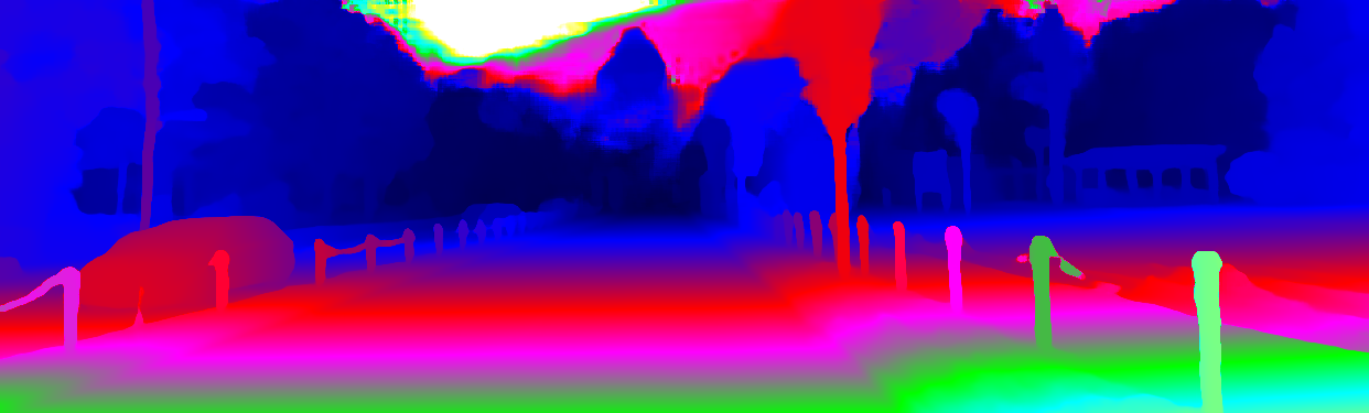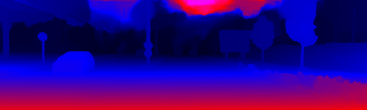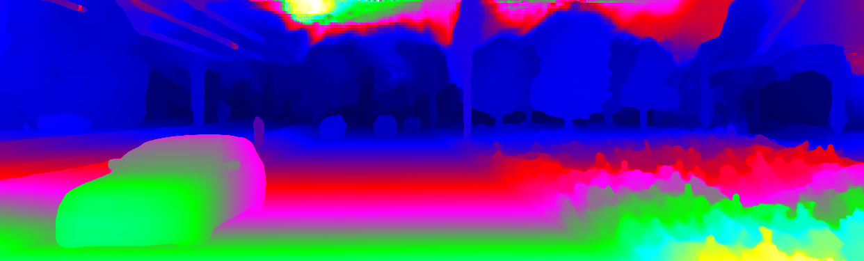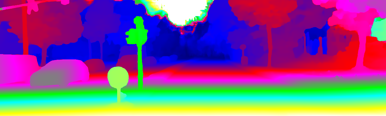 This page provides detailed results for the method(s) selected. For the first 20 test images, the percentage of erroneous pixels is depicted in the table. We use the error metric described in Object Scene Flow for Autonomous Vehicles (CVPR 2015), which considers a pixel to be correctly estimated if the disparity or flow end-point error is <3px or <5% (for scene flow this criterion needs to be fulfilled for both disparity maps and the flow map). Underneath, the left input image, the estimated results and the error maps are shown (for disp_0/disp_1/flow/scene_flow, respectively). The error map uses the log-color scale described in Object Scene Flow for Autonomous Vehicles (CVPR 2015), depicting correct estimates (<3px or <5% error) in blue and wrong estimates in red color tones. Dark regions in the error images denote the occluded pixels which fall outside the image boundaries. The false color maps of the results are scaled to the largest ground truth disparity values / flow magnitudes.