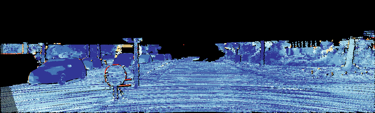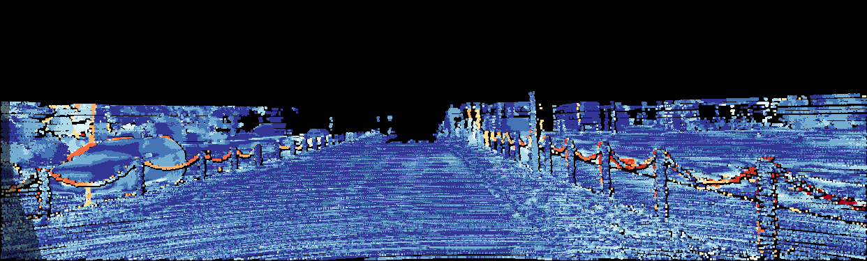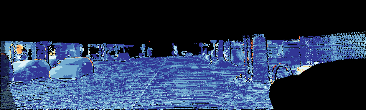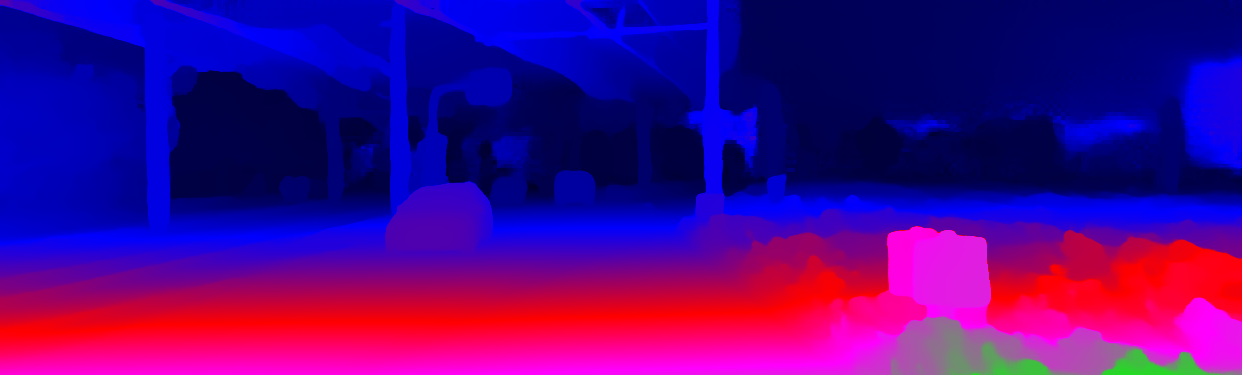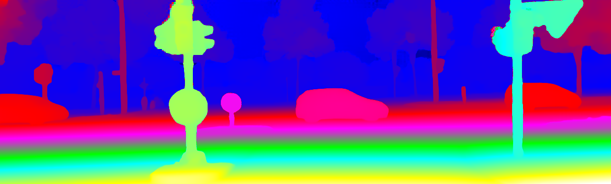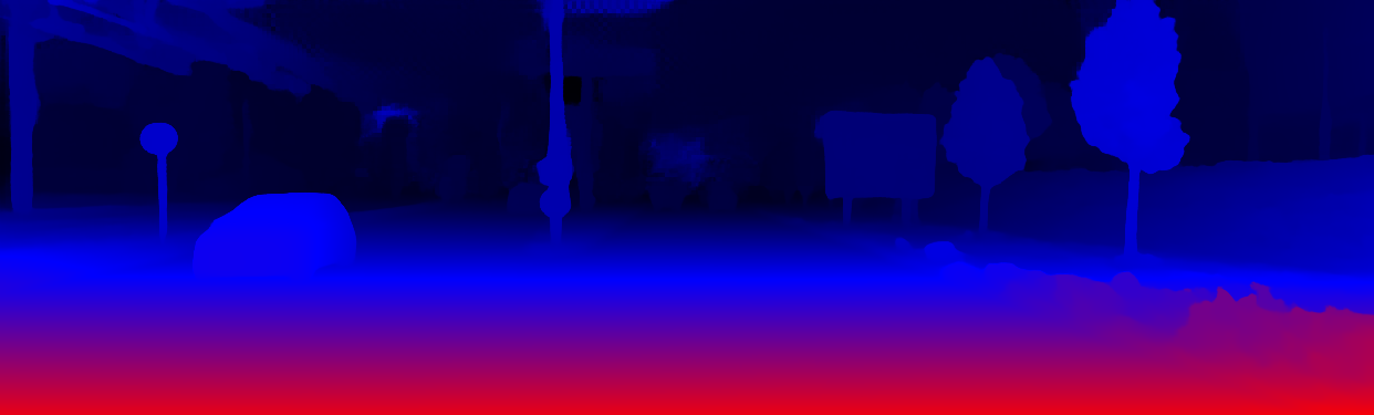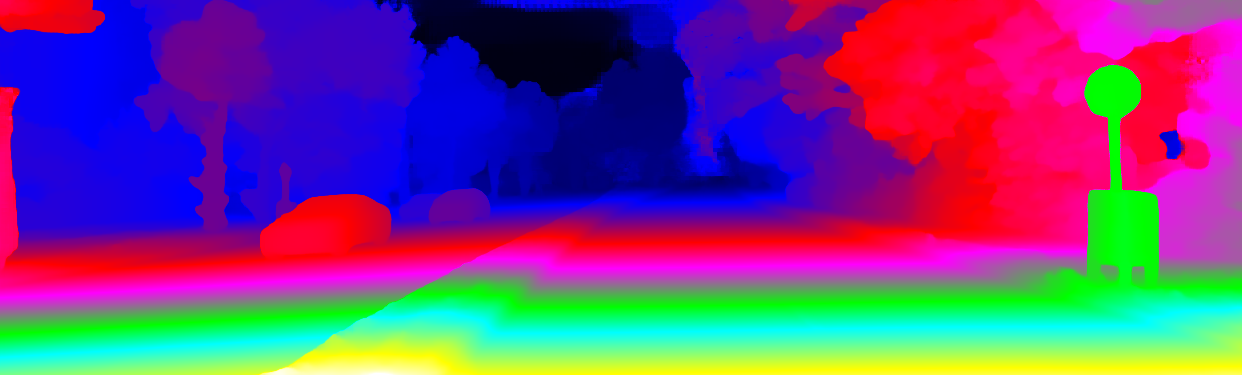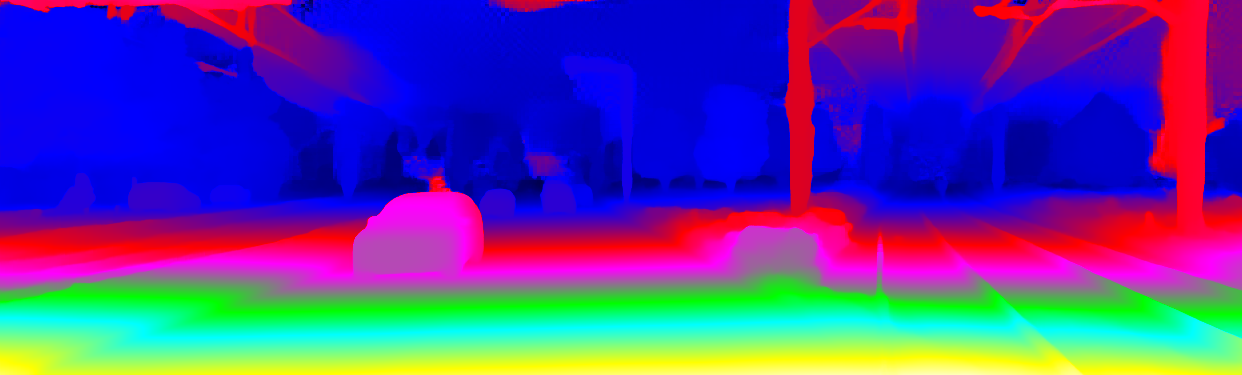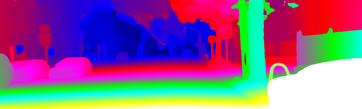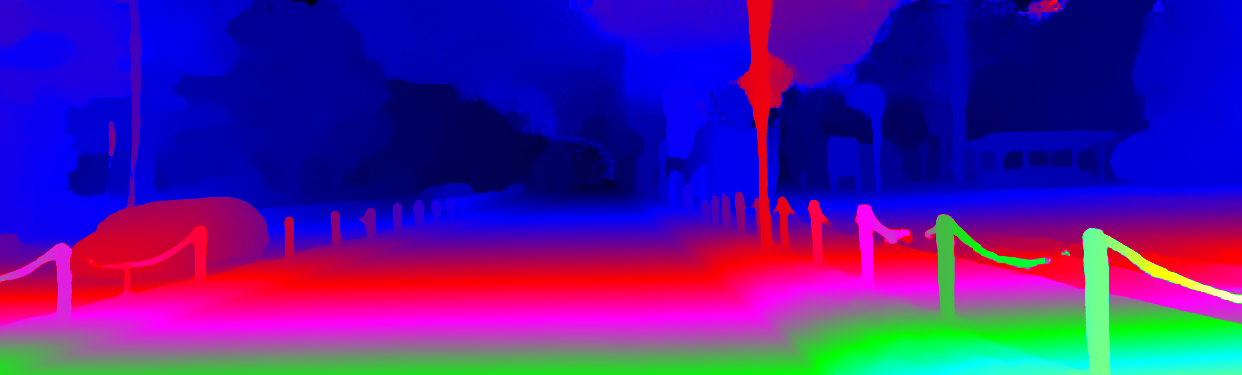 This page provides detailed results for the method(s) selected. For the first 20 test images, the percentage of erroneous pixels is depicted in the table. We use the error metric described in Object Scene Flow for Autonomous Vehicles (CVPR 2015), which considers a pixel to be correctly estimated if the disparity or flow end-point error is <3px or <5% (for scene flow this criterion needs to be fulfilled for both disparity maps and the flow map). Underneath, the left input image, the estimated results and the error maps are shown (for disp_0/disp_1/flow/scene_flow, respectively). The error map uses the log-color scale described in Object Scene Flow for Autonomous Vehicles (CVPR 2015), depicting correct estimates (<3px or <5% error) in blue and wrong estimates in red color tones. Dark regions in the error images denote the occluded pixels which fall outside the image boundaries. The false color maps of the results are scaled to the largest ground truth disparity values / flow magnitudes.