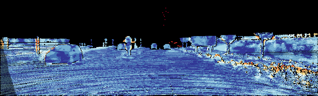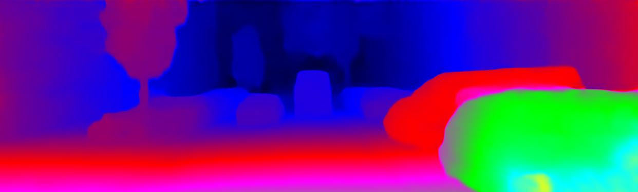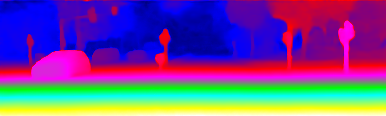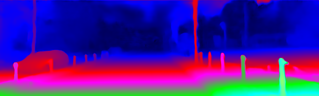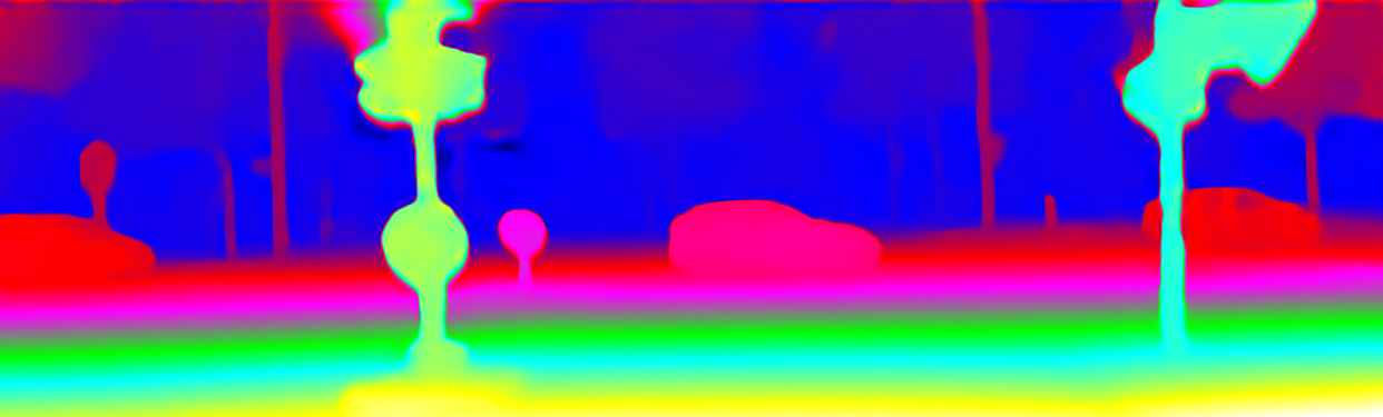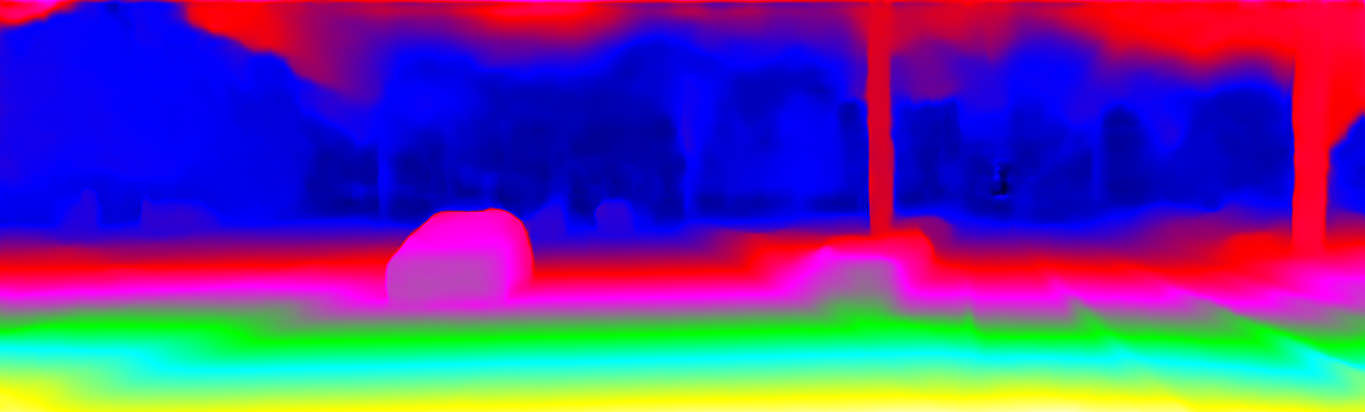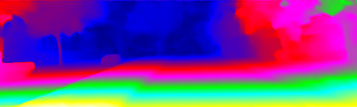 This page provides detailed results for the method(s) selected. For the first 20 test images, the percentage of erroneous pixels is depicted in the table. We use the error metric described in Object Scene Flow for Autonomous Vehicles (CVPR 2015), which considers a pixel to be correctly estimated if the disparity or flow end-point error is <3px or <5% (for scene flow this criterion needs to be fulfilled for both disparity maps and the flow map). Underneath, the left input image, the estimated results and the error maps are shown (for disp_0/disp_1/flow/scene_flow, respectively). The error map uses the log-color scale described in Object Scene Flow for Autonomous Vehicles (CVPR 2015), depicting correct estimates (<3px or <5% error) in blue and wrong estimates in red color tones. Dark regions in the error images denote the occluded pixels which fall outside the image boundaries. The false color maps of the results are scaled to the largest ground truth disparity values / flow magnitudes.