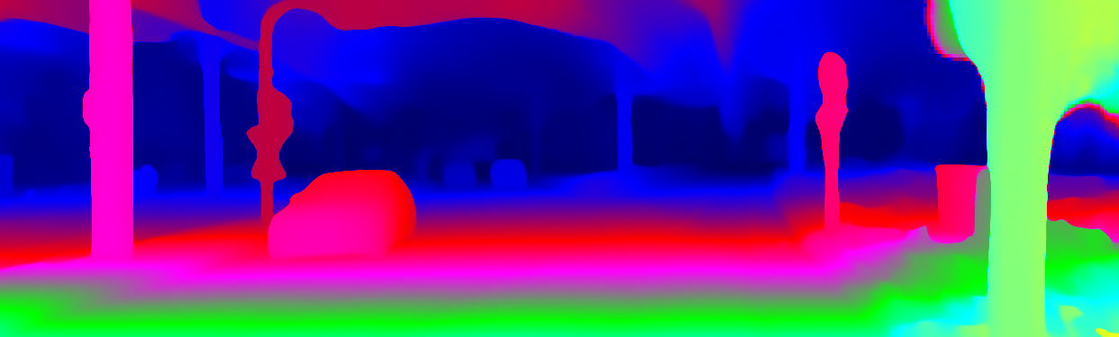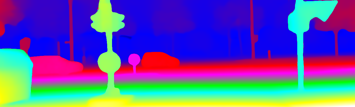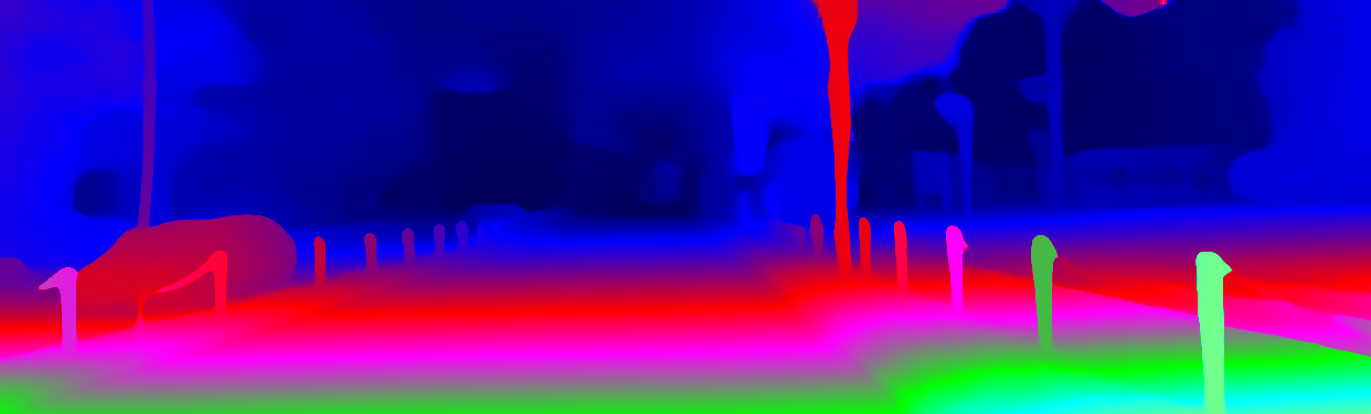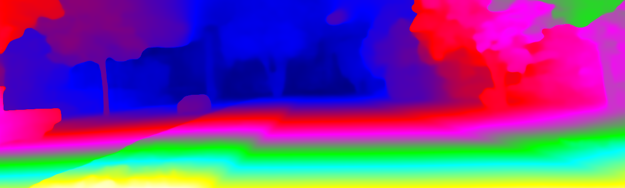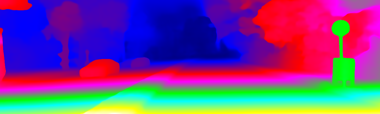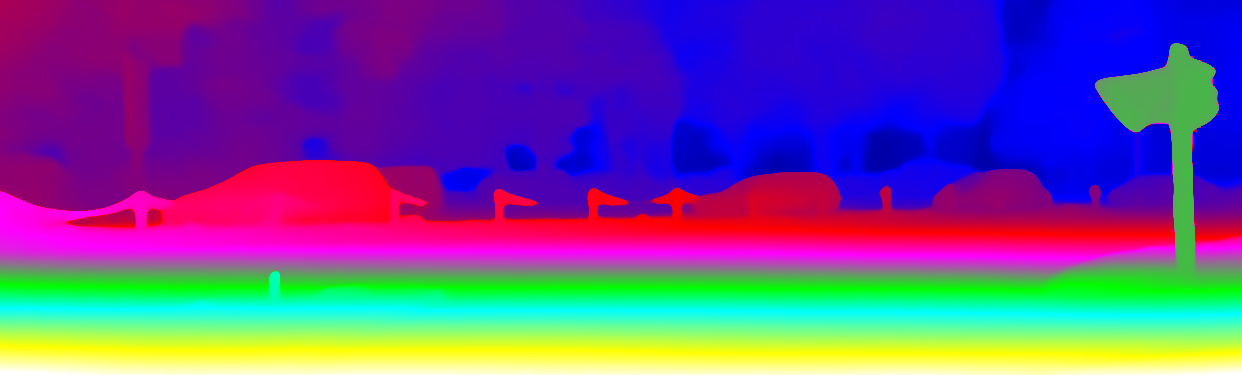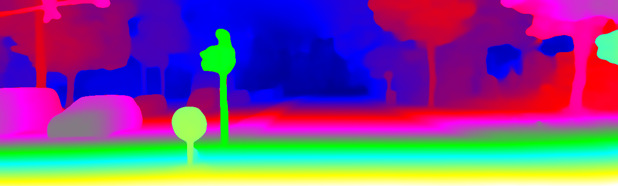 This page provides detailed results for the method(s) selected. For the first 20 test images, the percentage of erroneous pixels is depicted in the table. We use the error metric described in Object Scene Flow for Autonomous Vehicles (CVPR 2015), which considers a pixel to be correctly estimated if the disparity or flow end-point error is <3px or <5% (for scene flow this criterion needs to be fulfilled for both disparity maps and the flow map). Underneath, the left input image, the estimated results and the error maps are shown (for disp_0/disp_1/flow/scene_flow, respectively). The error map uses the log-color scale described in Object Scene Flow for Autonomous Vehicles (CVPR 2015), depicting correct estimates (<3px or <5% error) in blue and wrong estimates in red color tones. Dark regions in the error images denote the occluded pixels which fall outside the image boundaries. The false color maps of the results are scaled to the largest ground truth disparity values / flow magnitudes.