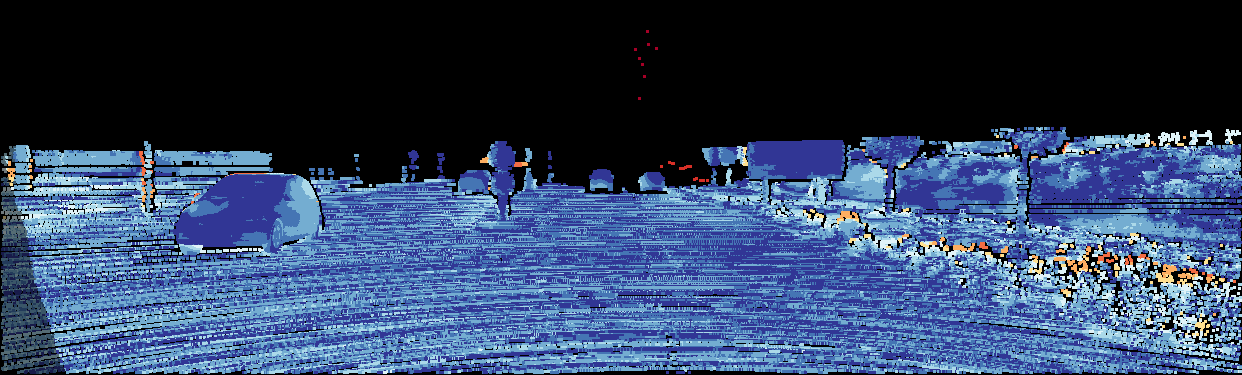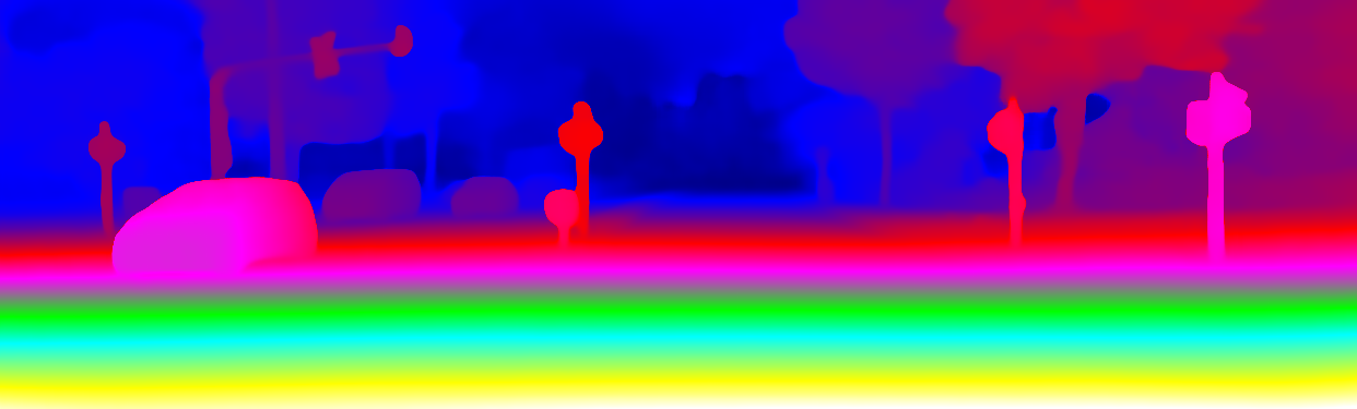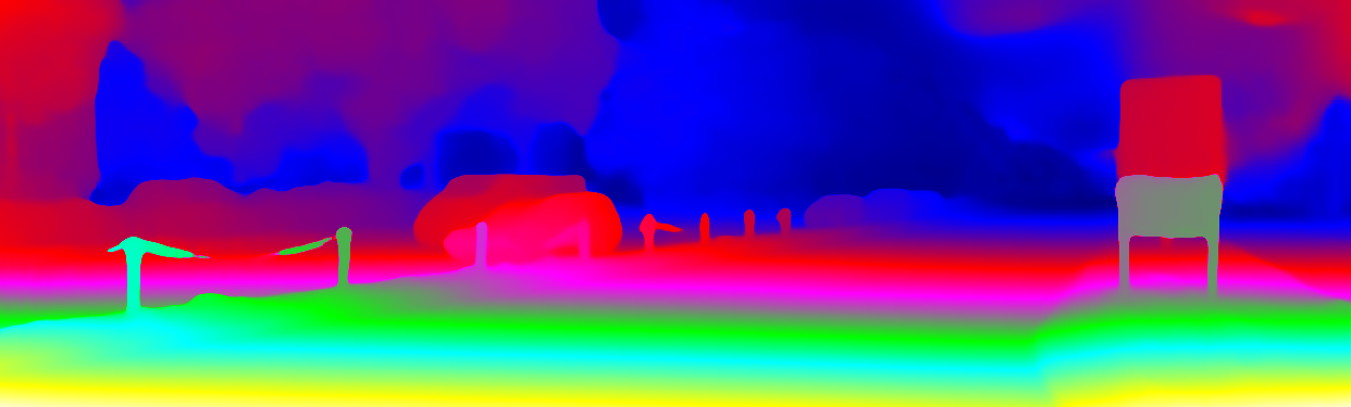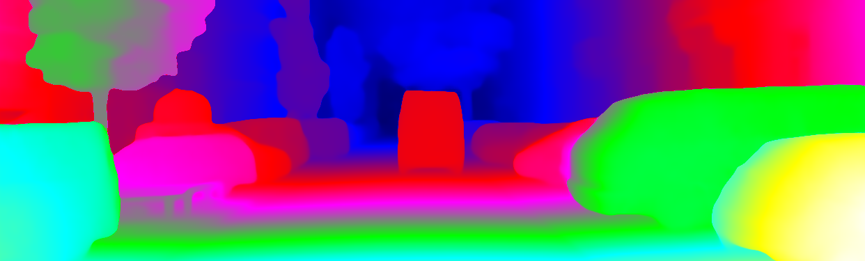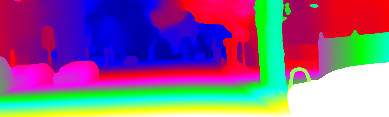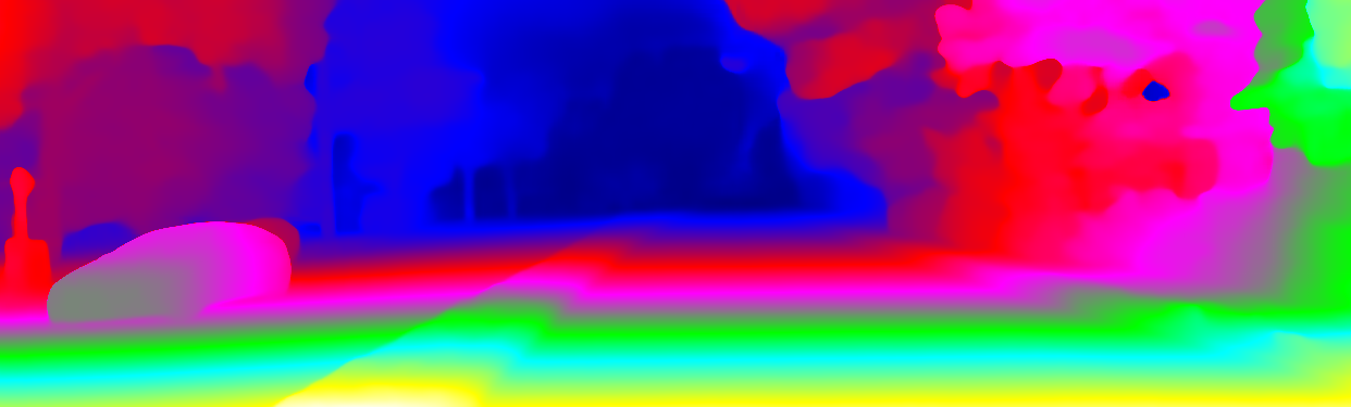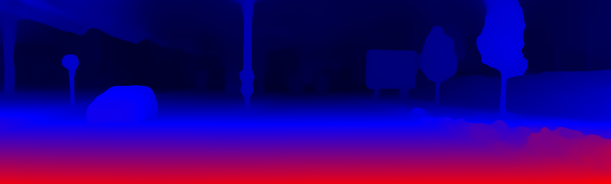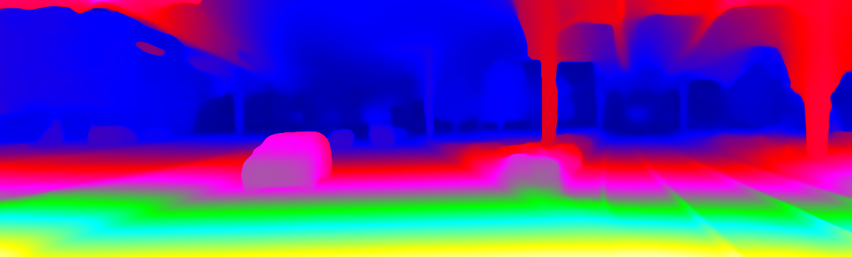 This page provides detailed results for the method(s) selected. For the first 20 test images, the percentage of erroneous pixels is depicted in the table. We use the error metric described in Object Scene Flow for Autonomous Vehicles (CVPR 2015), which considers a pixel to be correctly estimated if the disparity or flow end-point error is <3px or <5% (for scene flow this criterion needs to be fulfilled for both disparity maps and the flow map). Underneath, the left input image, the estimated results and the error maps are shown (for disp_0/disp_1/flow/scene_flow, respectively). The error map uses the log-color scale described in Object Scene Flow for Autonomous Vehicles (CVPR 2015), depicting correct estimates (<3px or <5% error) in blue and wrong estimates in red color tones. Dark regions in the error images denote the occluded pixels which fall outside the image boundaries. The false color maps of the results are scaled to the largest ground truth disparity values / flow magnitudes.