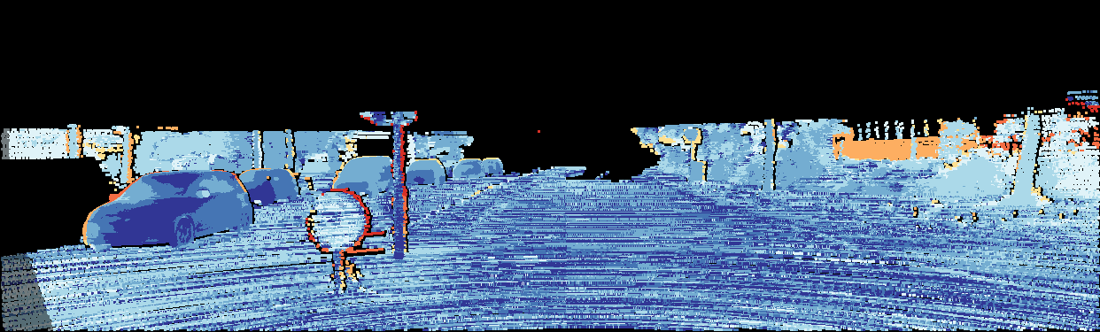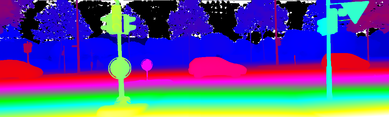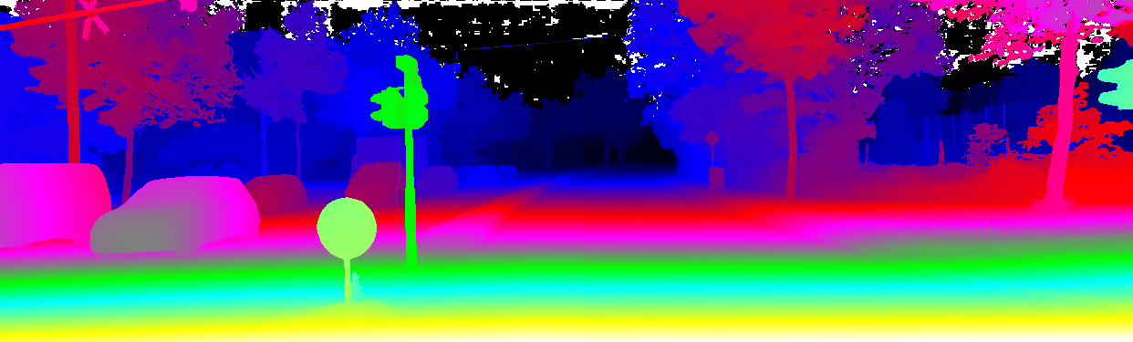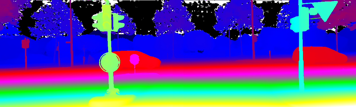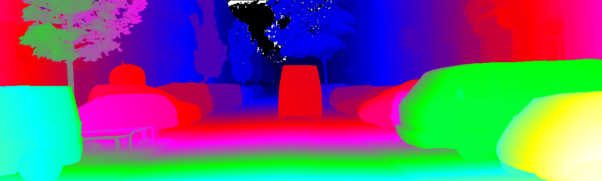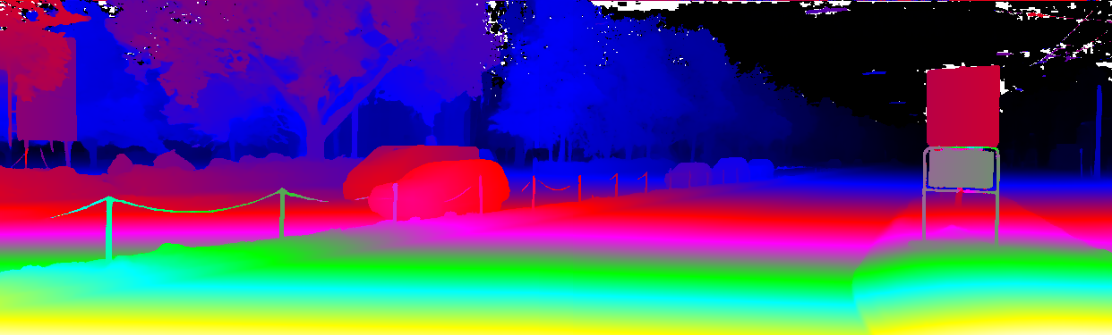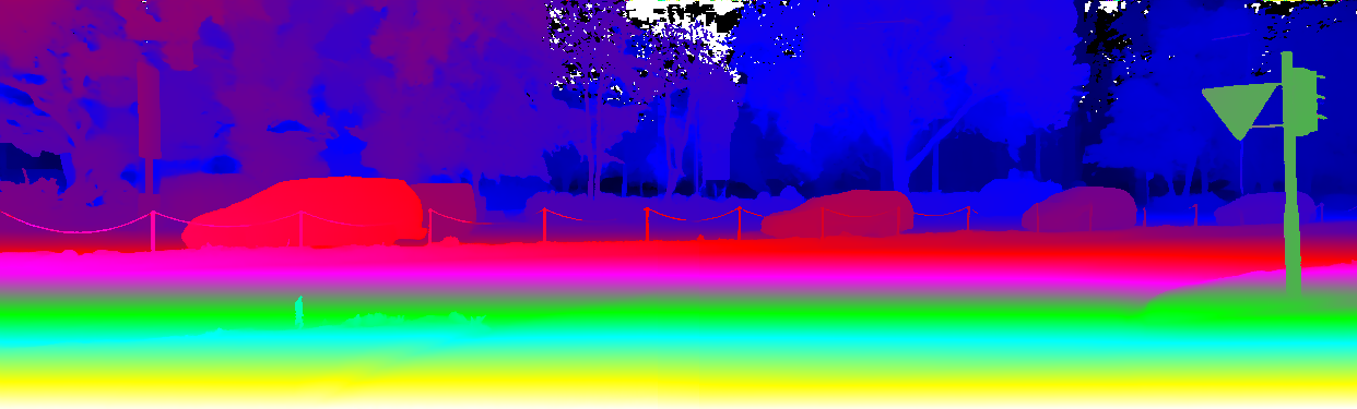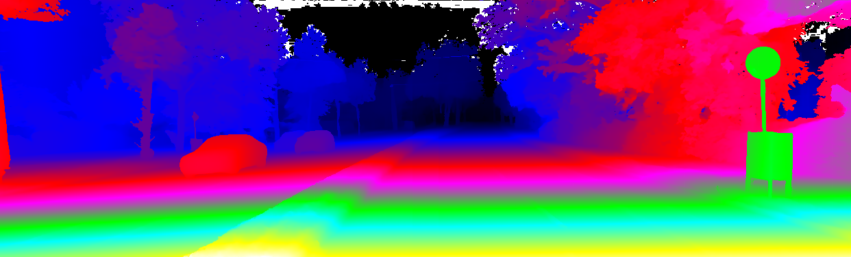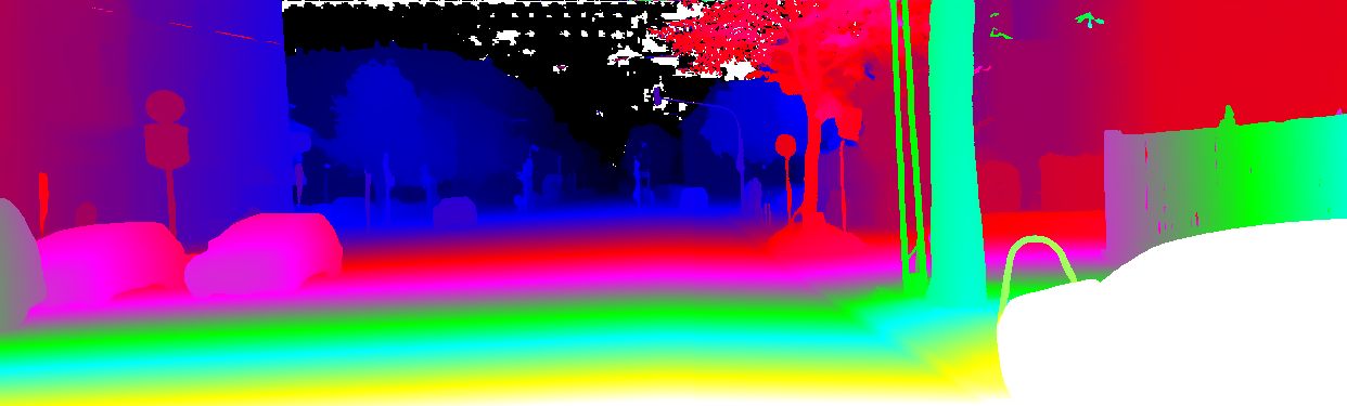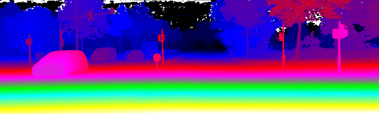 This page provides detailed results for the method(s) selected. For the first 20 test images, the percentage of erroneous pixels is depicted in the table. We use the error metric described in Object Scene Flow for Autonomous Vehicles (CVPR 2015), which considers a pixel to be correctly estimated if the disparity or flow end-point error is <3px or <5% (for scene flow this criterion needs to be fulfilled for both disparity maps and the flow map). Underneath, the left input image, the estimated results and the error maps are shown (for disp_0/disp_1/flow/scene_flow, respectively). The error map uses the log-color scale described in Object Scene Flow for Autonomous Vehicles (CVPR 2015), depicting correct estimates (<3px or <5% error) in blue and wrong estimates in red color tones. Dark regions in the error images denote the occluded pixels which fall outside the image boundaries. The false color maps of the results are scaled to the largest ground truth disparity values / flow magnitudes.