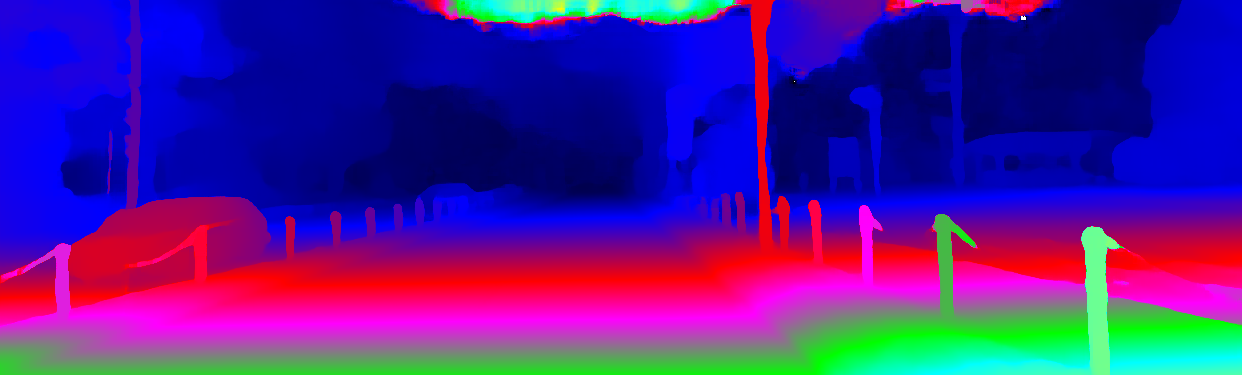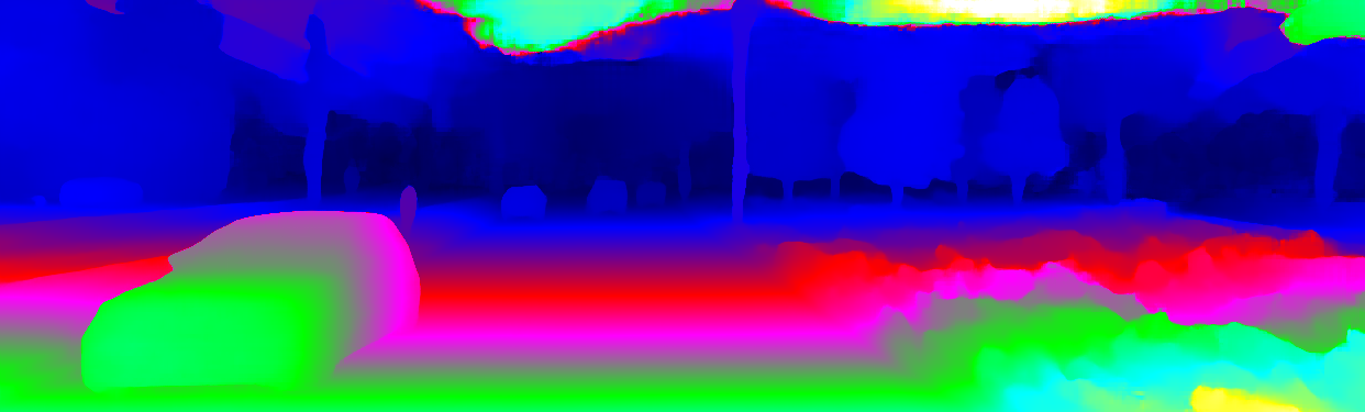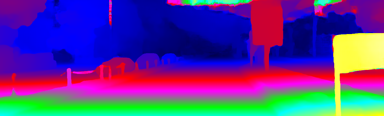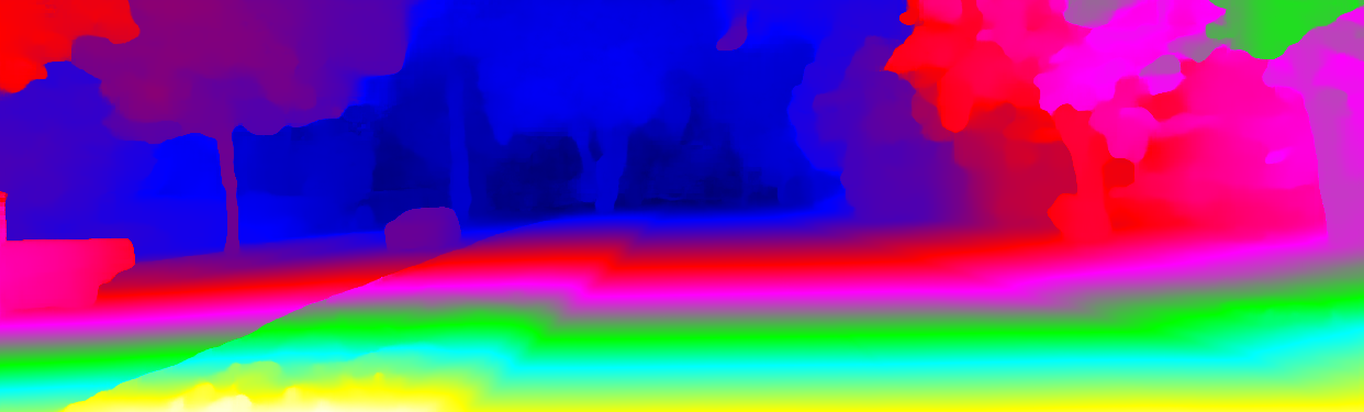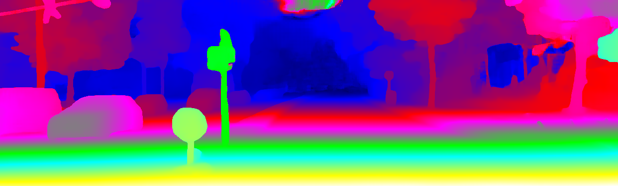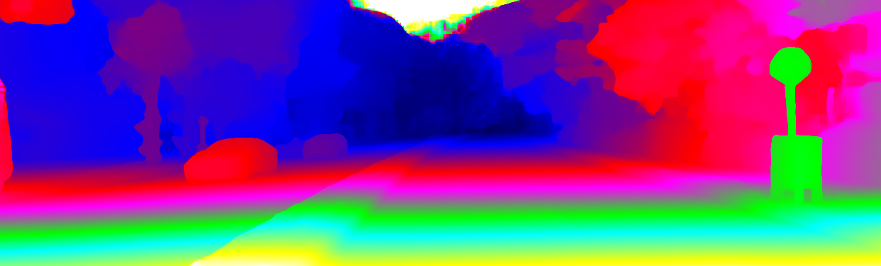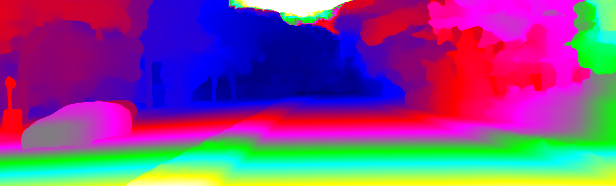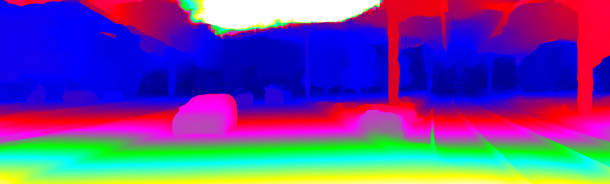 This page provides detailed results for the method(s) selected. For the first 20 test images, the percentage of erroneous pixels is depicted in the table. We use the error metric described in Object Scene Flow for Autonomous Vehicles (CVPR 2015), which considers a pixel to be correctly estimated if the disparity or flow end-point error is <3px or <5% (for scene flow this criterion needs to be fulfilled for both disparity maps and the flow map). Underneath, the left input image, the estimated results and the error maps are shown (for disp_0/disp_1/flow/scene_flow, respectively). The error map uses the log-color scale described in Object Scene Flow for Autonomous Vehicles (CVPR 2015), depicting correct estimates (<3px or <5% error) in blue and wrong estimates in red color tones. Dark regions in the error images denote the occluded pixels which fall outside the image boundaries. The false color maps of the results are scaled to the largest ground truth disparity values / flow magnitudes.