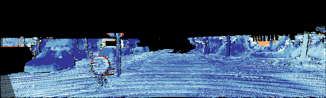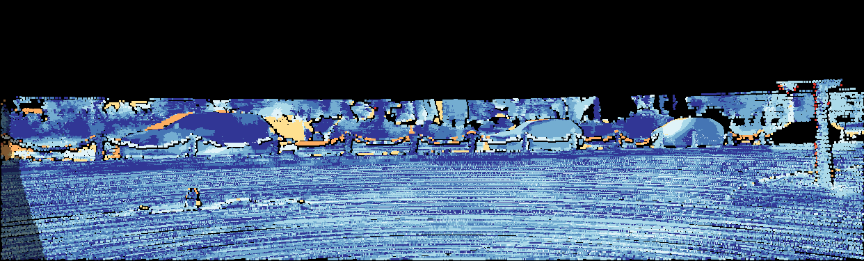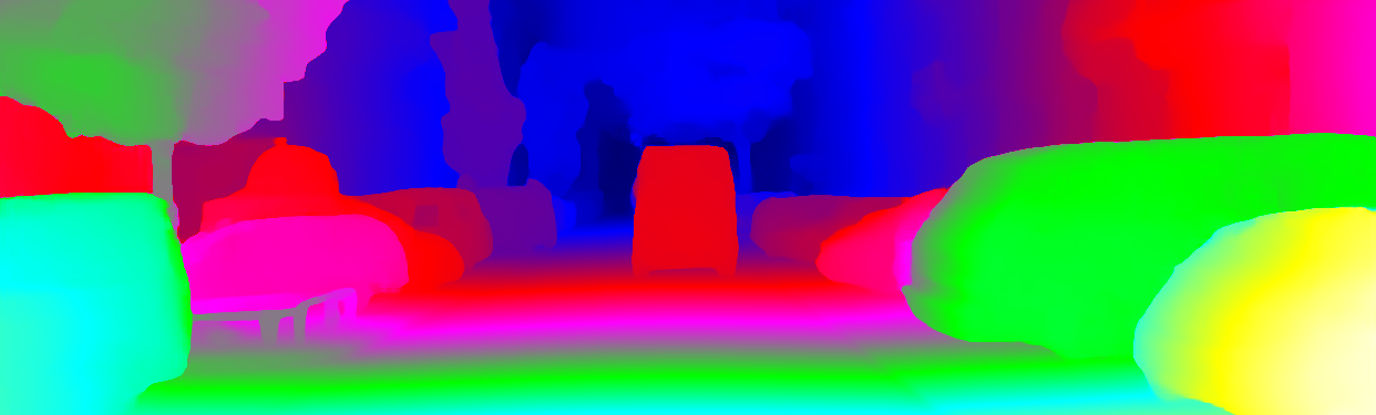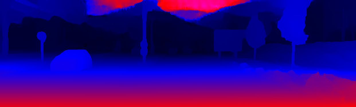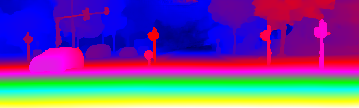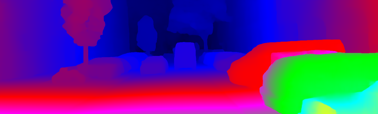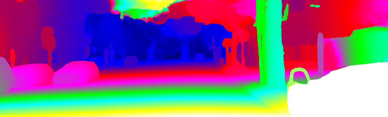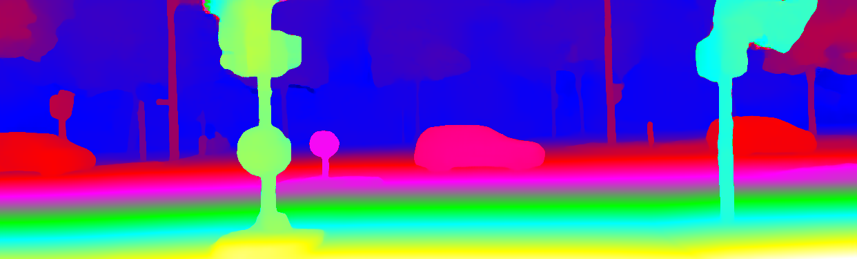 This page provides detailed results for the method(s) selected. For the first 20 test images, the percentage of erroneous pixels is depicted in the table. We use the error metric described in Object Scene Flow for Autonomous Vehicles (CVPR 2015), which considers a pixel to be correctly estimated if the disparity or flow end-point error is <3px or <5% (for scene flow this criterion needs to be fulfilled for both disparity maps and the flow map). Underneath, the left input image, the estimated results and the error maps are shown (for disp_0/disp_1/flow/scene_flow, respectively). The error map uses the log-color scale described in Object Scene Flow for Autonomous Vehicles (CVPR 2015), depicting correct estimates (<3px or <5% error) in blue and wrong estimates in red color tones. Dark regions in the error images denote the occluded pixels which fall outside the image boundaries. The false color maps of the results are scaled to the largest ground truth disparity values / flow magnitudes.