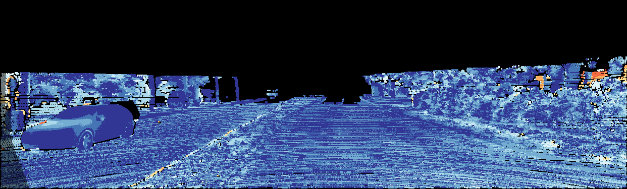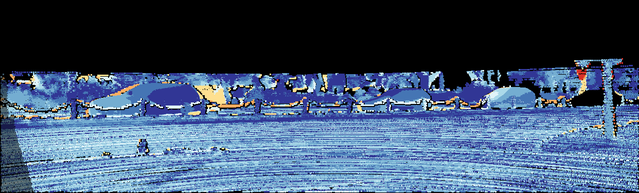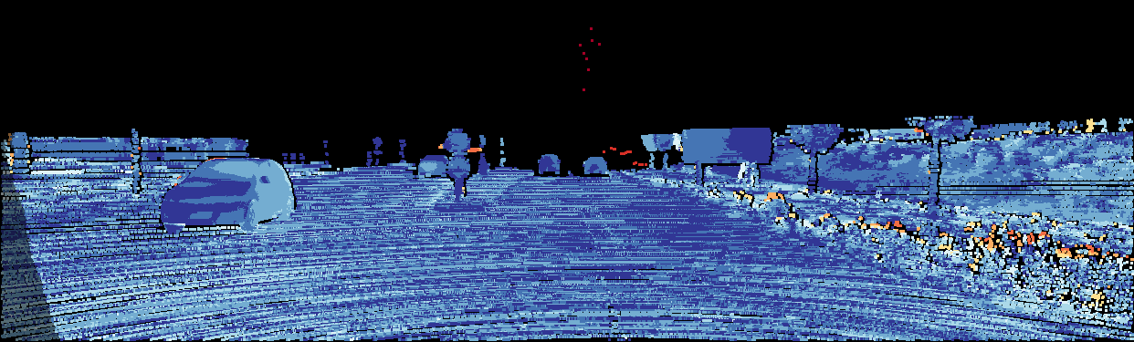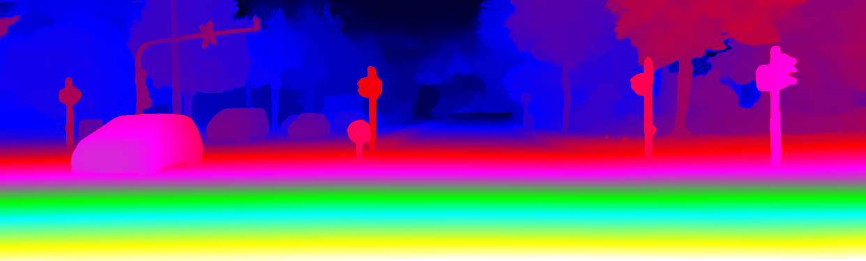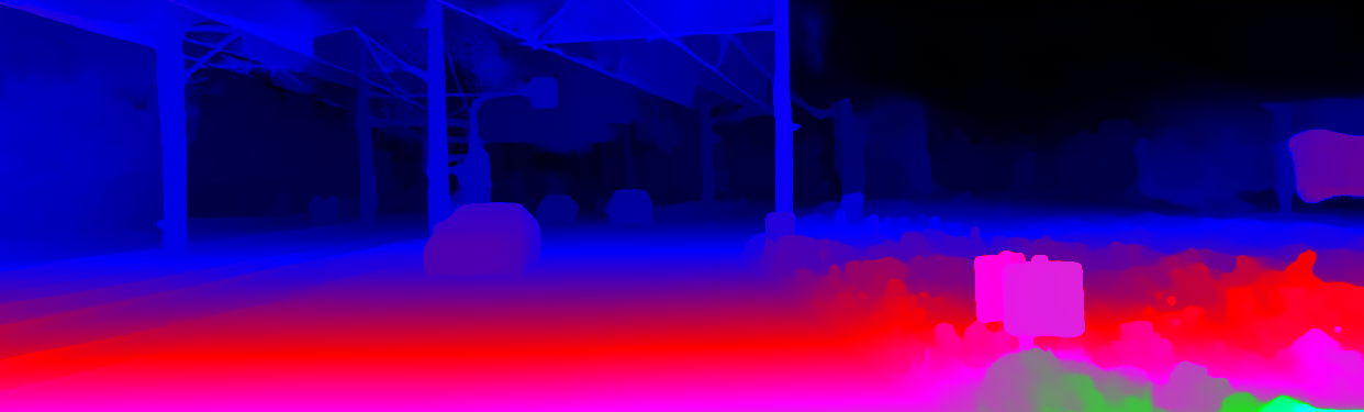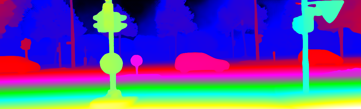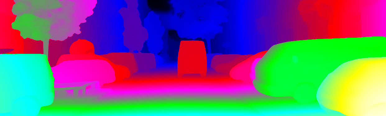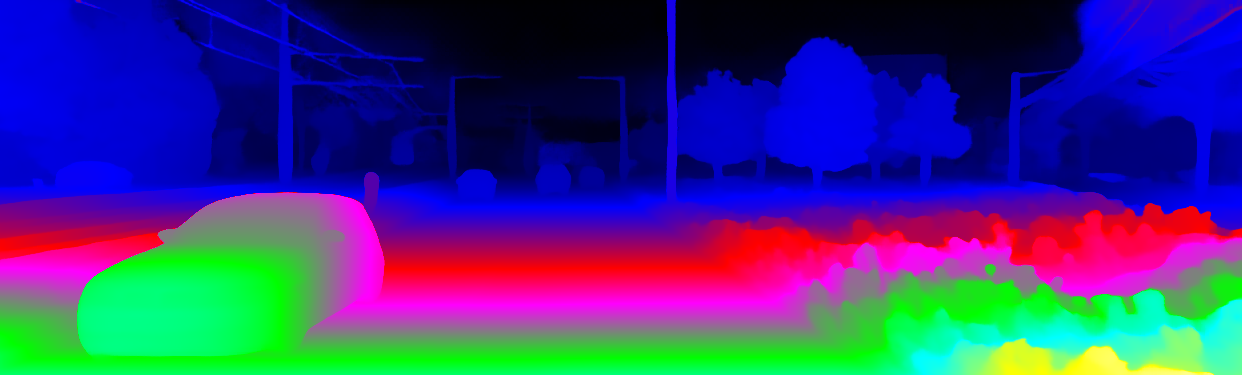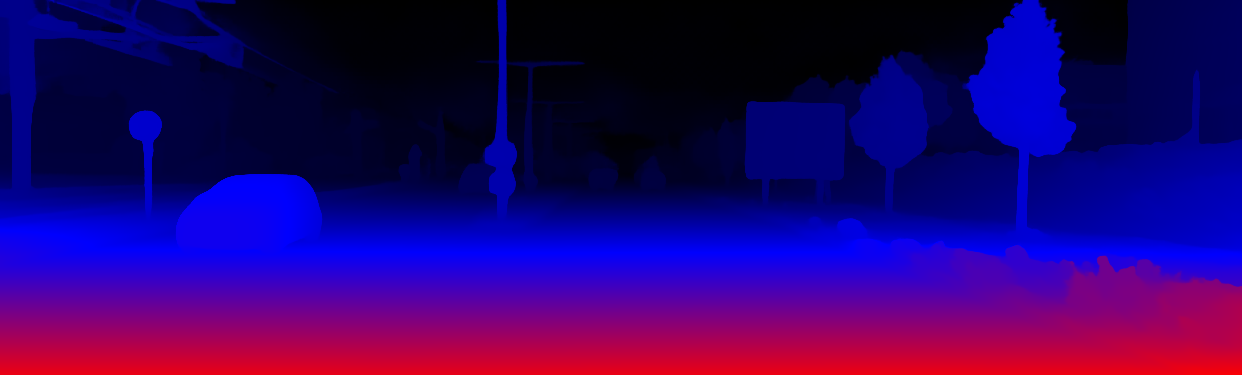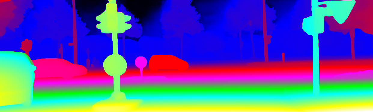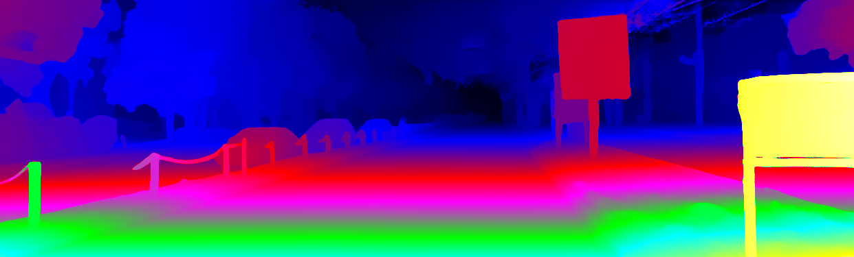 This page provides detailed results for the method(s) selected. For the first 20 test images, the percentage of erroneous pixels is depicted in the table. We use the error metric described in Object Scene Flow for Autonomous Vehicles (CVPR 2015), which considers a pixel to be correctly estimated if the disparity or flow end-point error is <3px or <5% (for scene flow this criterion needs to be fulfilled for both disparity maps and the flow map). Underneath, the left input image, the estimated results and the error maps are shown (for disp_0/disp_1/flow/scene_flow, respectively). The error map uses the log-color scale described in Object Scene Flow for Autonomous Vehicles (CVPR 2015), depicting correct estimates (<3px or <5% error) in blue and wrong estimates in red color tones. Dark regions in the error images denote the occluded pixels which fall outside the image boundaries. The false color maps of the results are scaled to the largest ground truth disparity values / flow magnitudes.