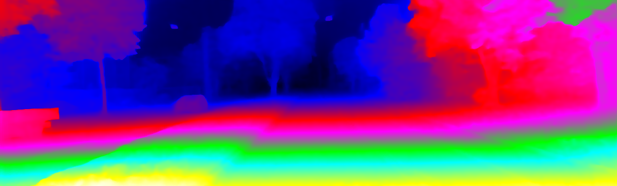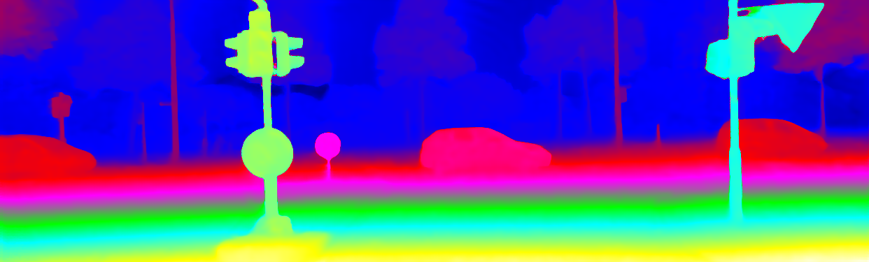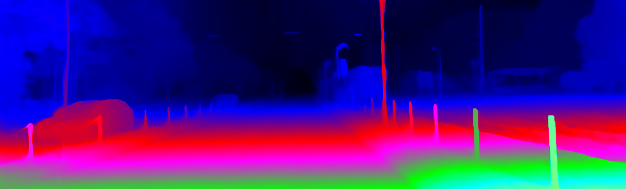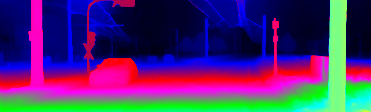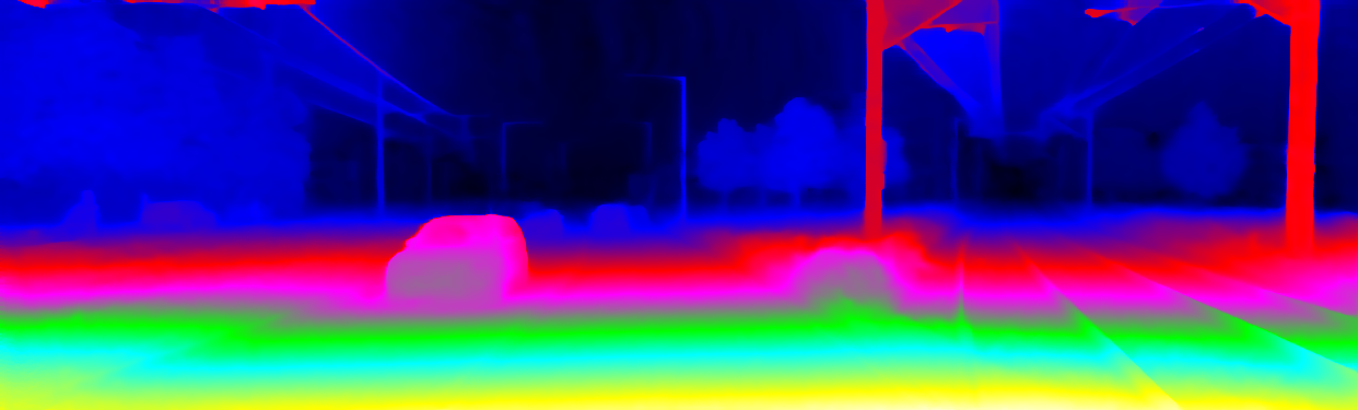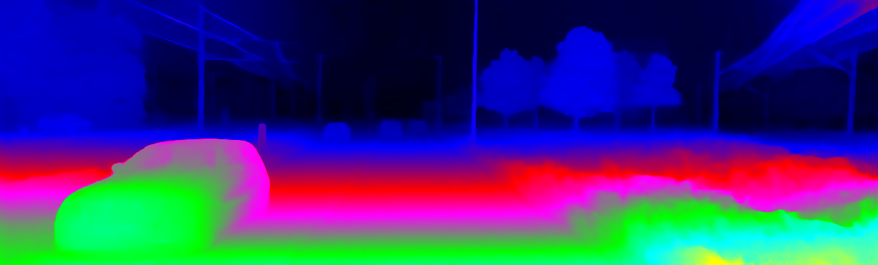 This page provides detailed results for the method(s) selected. For the first 20 test images, the percentage of erroneous pixels is depicted in the table. We use the error metric described in Object Scene Flow for Autonomous Vehicles (CVPR 2015), which considers a pixel to be correctly estimated if the disparity or flow end-point error is <3px or <5% (for scene flow this criterion needs to be fulfilled for both disparity maps and the flow map). Underneath, the left input image, the estimated results and the error maps are shown (for disp_0/disp_1/flow/scene_flow, respectively). The error map uses the log-color scale described in Object Scene Flow for Autonomous Vehicles (CVPR 2015), depicting correct estimates (<3px or <5% error) in blue and wrong estimates in red color tones. Dark regions in the error images denote the occluded pixels which fall outside the image boundaries. The false color maps of the results are scaled to the largest ground truth disparity values / flow magnitudes.