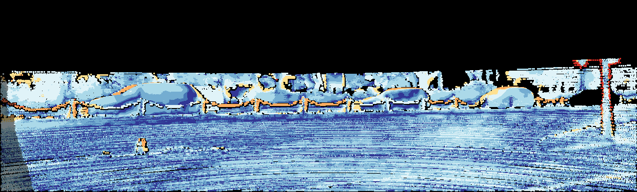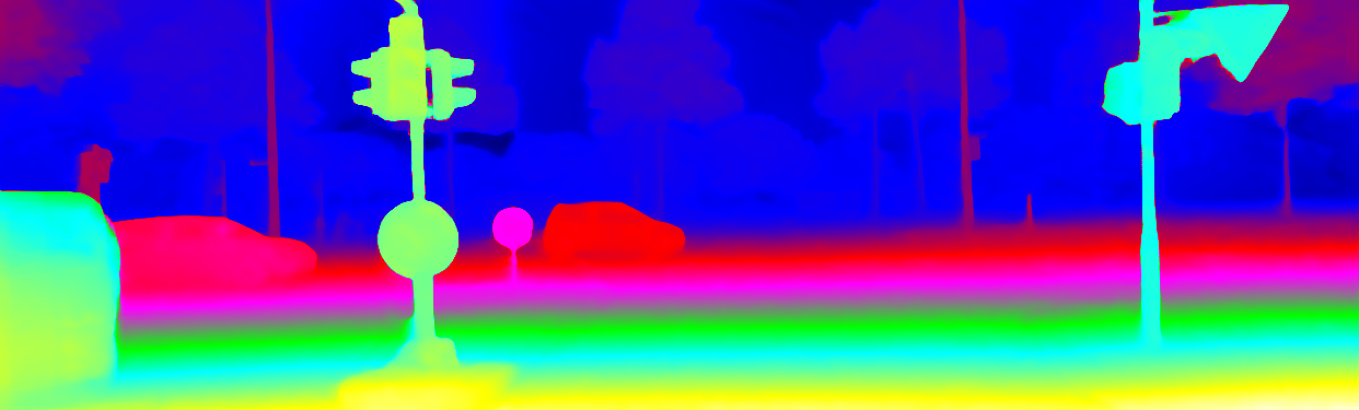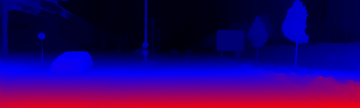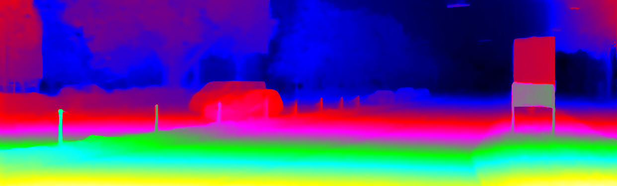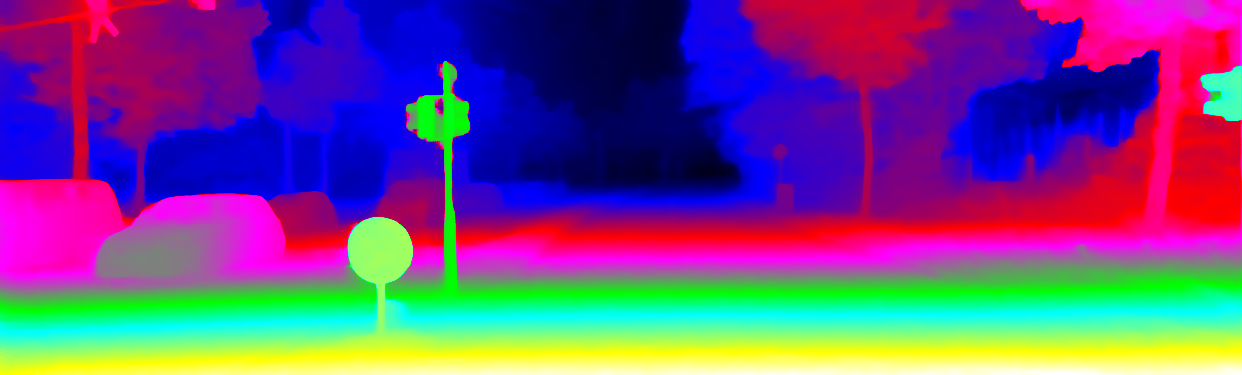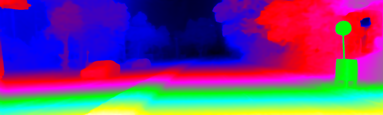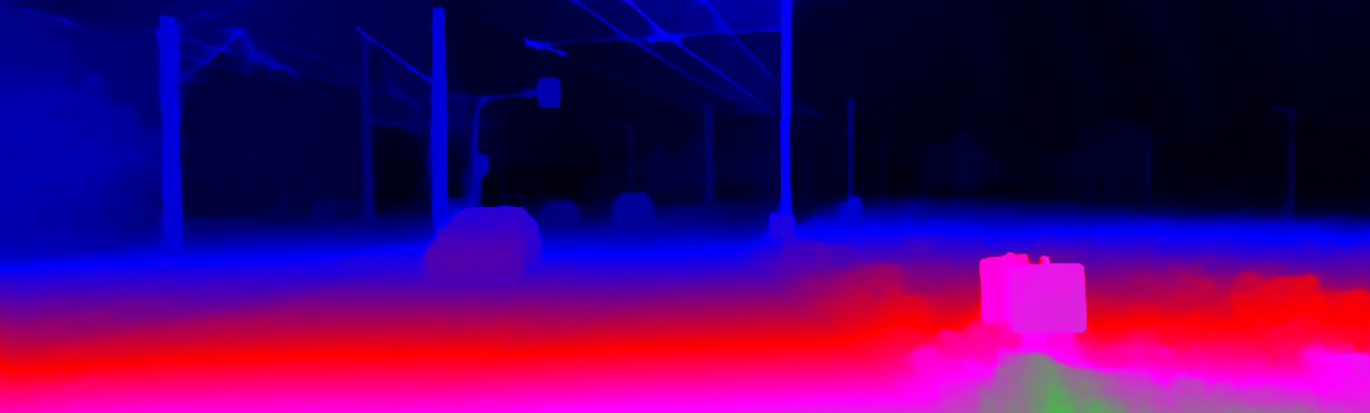 This page provides detailed results for the method(s) selected. For the first 20 test images, the percentage of erroneous pixels is depicted in the table. We use the error metric described in Object Scene Flow for Autonomous Vehicles (CVPR 2015), which considers a pixel to be correctly estimated if the disparity or flow end-point error is <3px or <5% (for scene flow this criterion needs to be fulfilled for both disparity maps and the flow map). Underneath, the left input image, the estimated results and the error maps are shown (for disp_0/disp_1/flow/scene_flow, respectively). The error map uses the log-color scale described in Object Scene Flow for Autonomous Vehicles (CVPR 2015), depicting correct estimates (<3px or <5% error) in blue and wrong estimates in red color tones. Dark regions in the error images denote the occluded pixels which fall outside the image boundaries. The false color maps of the results are scaled to the largest ground truth disparity values / flow magnitudes.