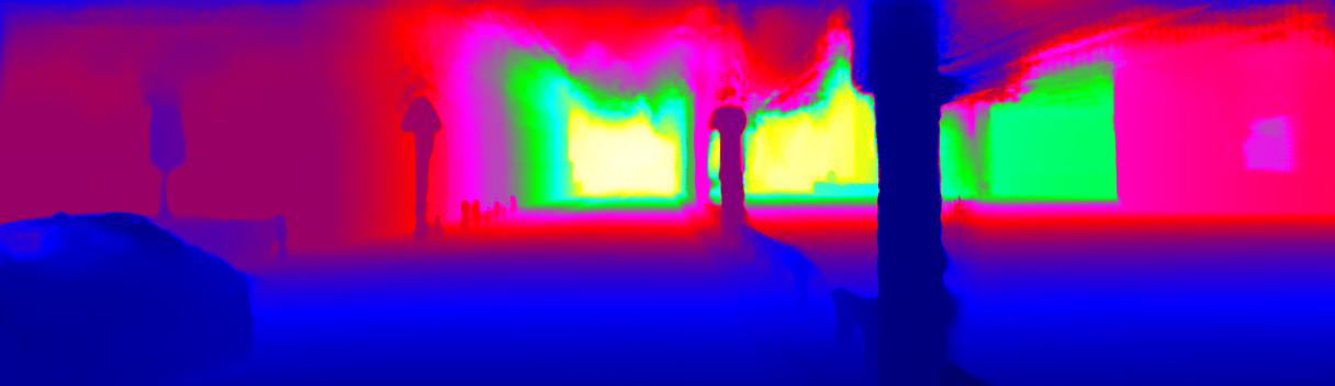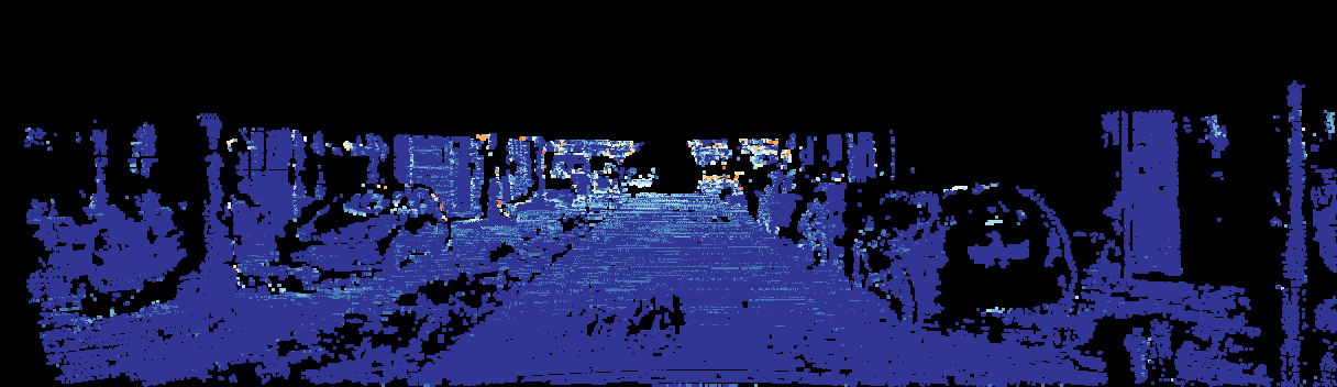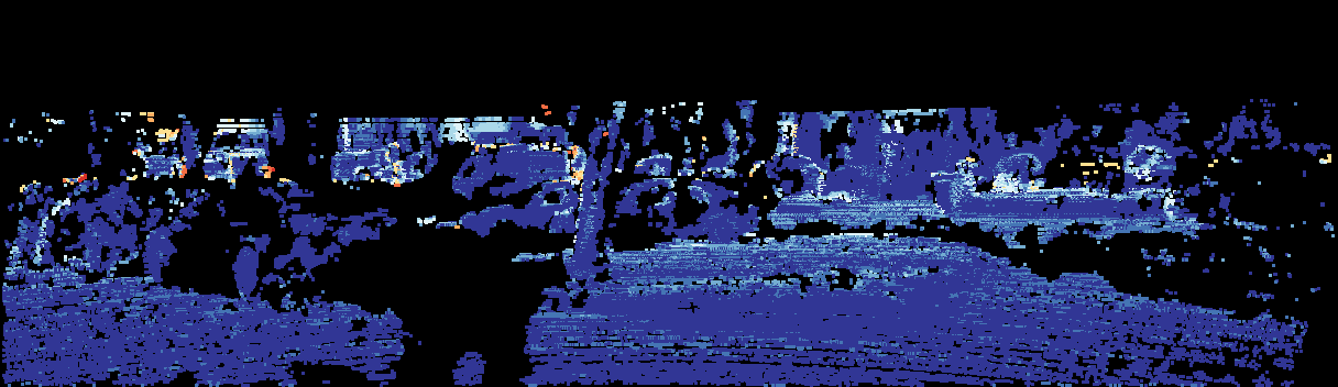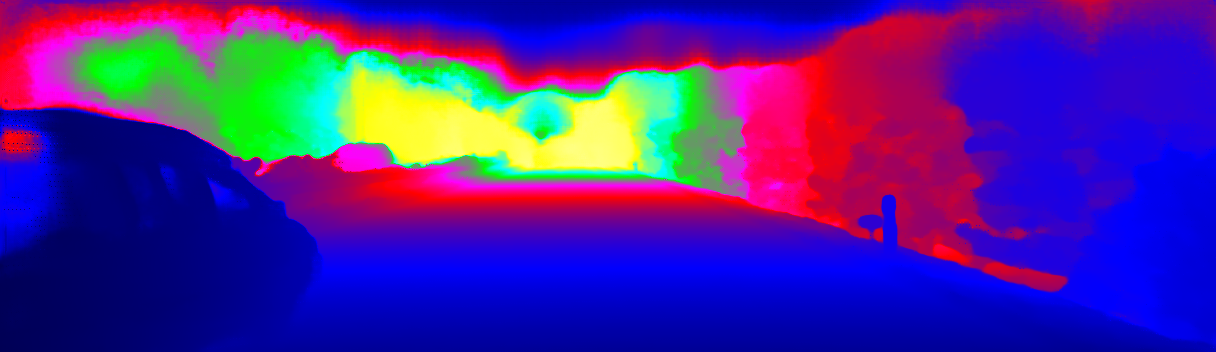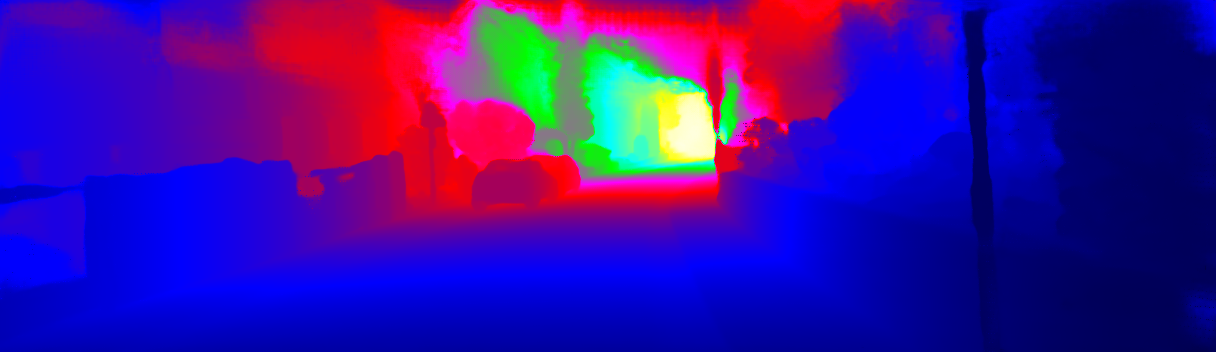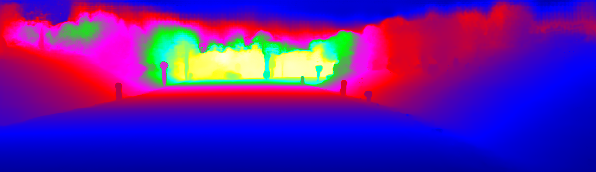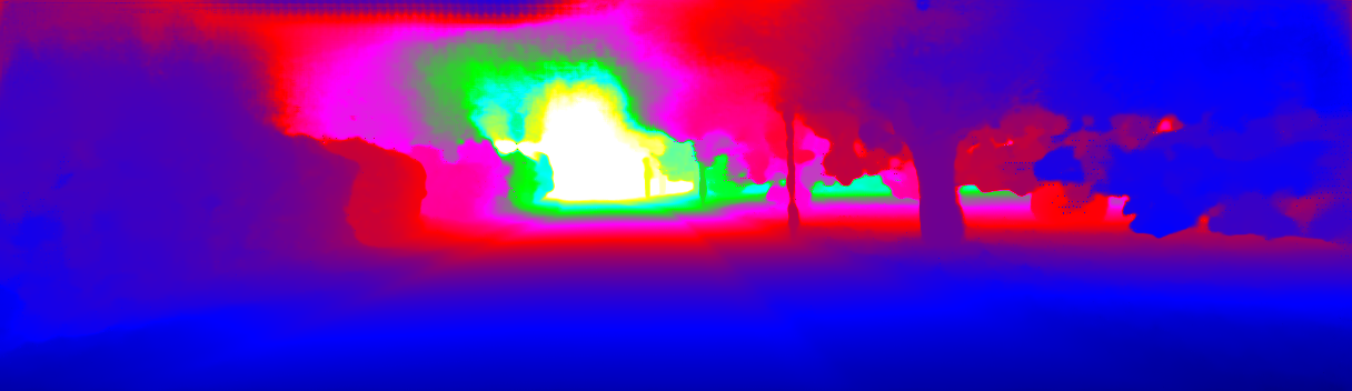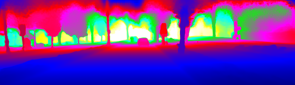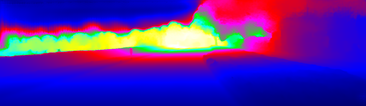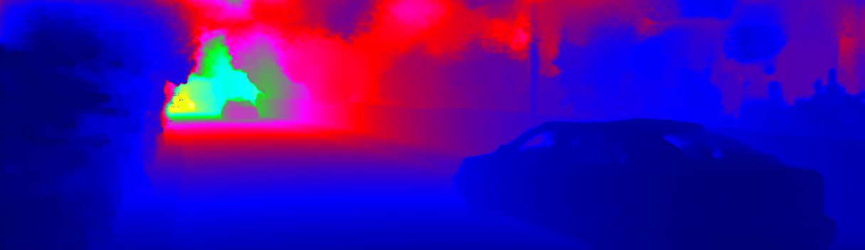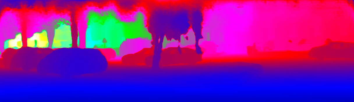 This page provides detailed results for the method(s) selected. For the first 20 test images, the percentage of erroneous pixels is depicted in the table. We use the error metric described in Sparsity Invariant CNNs (THREEDV 2017), which considers a pixel to be correctly estimated if the disparity or flow end-point error is <3px or <5% (for scene flow this criterion needs to be fulfilled for both disparity maps and the flow map). Underneath, the left input image, the estimated results and the error maps are shown (for disp_0/disp_1/flow/scene_flow, respectively). The error map uses the log-color scale described in Sparsity Invariant CNNs (THREEDV 2017), depicting correct estimates (<3px or <5% error) in blue and wrong estimates in red color tones. Dark regions in the error images denote the occluded pixels which fall outside the image boundaries. The false color maps of the results are scaled to the largest ground truth disparity values / flow magnitudes.